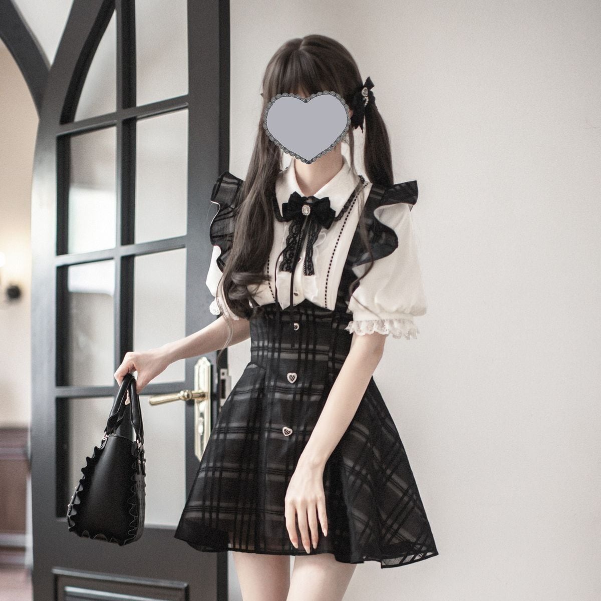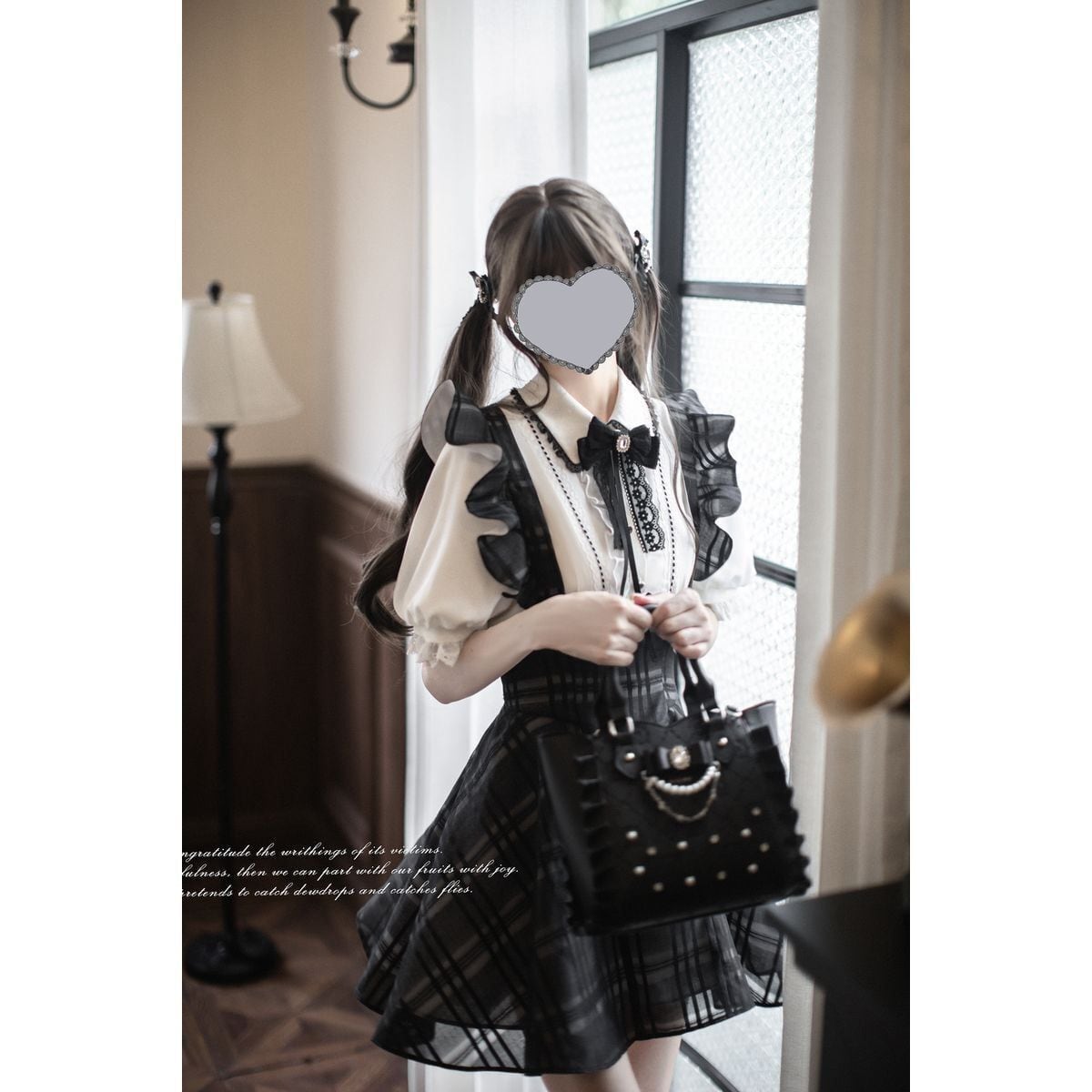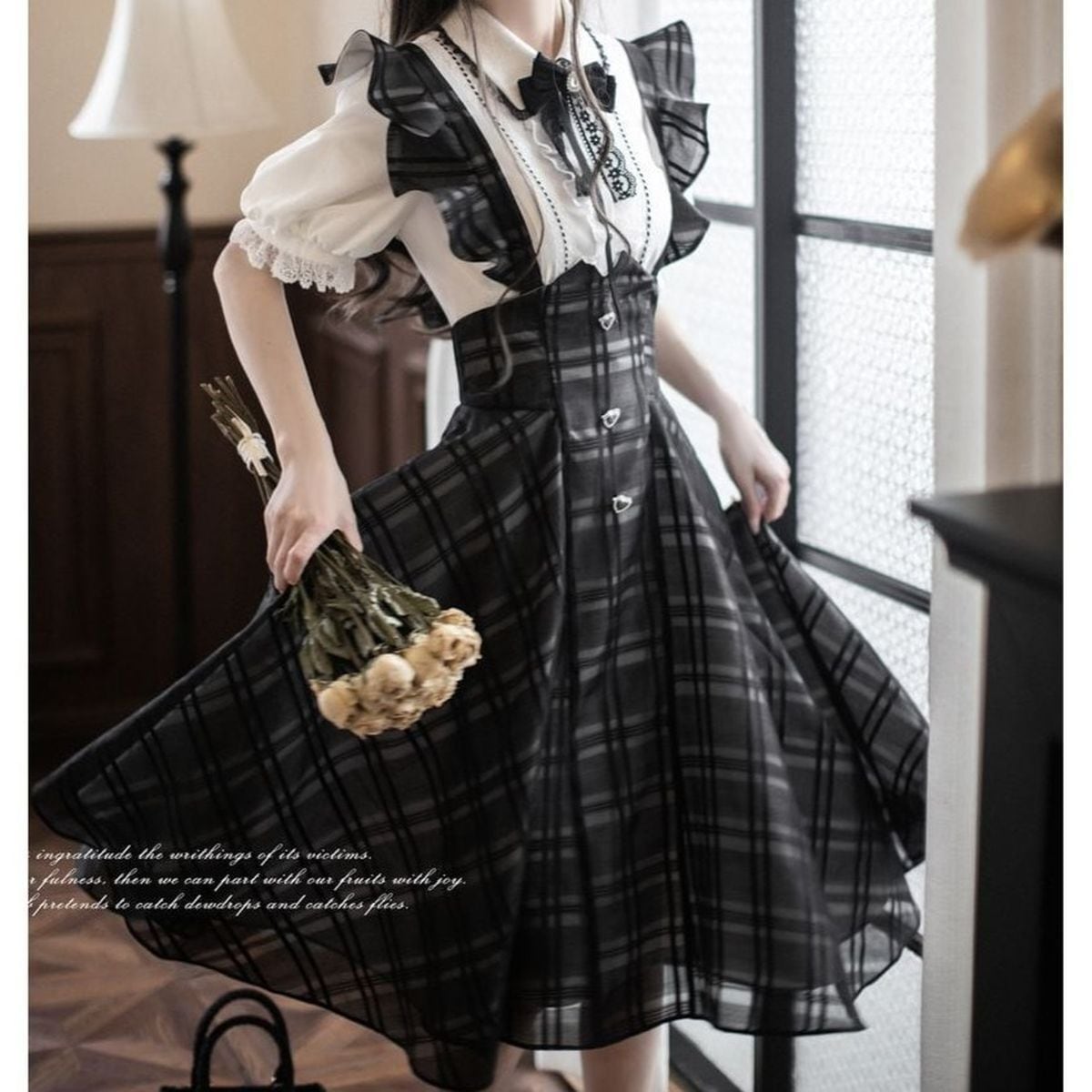 エレガントフリルジャンパースカートセットアップ:ブラウス(半袖)
