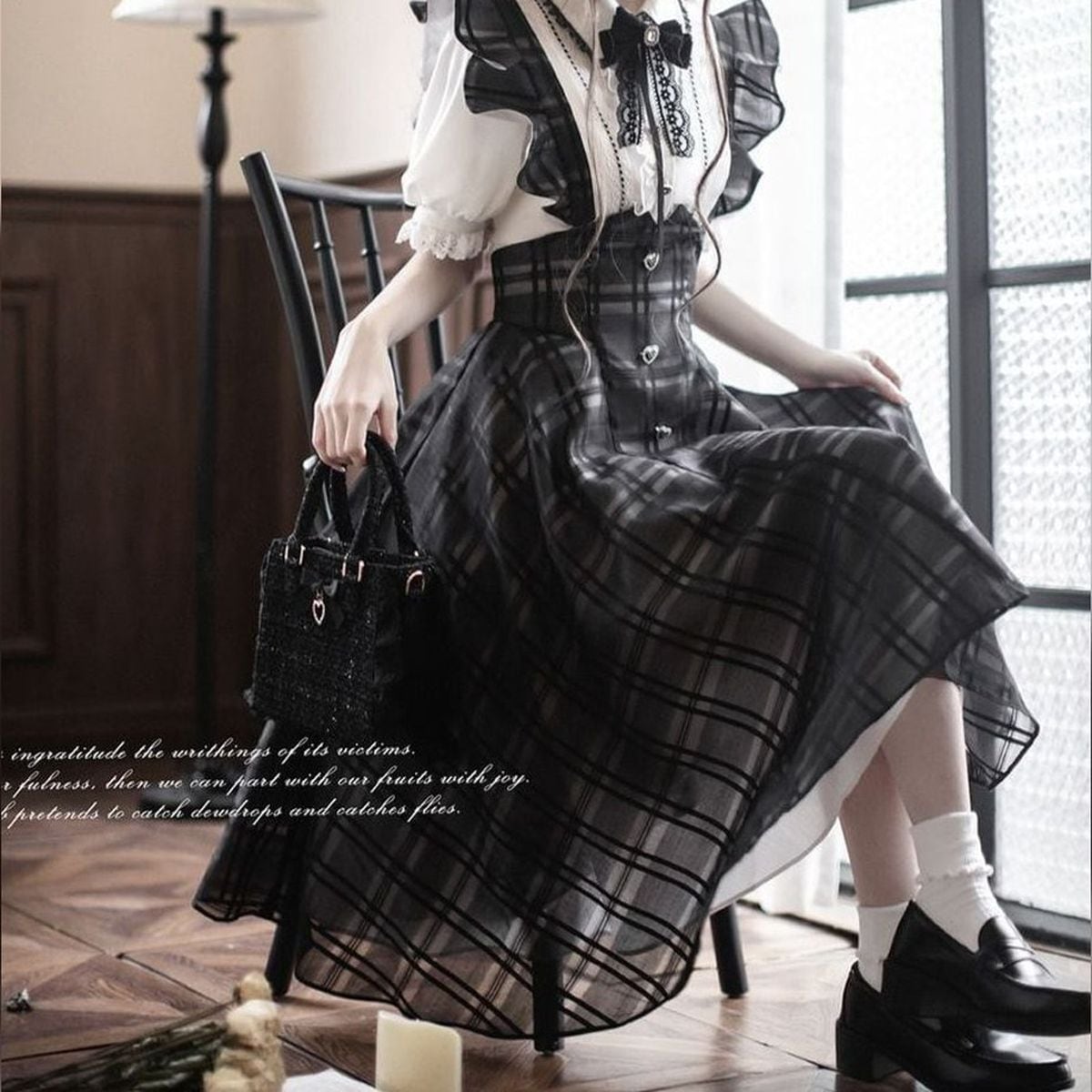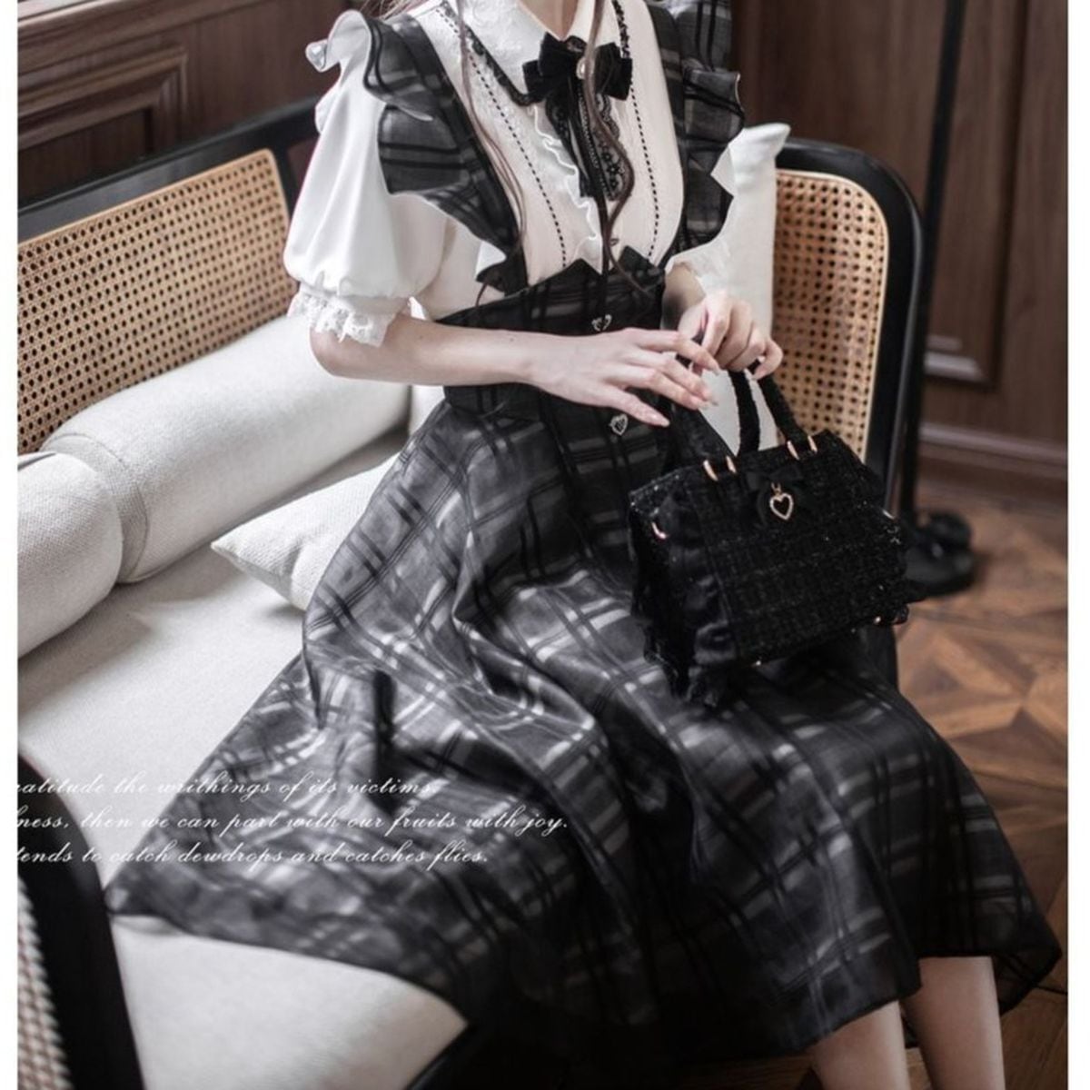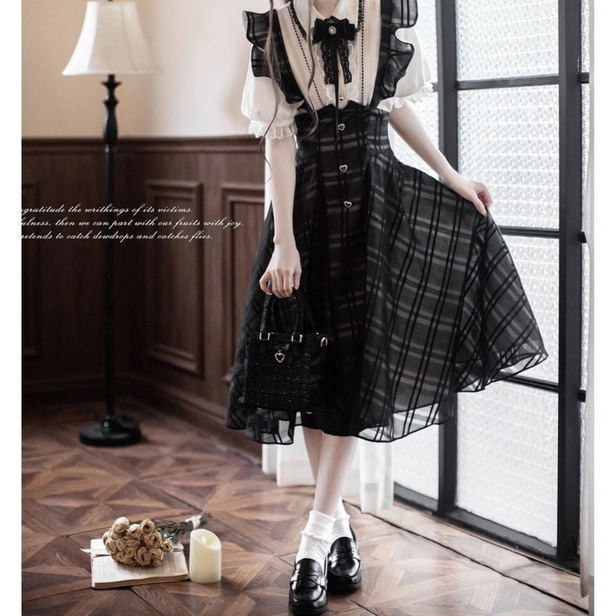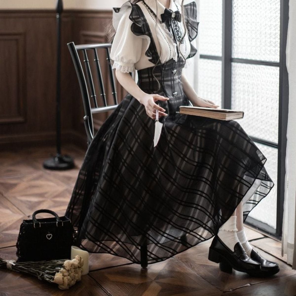 エレガントフリルジャンパースカートセットアップ:ブラウス(半袖)