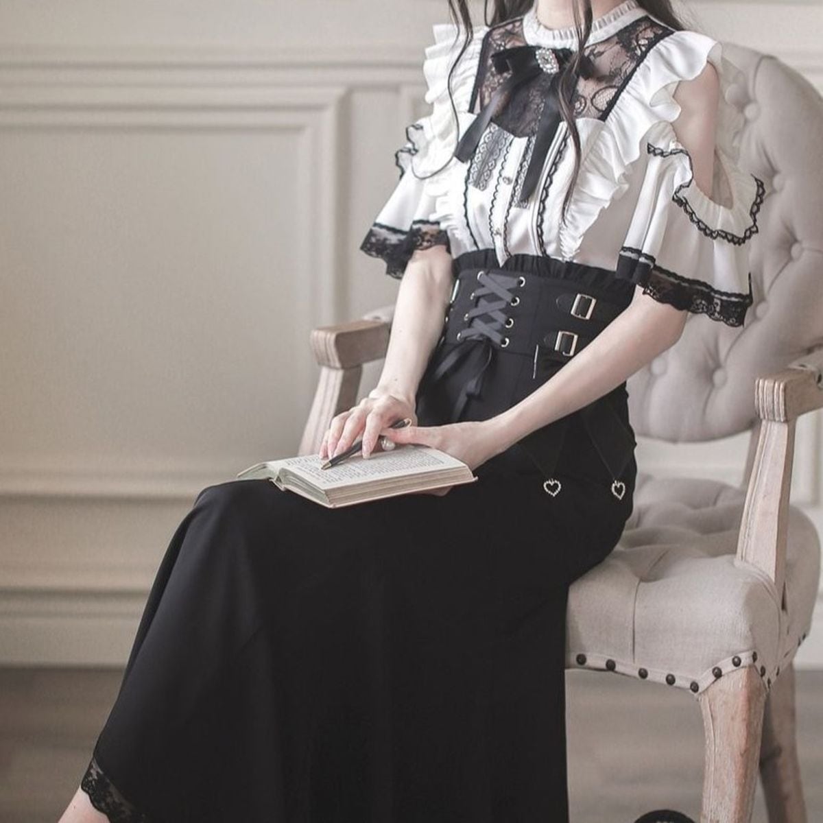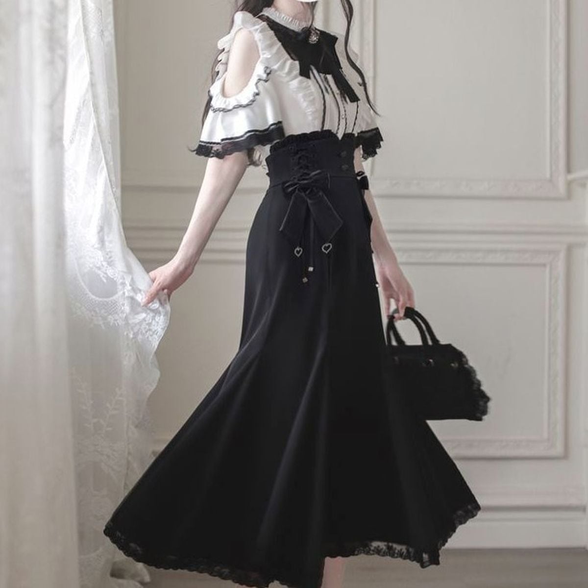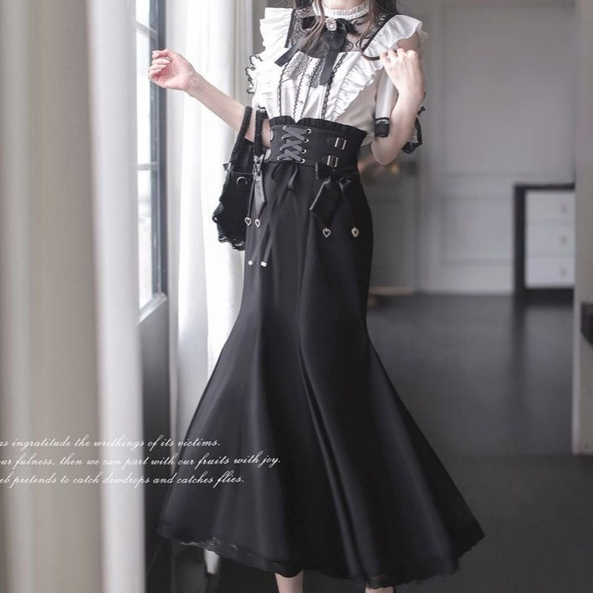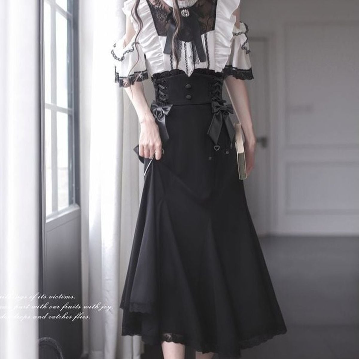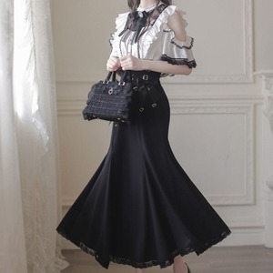 フラワーシースルー襟ロングスカートセットアップ:スカートver.A