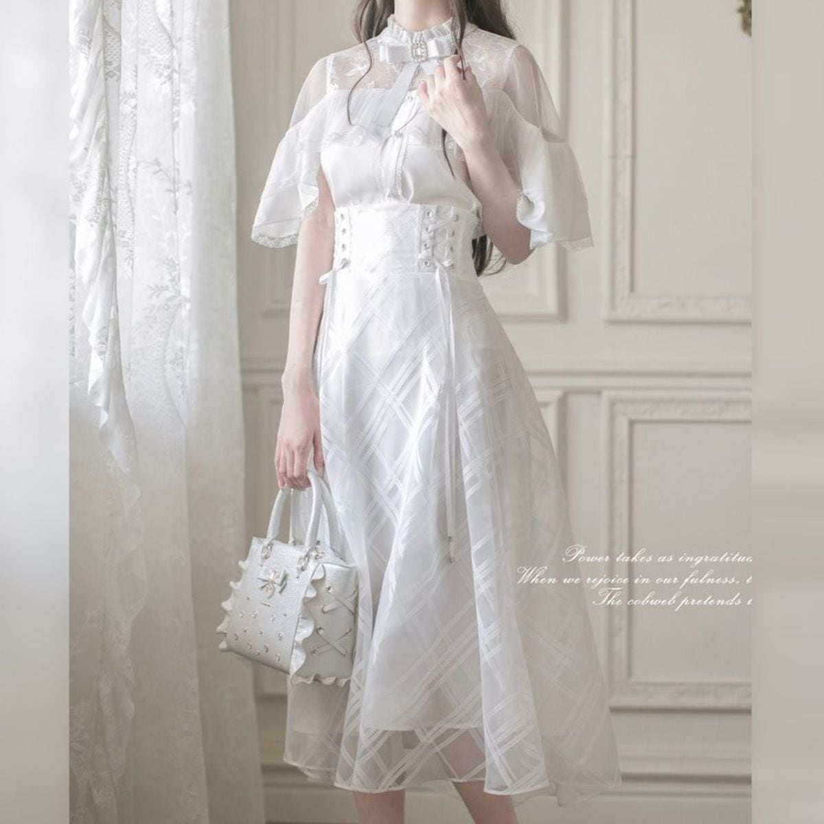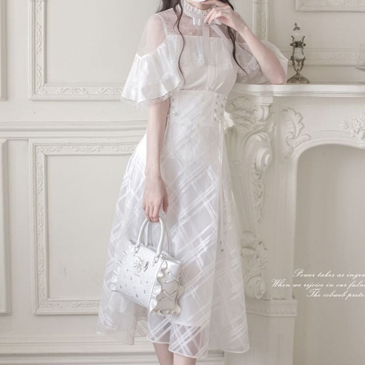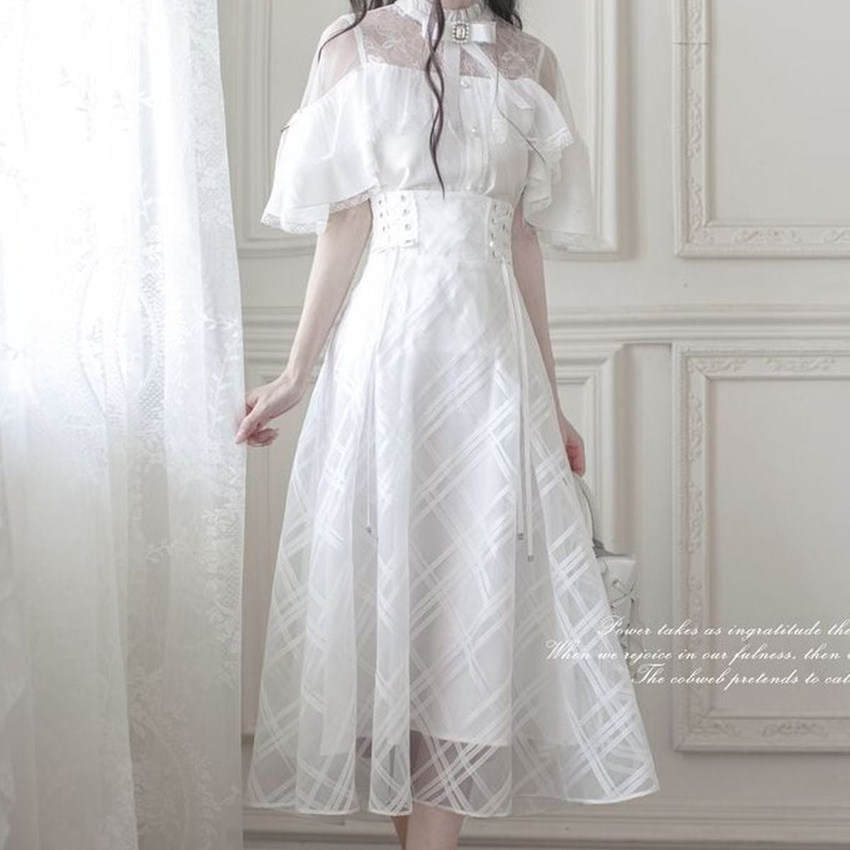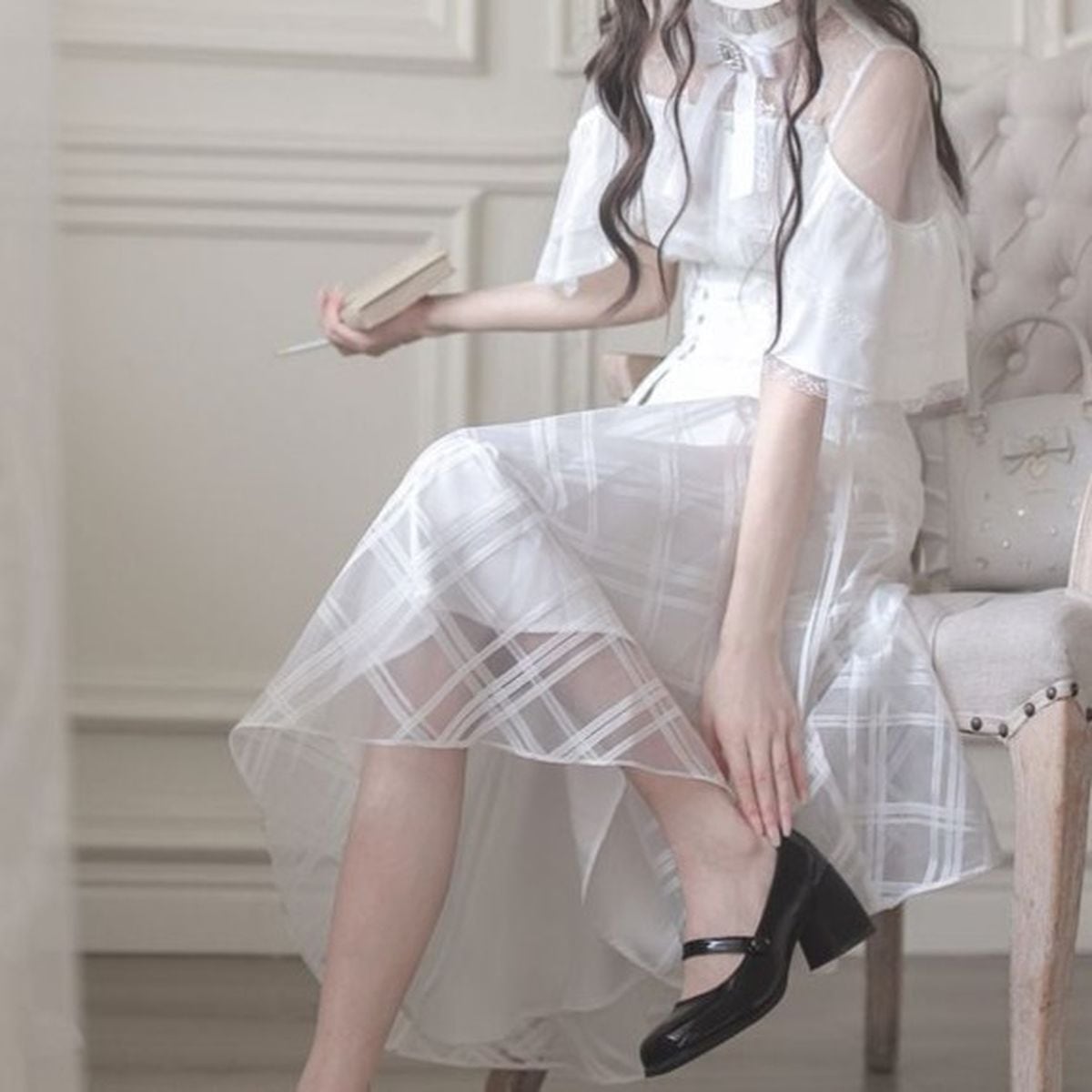 シースルーショルダーロングスカートセットアップ:トップス(ホワイトver.)