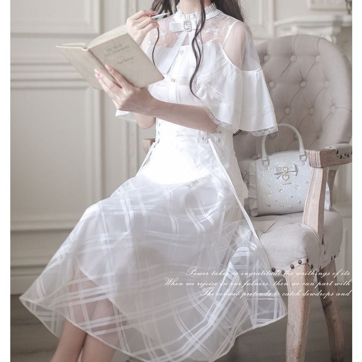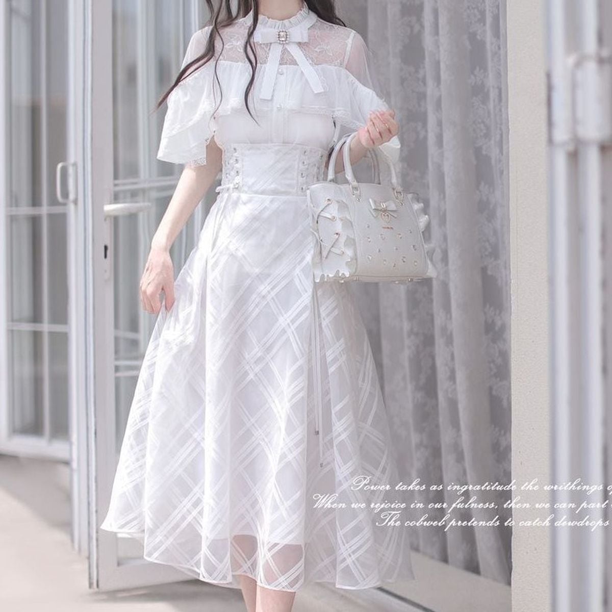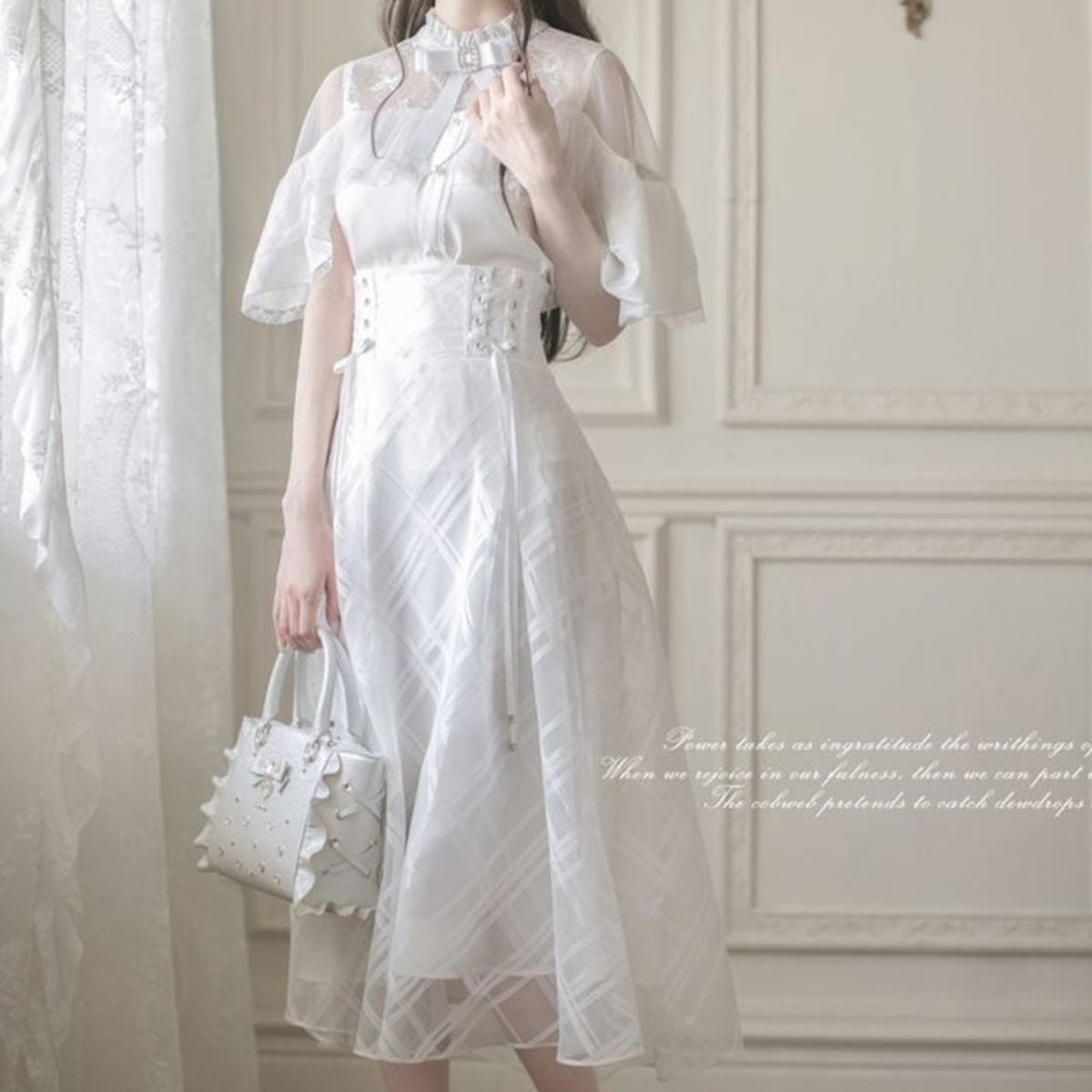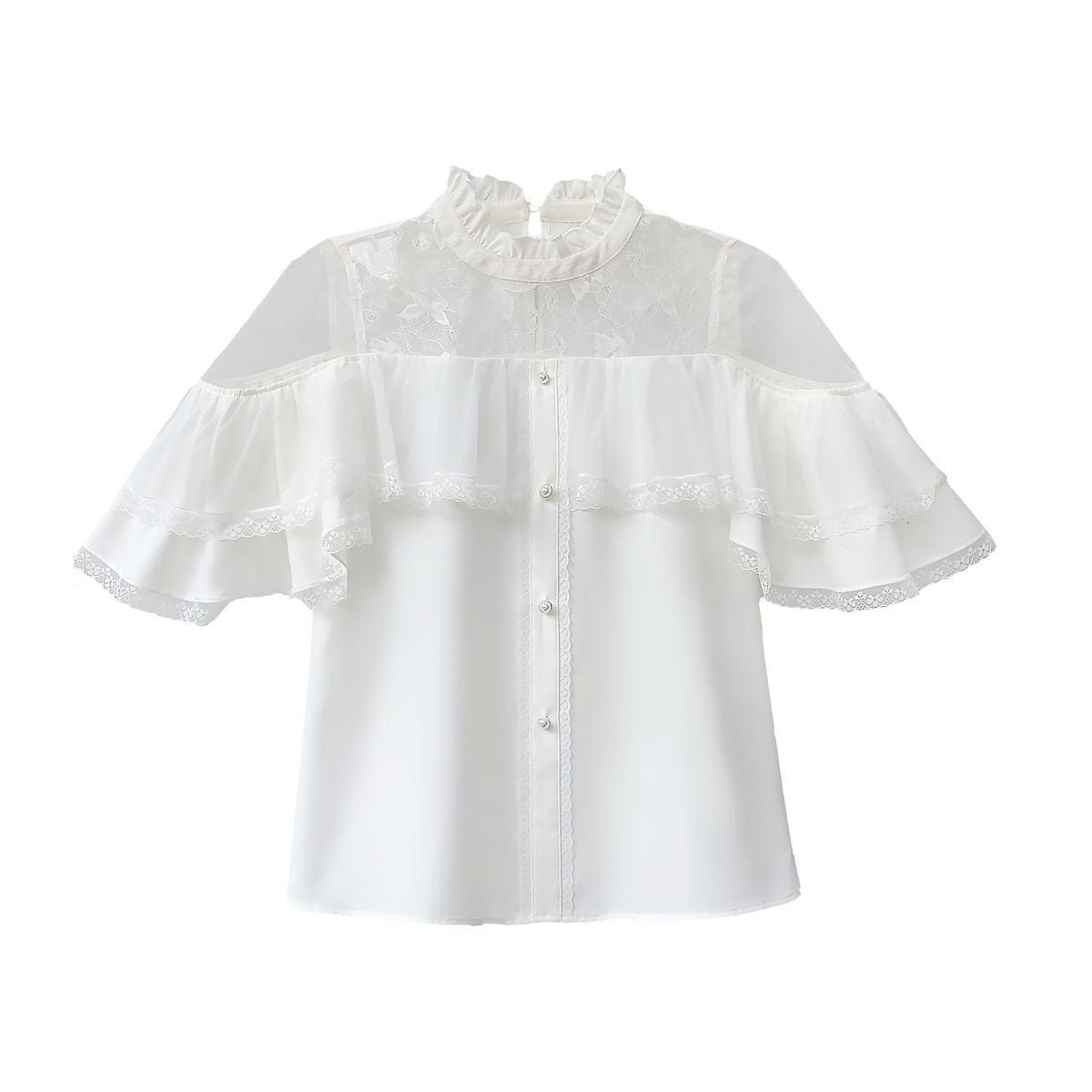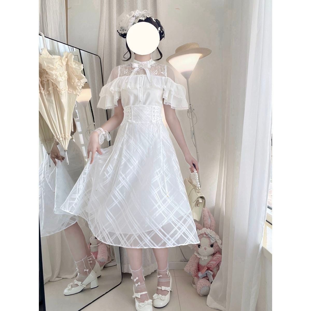 シースルーショルダーロングスカートセットアップ:トップス(ホワイトver.)