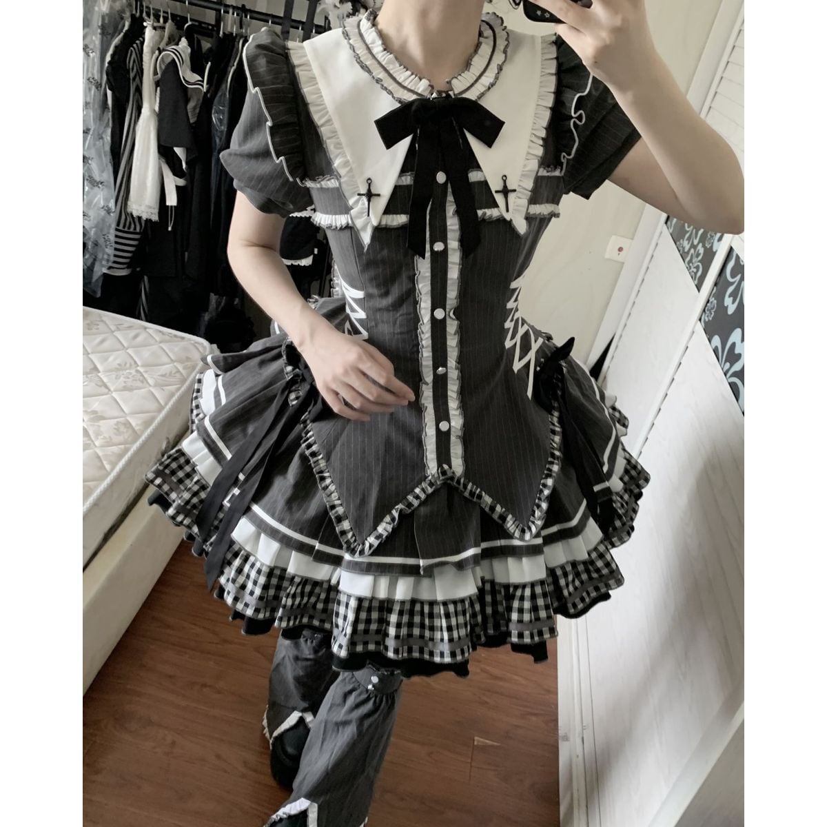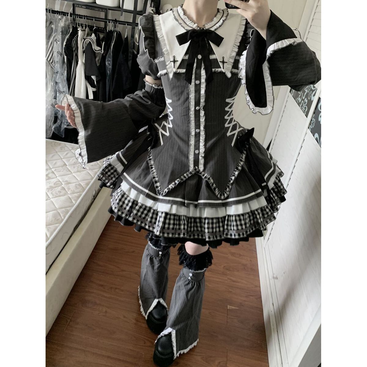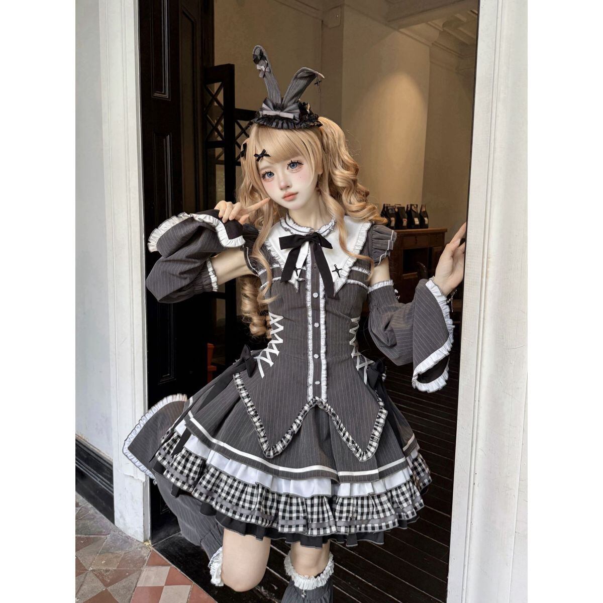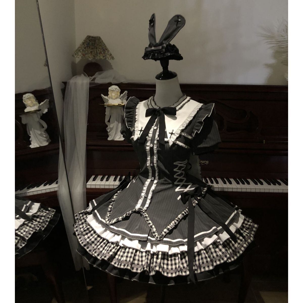 うさ耳ブラックゴシックワンピースセット:つけ袖(姫袖ver.)