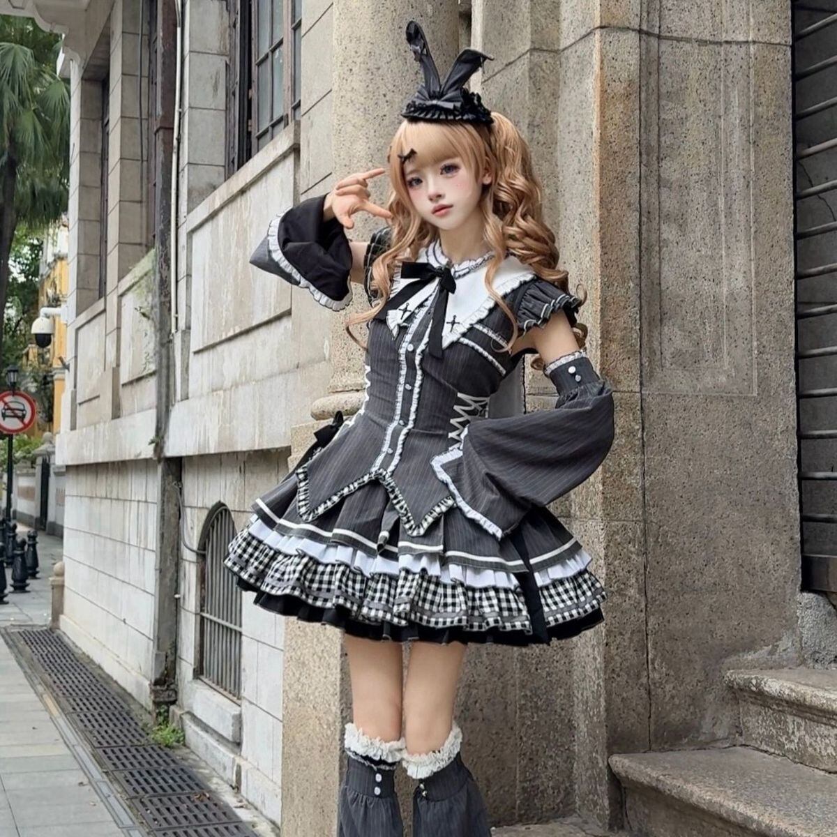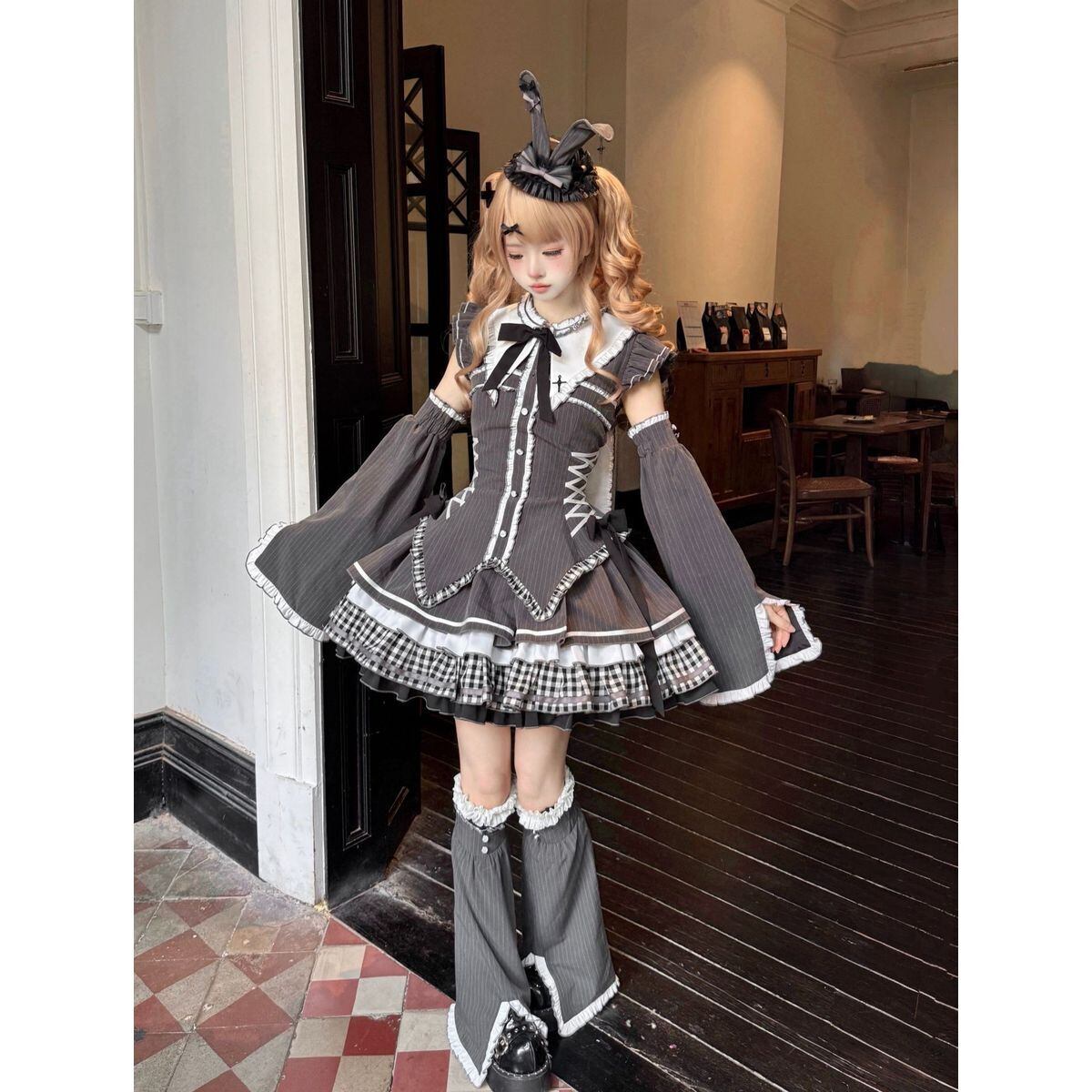 うさ耳ブラックゴシックワンピースセット:つけ袖(ストレートver.)