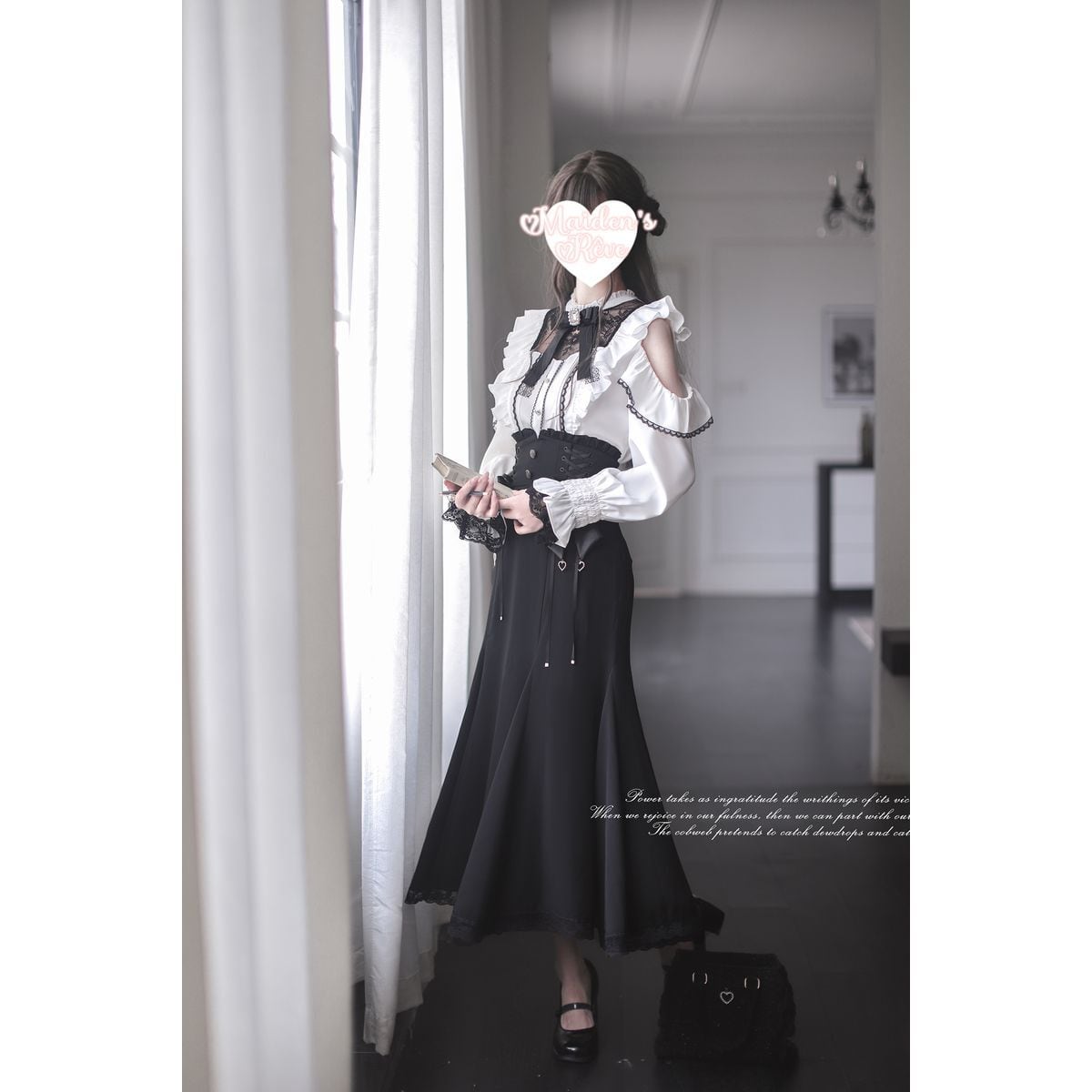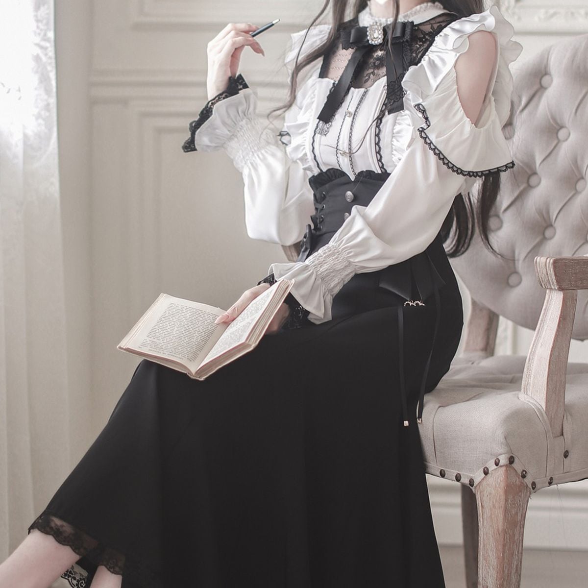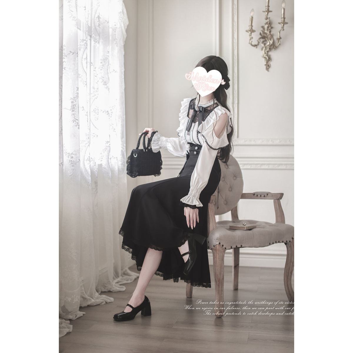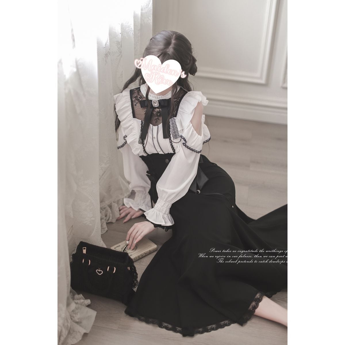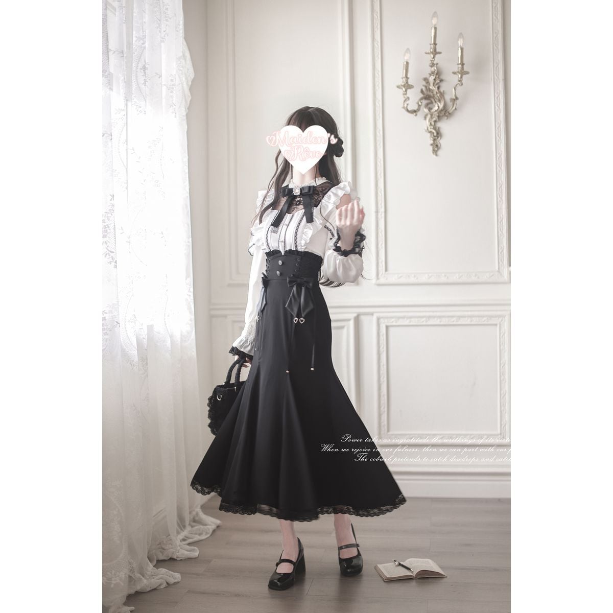フラワーシースルー襟ロングスカートセットアップ:ブラウス長袖ver.