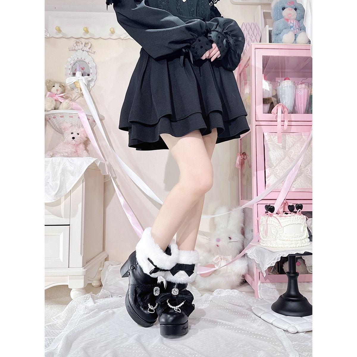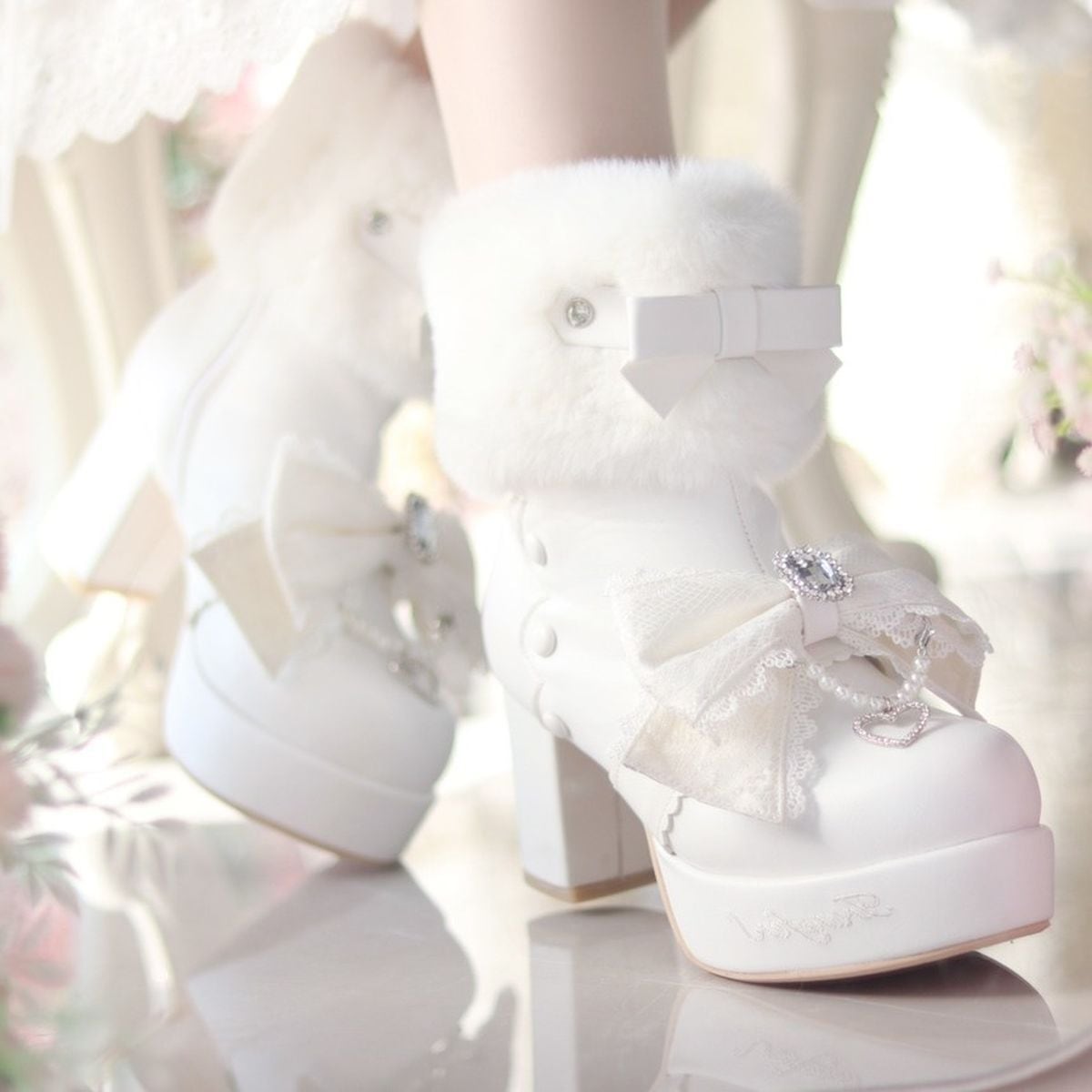 ファー付きガーリーショートブーツ