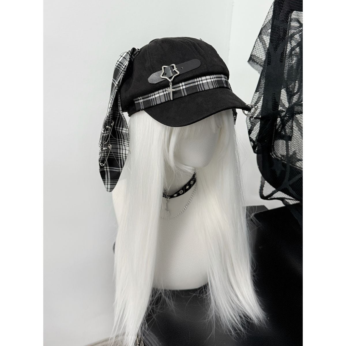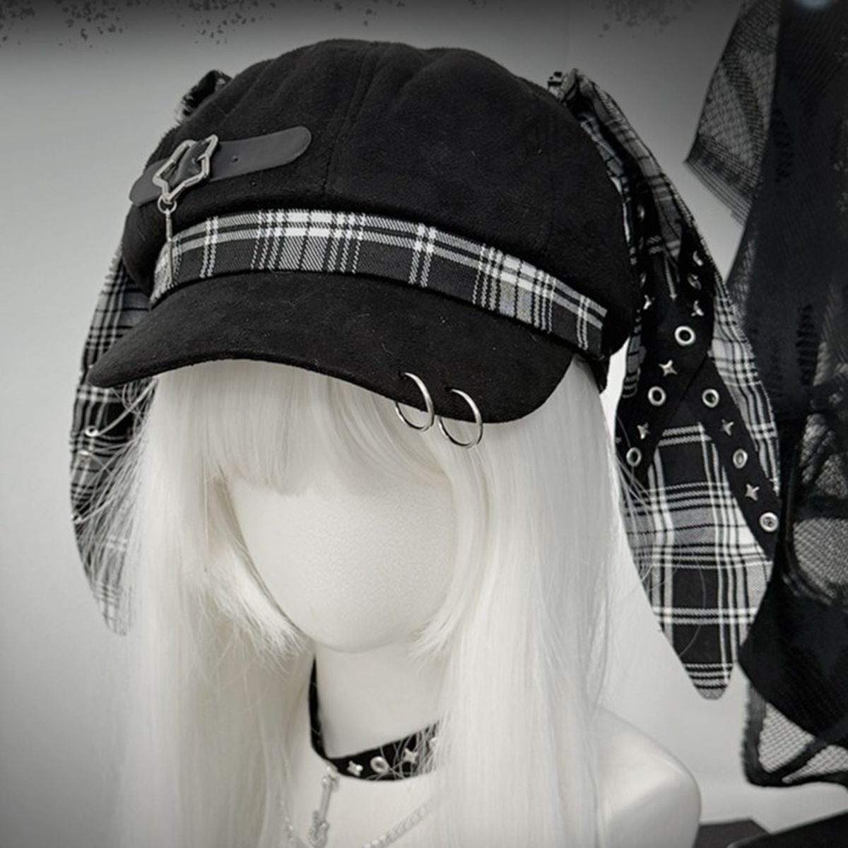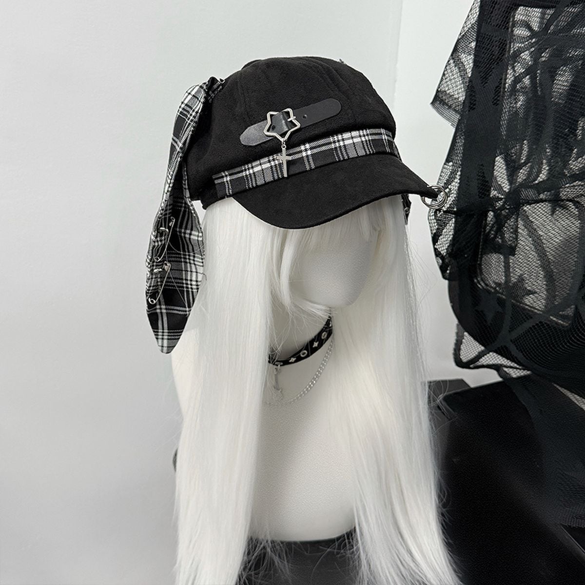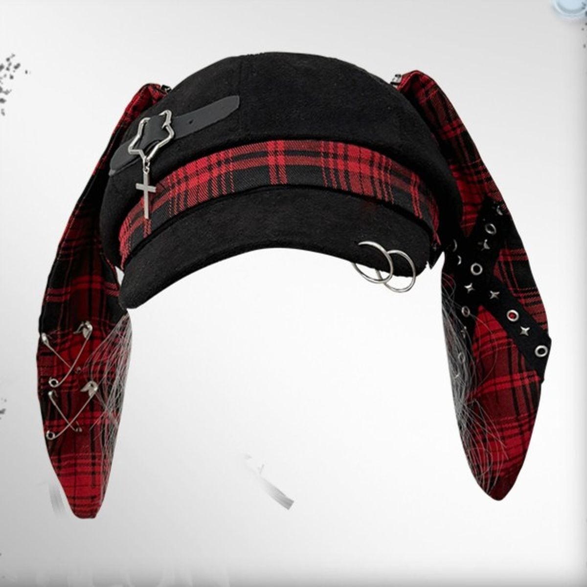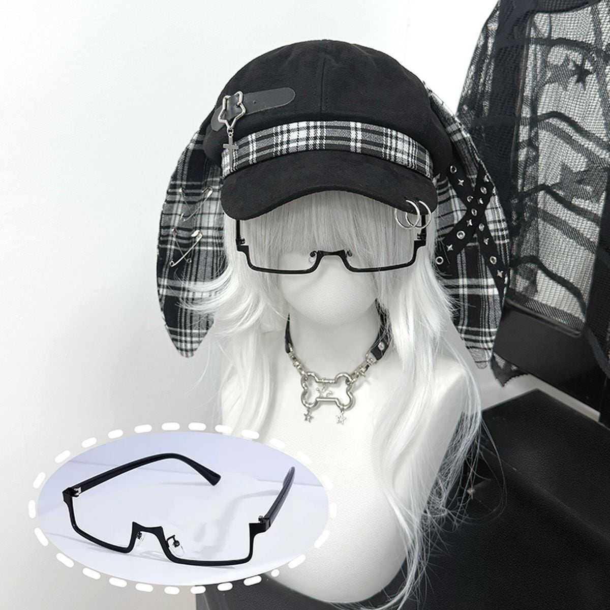 チェックウサ耳サブカルハット:メガネフレーム付き