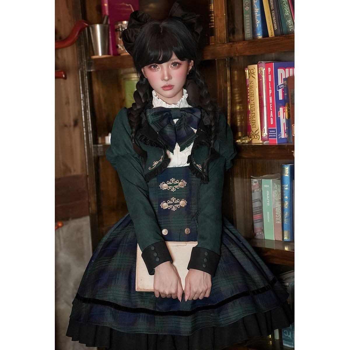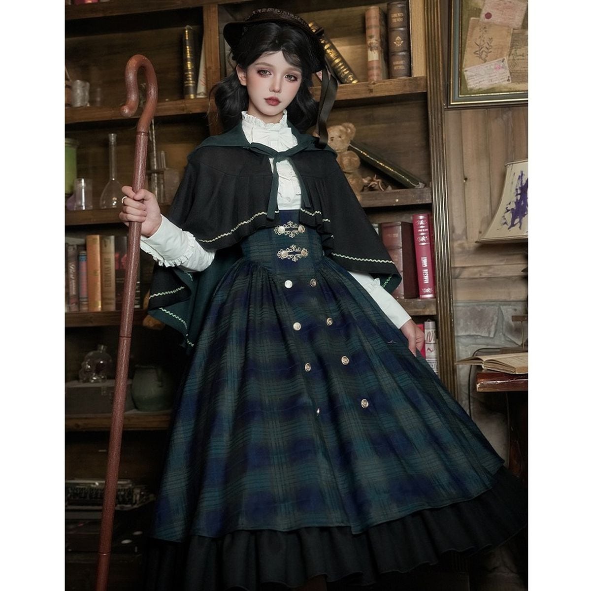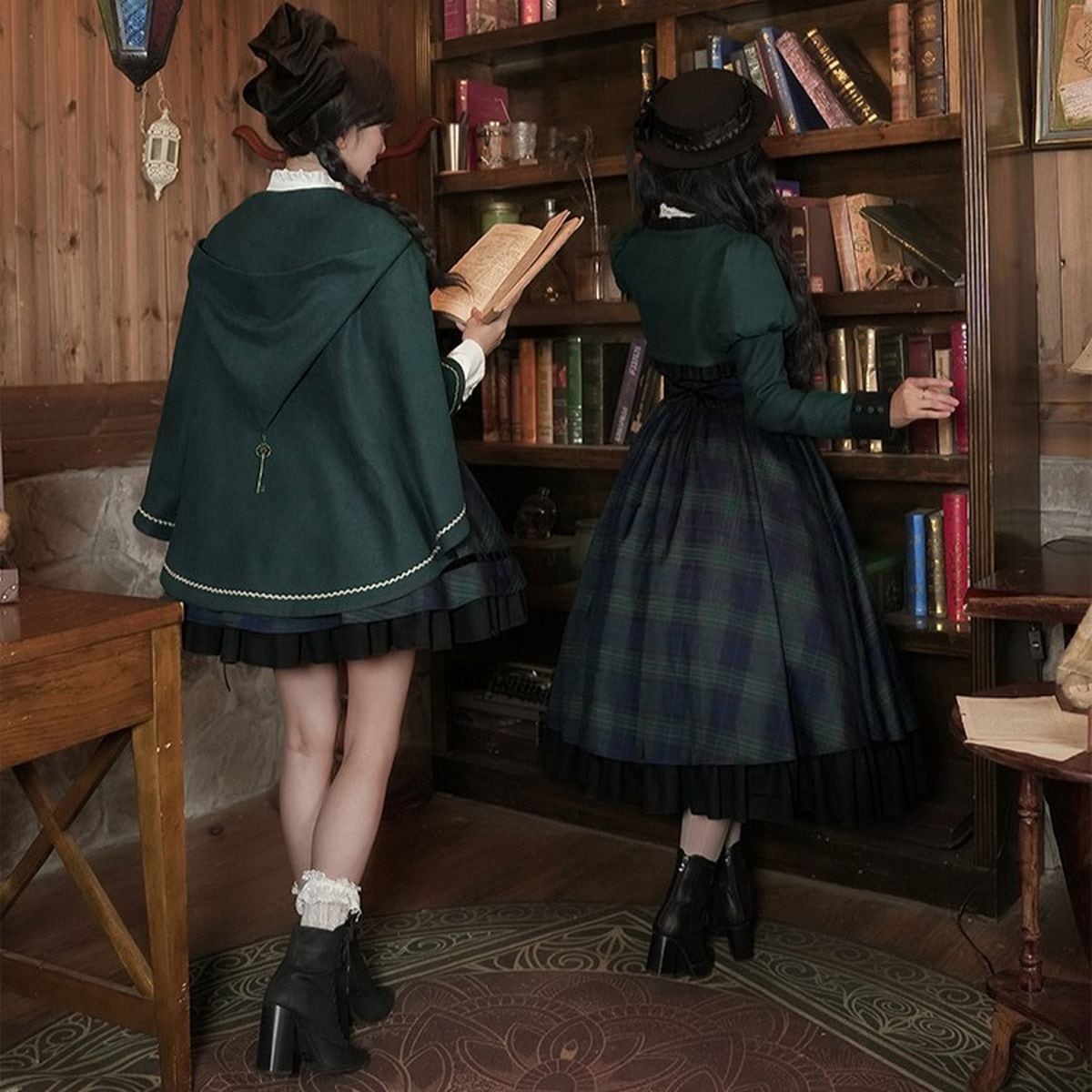 ツインズ・アカデミック・チェックスカートセットアップ:ケープ付き 5点セット ミニジャンスカver.