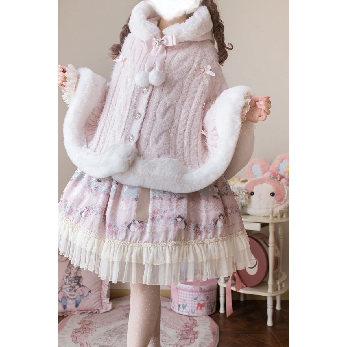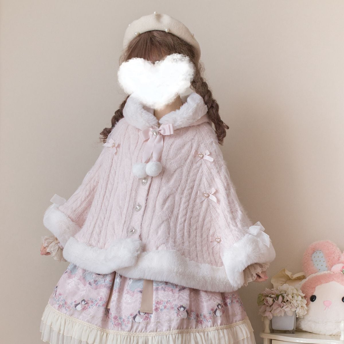 ゆるふわニットのドールケープ