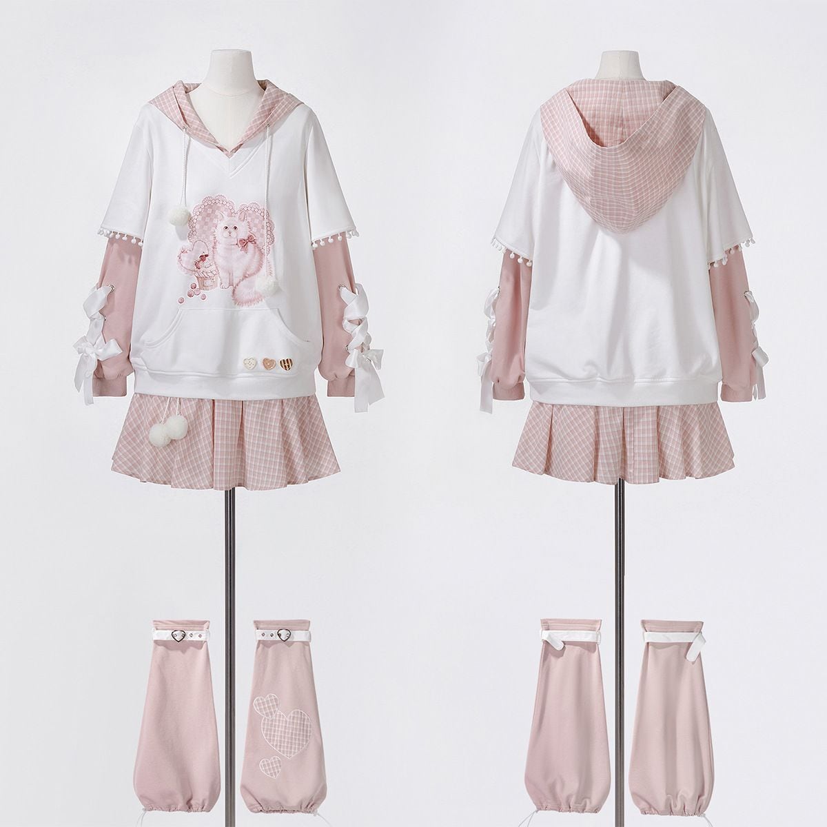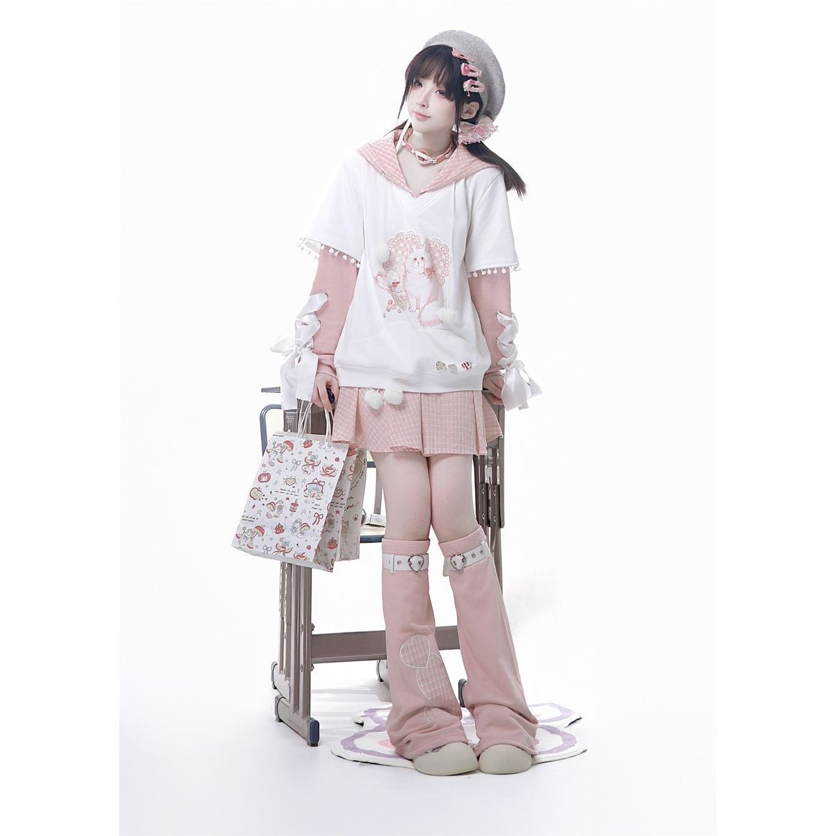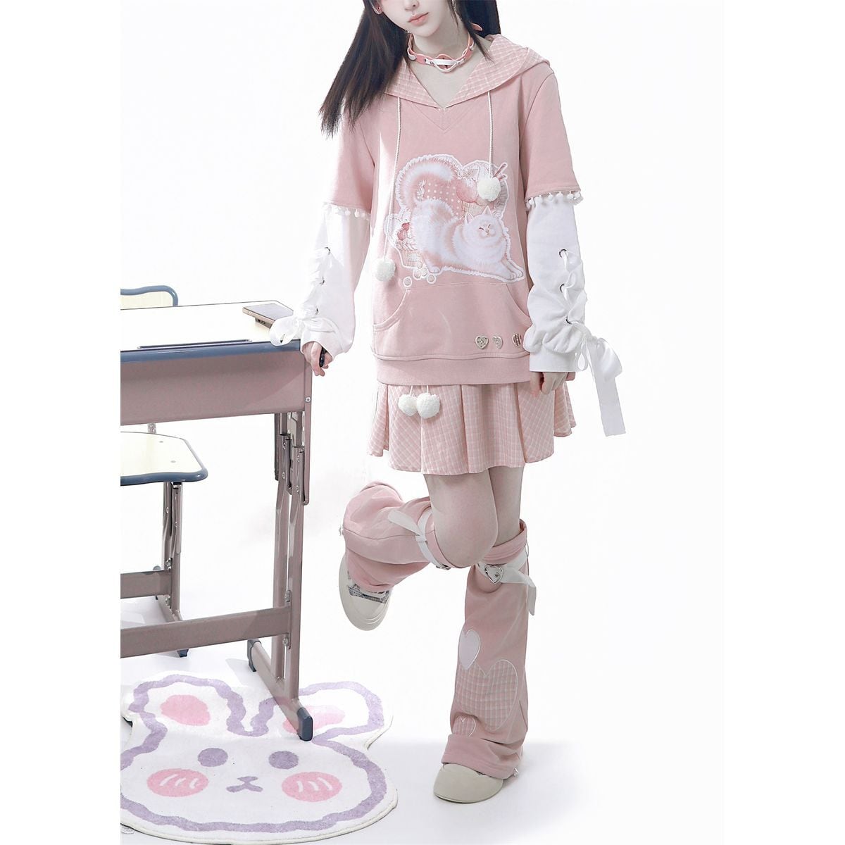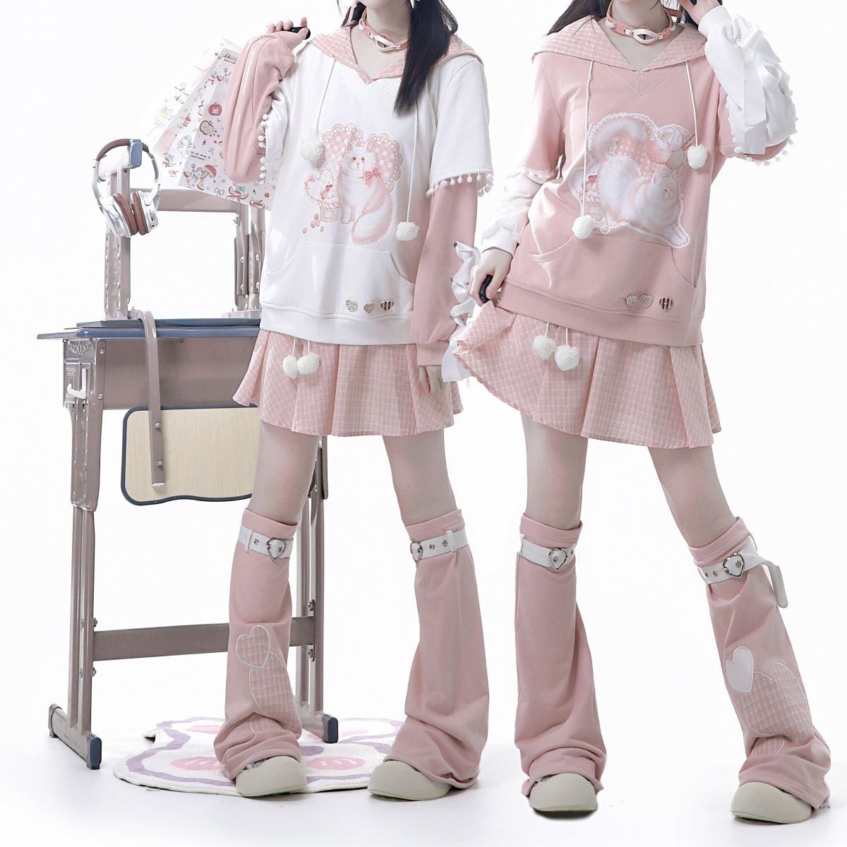 ピンクキャットレッグウォーマー付き双子セットアップ