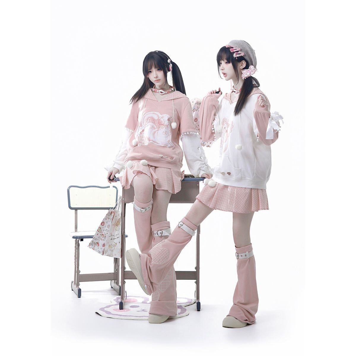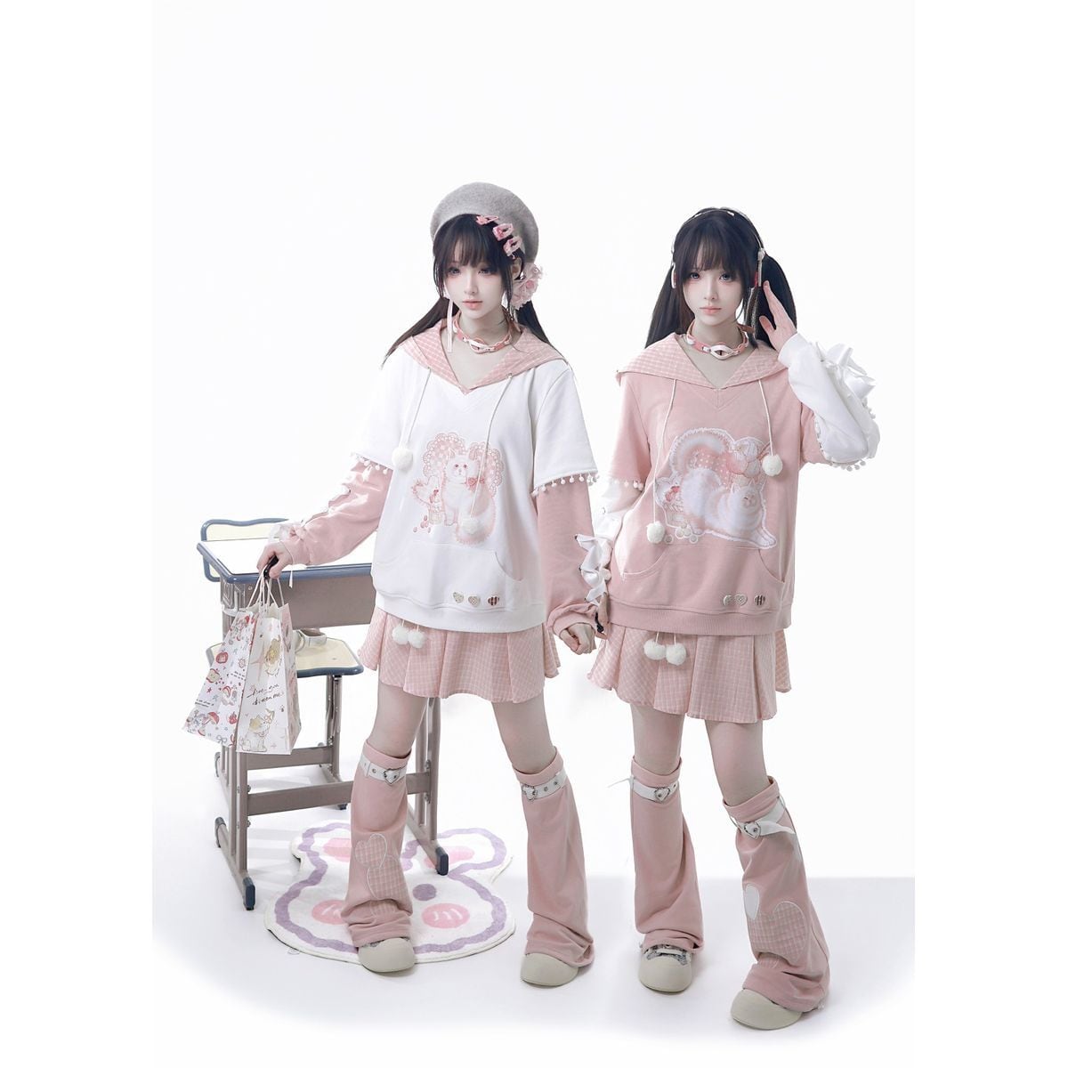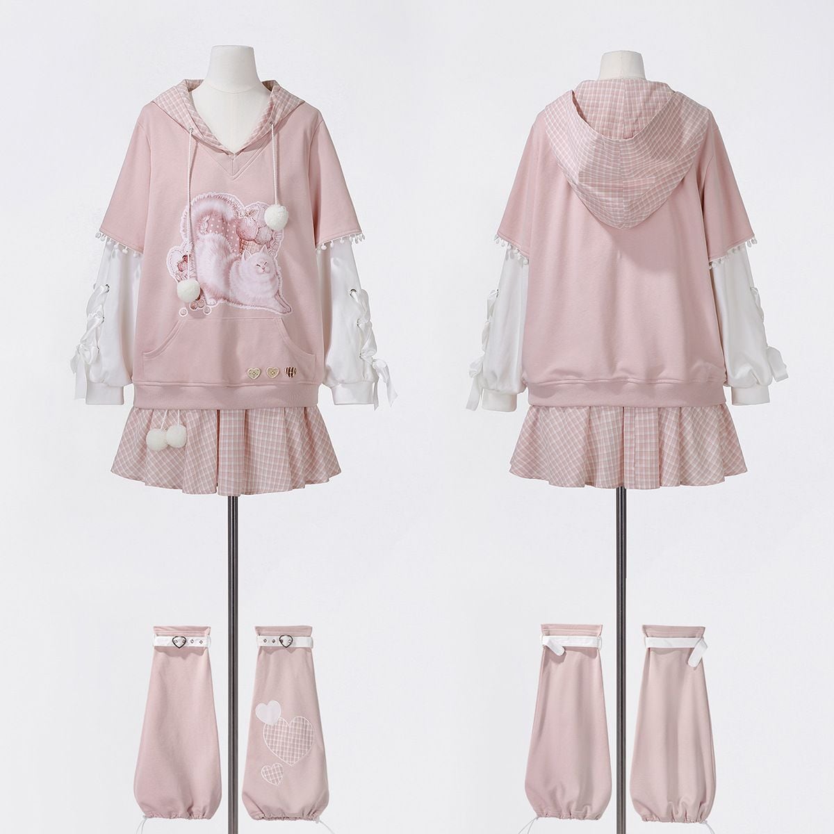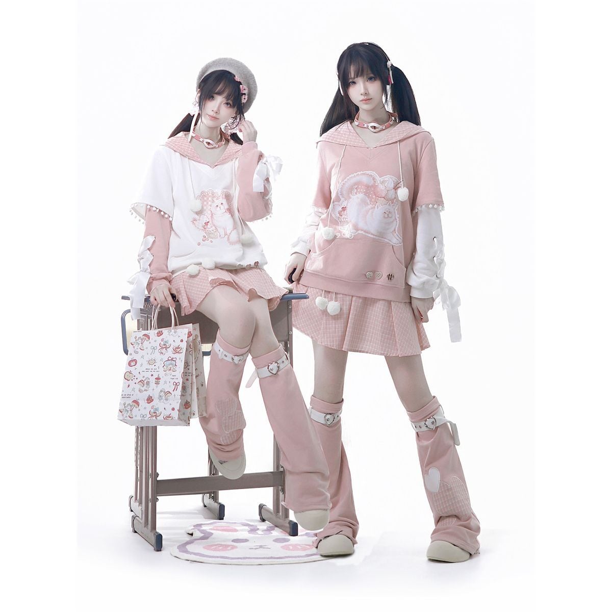 ピンクキャットレッグウォーマー付き双子セットアップ