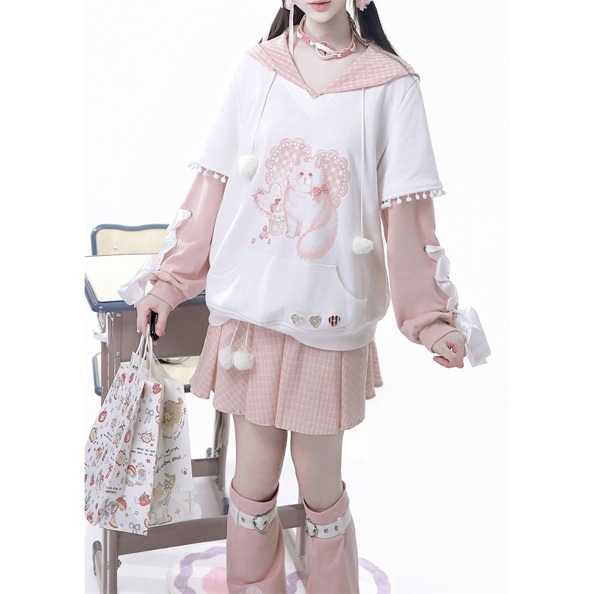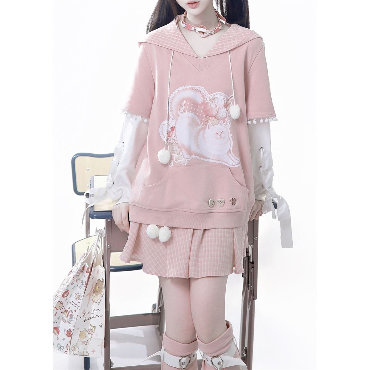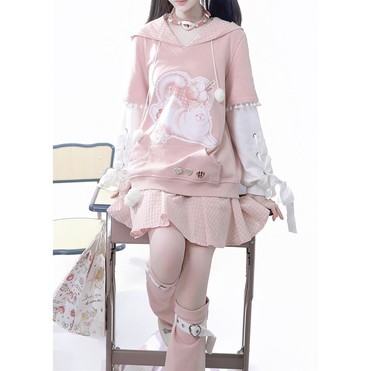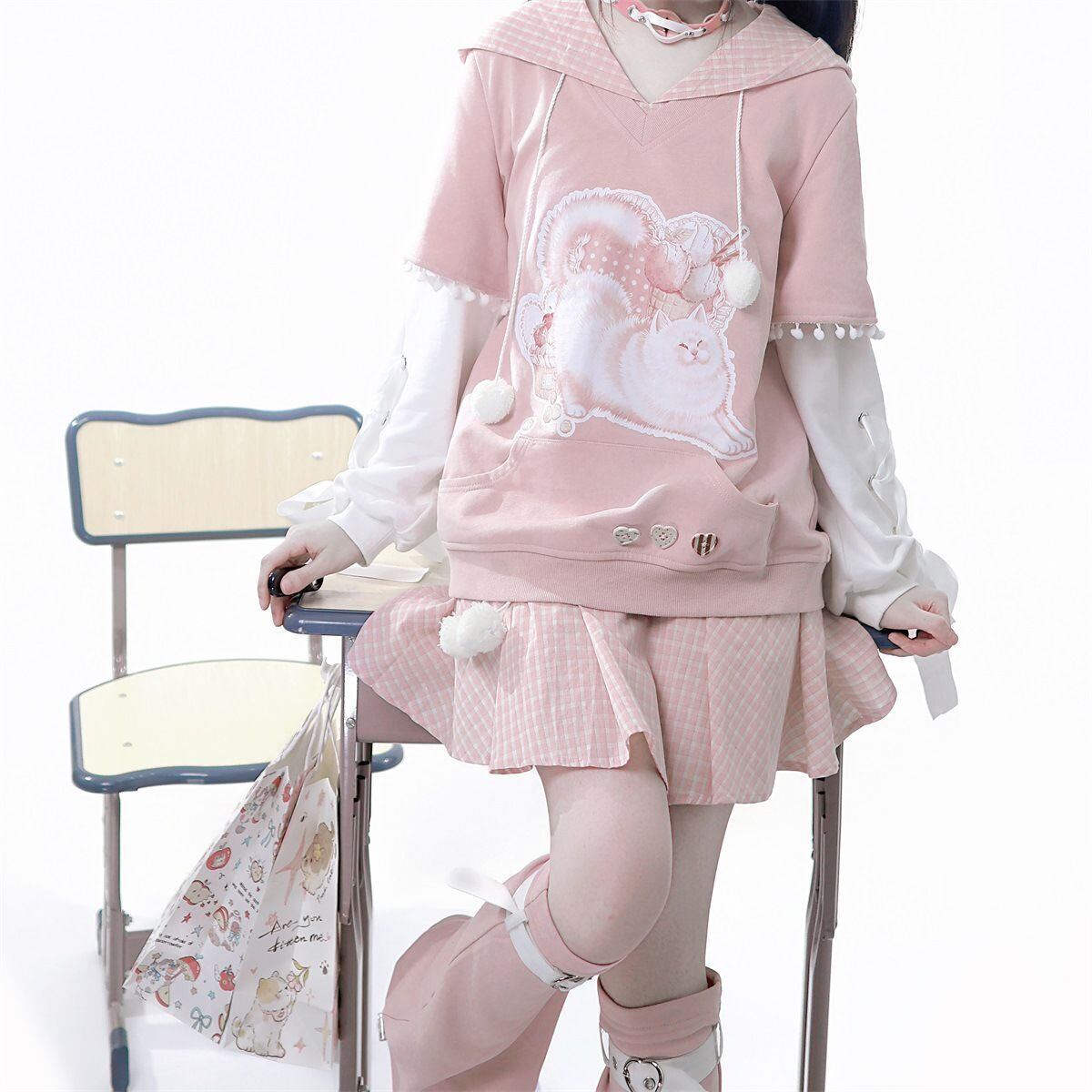 ピンクキャットレッグウォーマー付き双子セットアップ