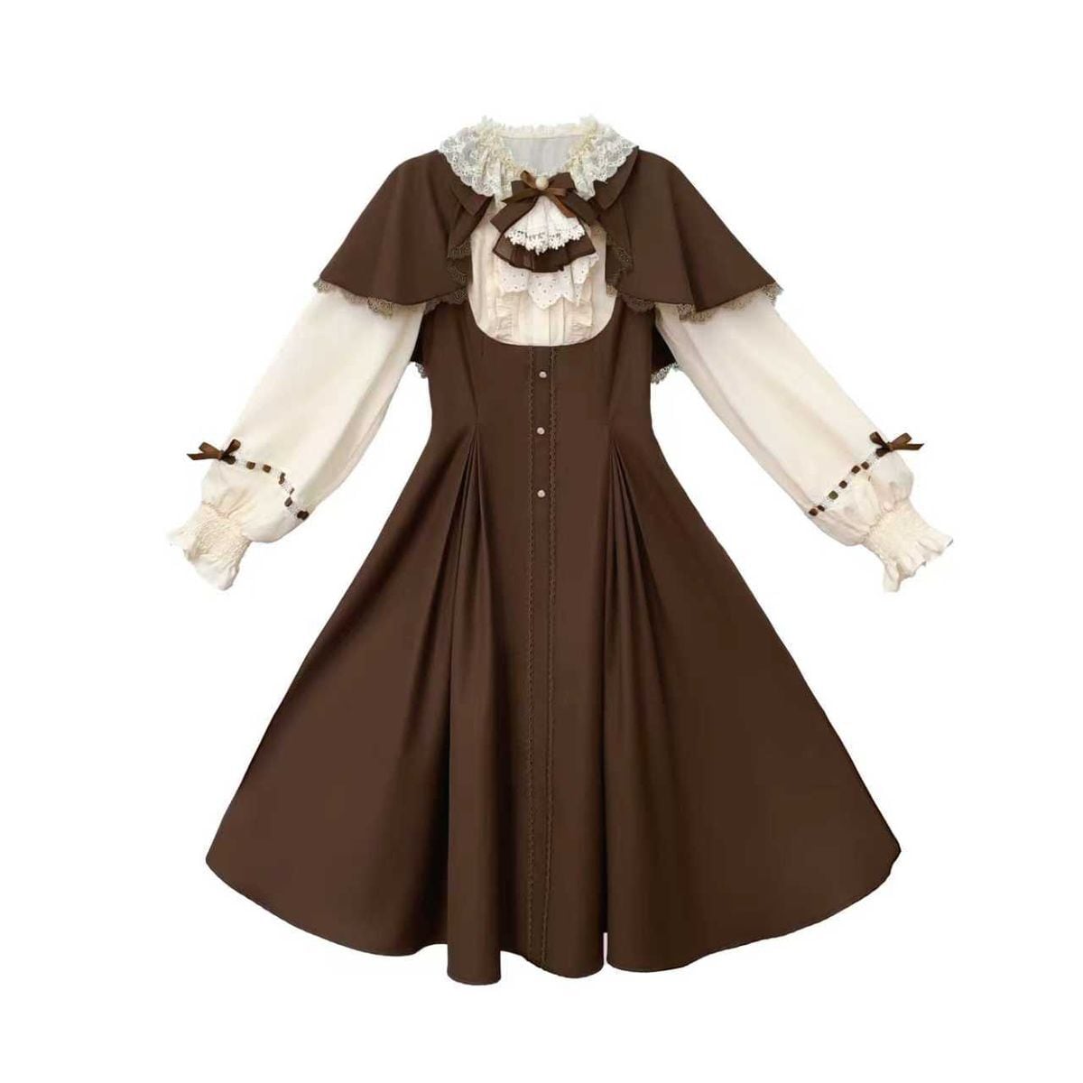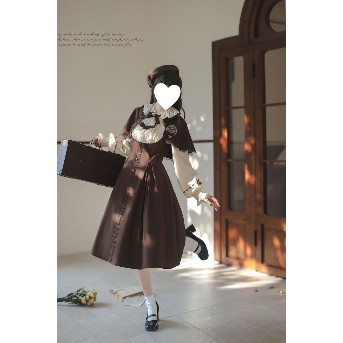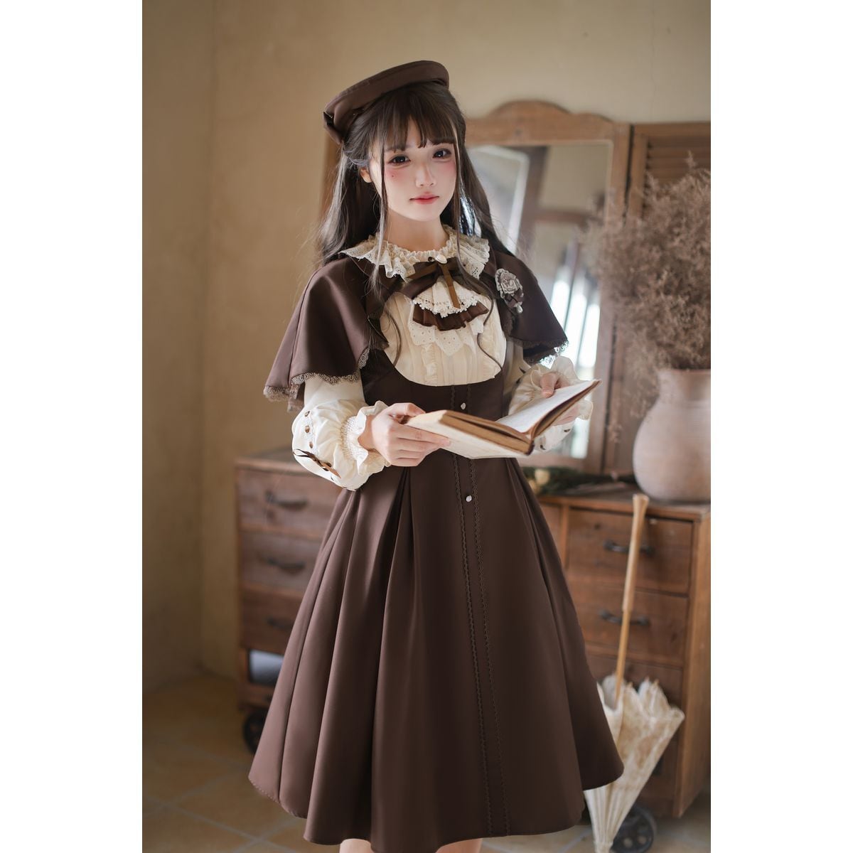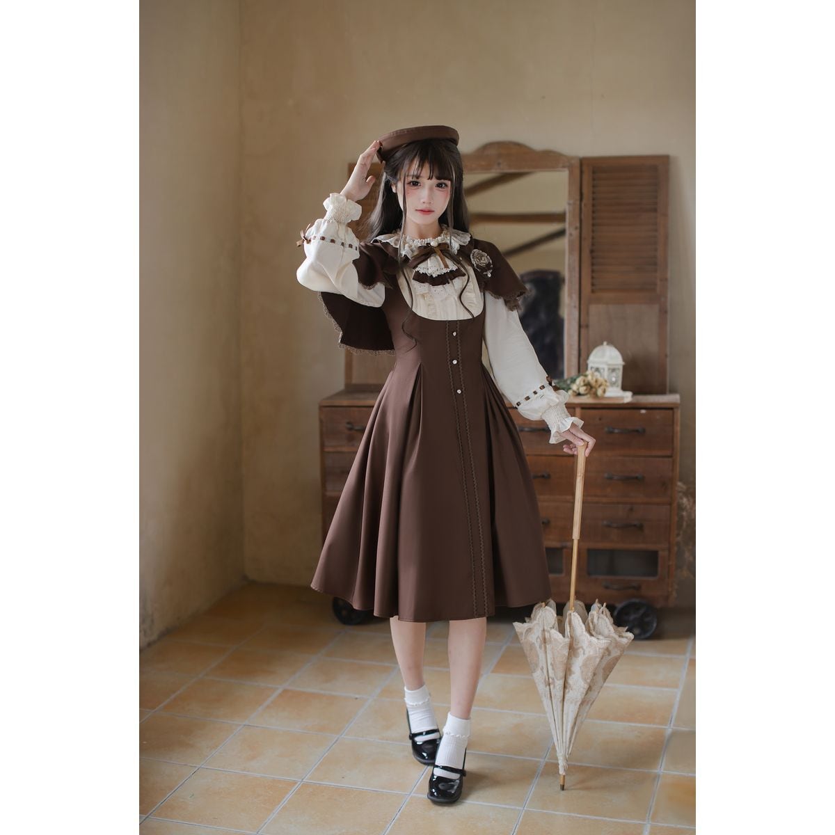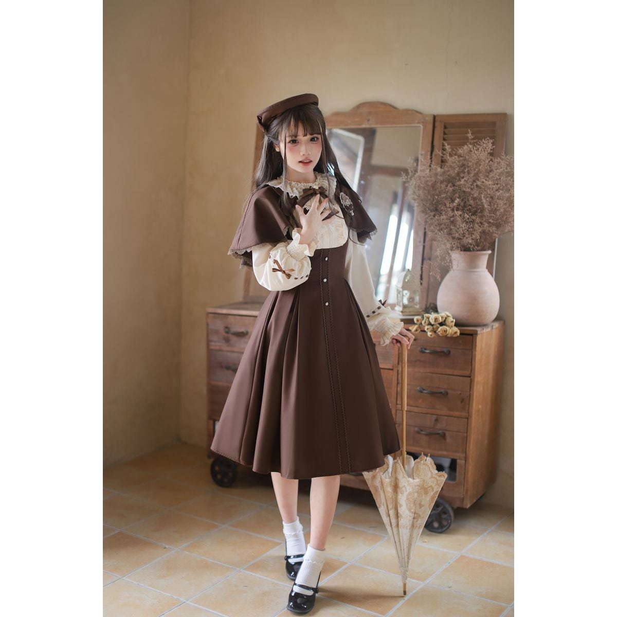 エレガントアカデミックケープワンピースセットアップ:ブラウンver.