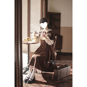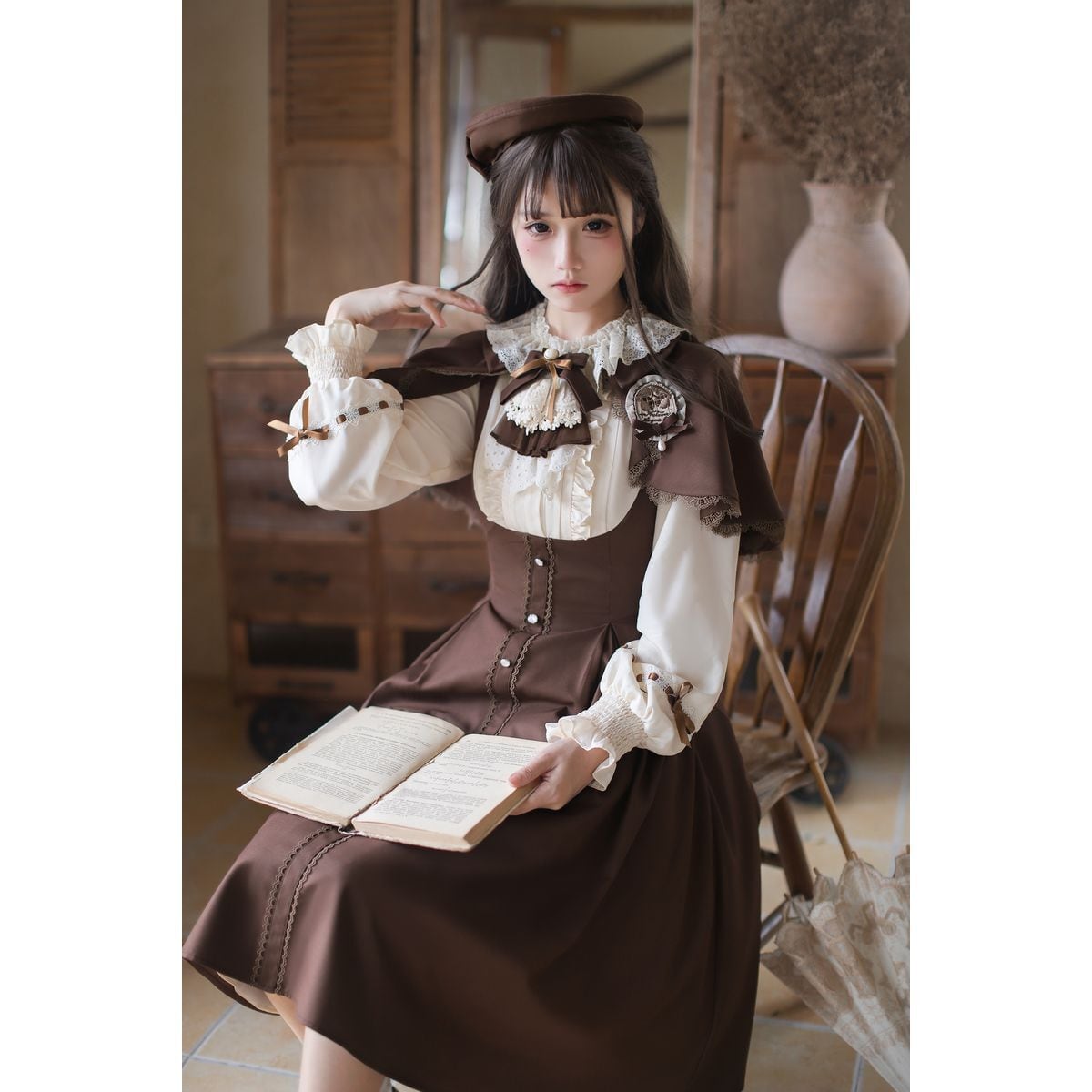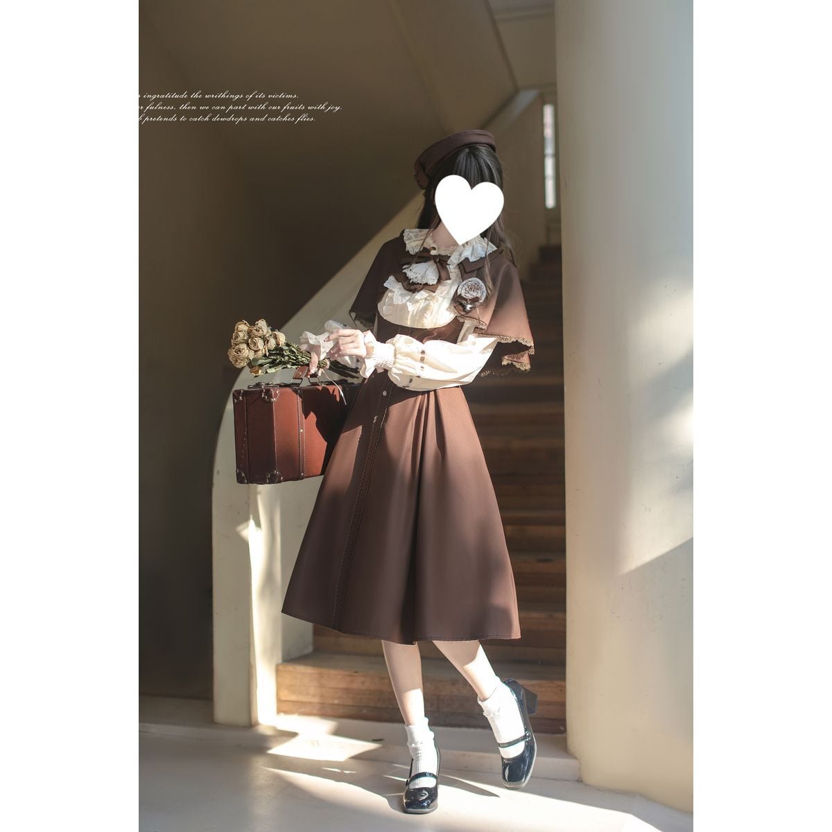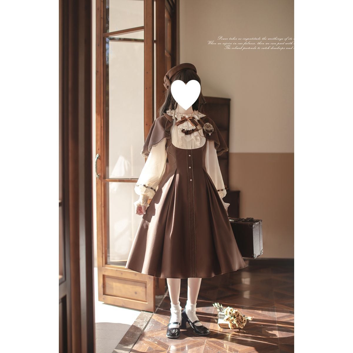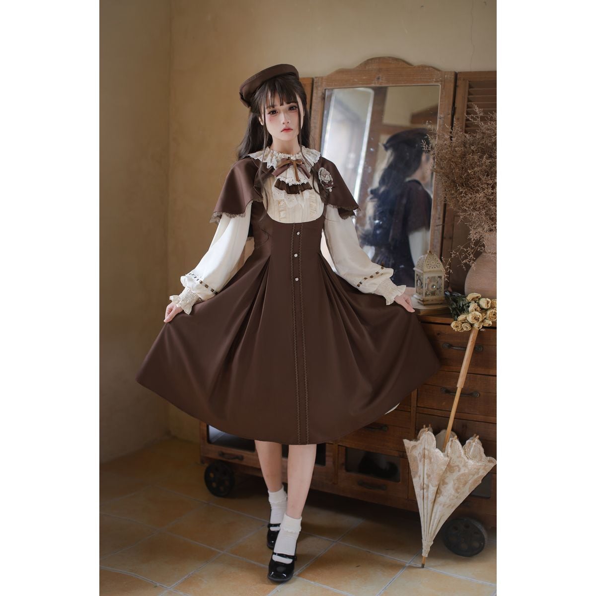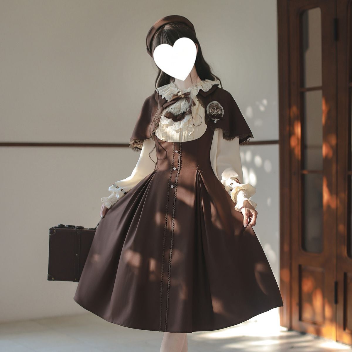 エレガントアカデミックケープワンピースセットアップ:ブラウンver.