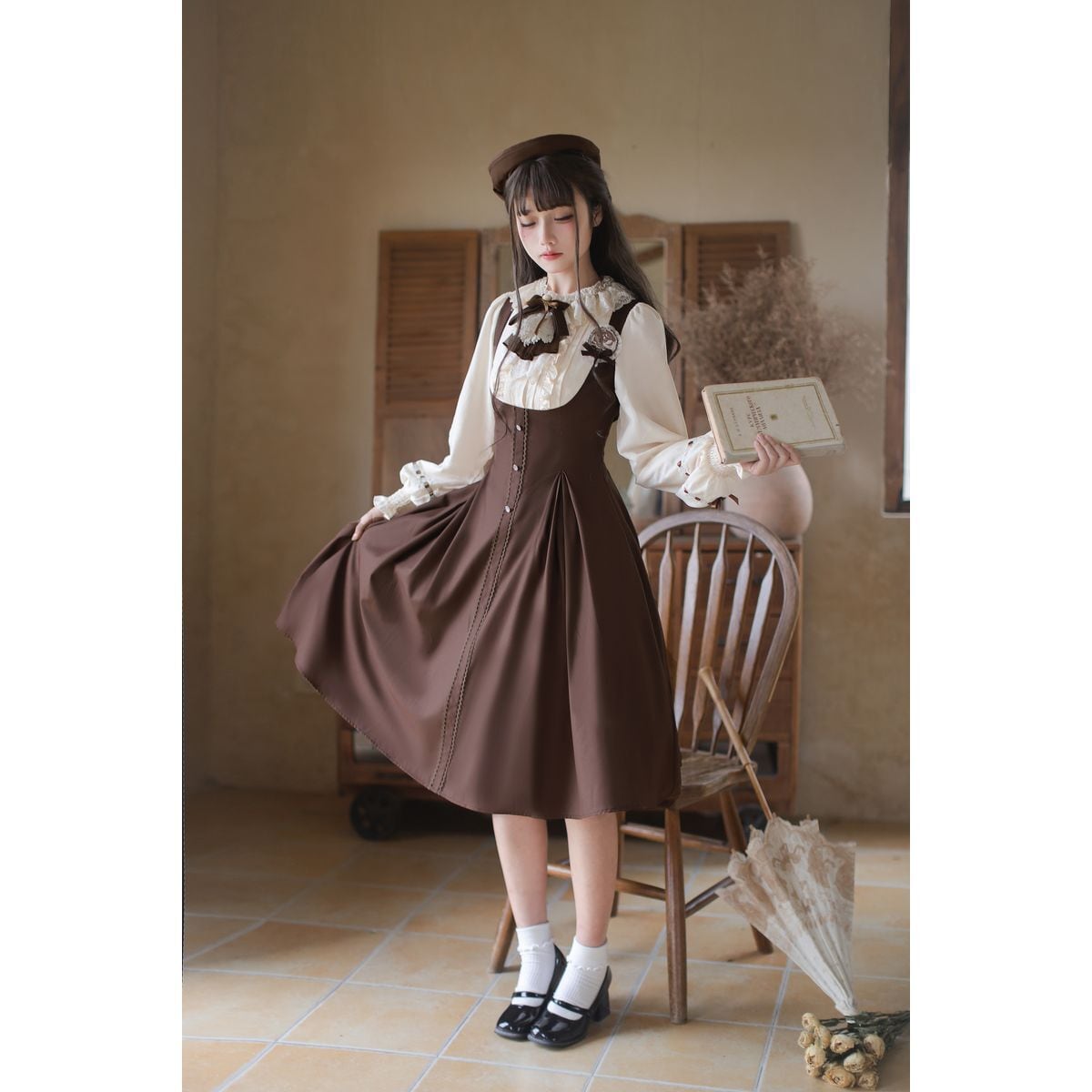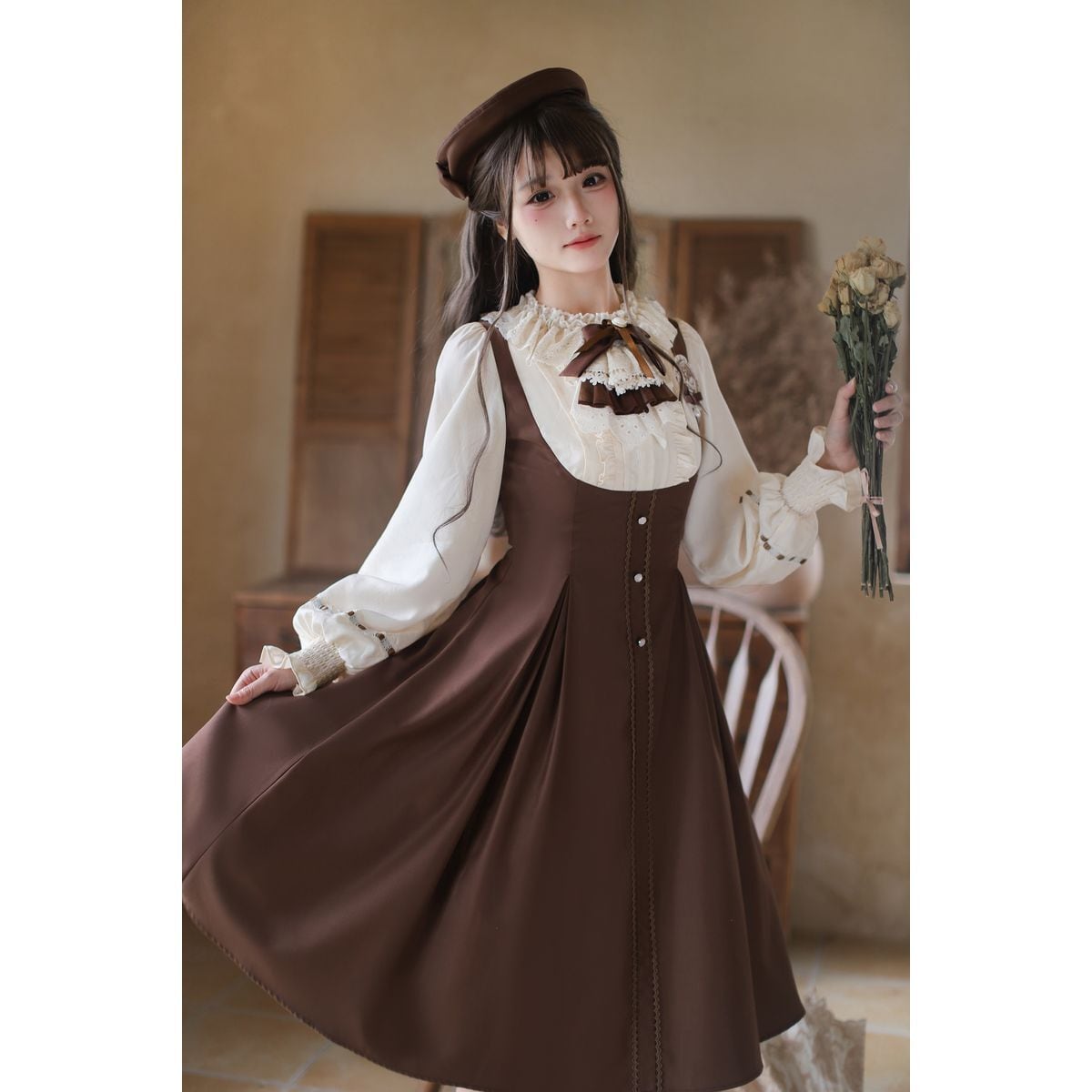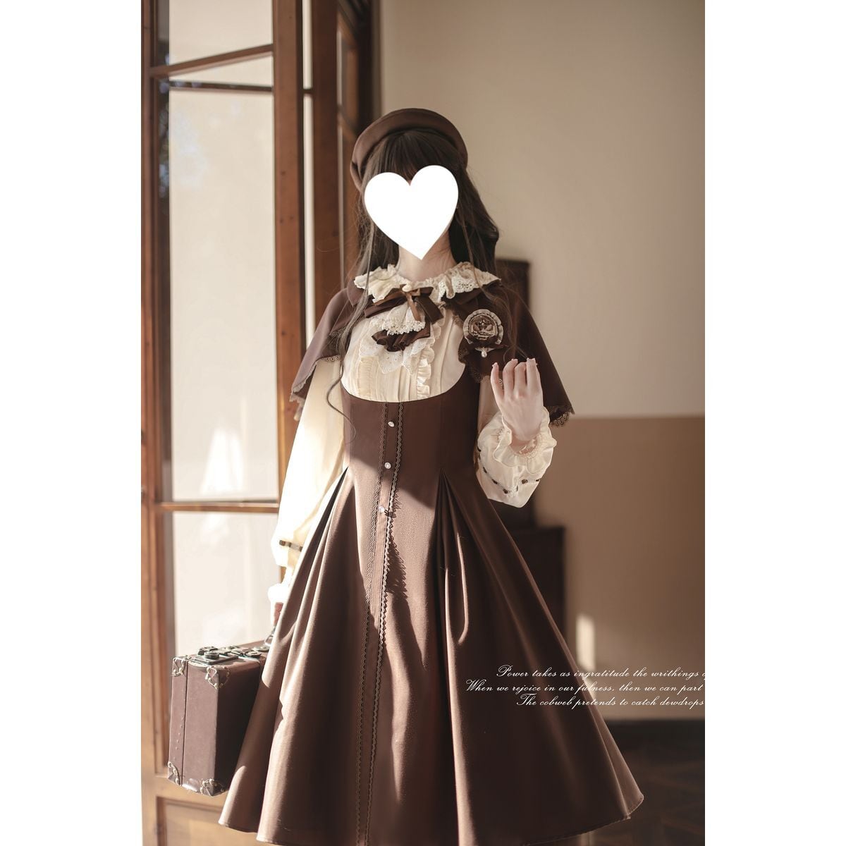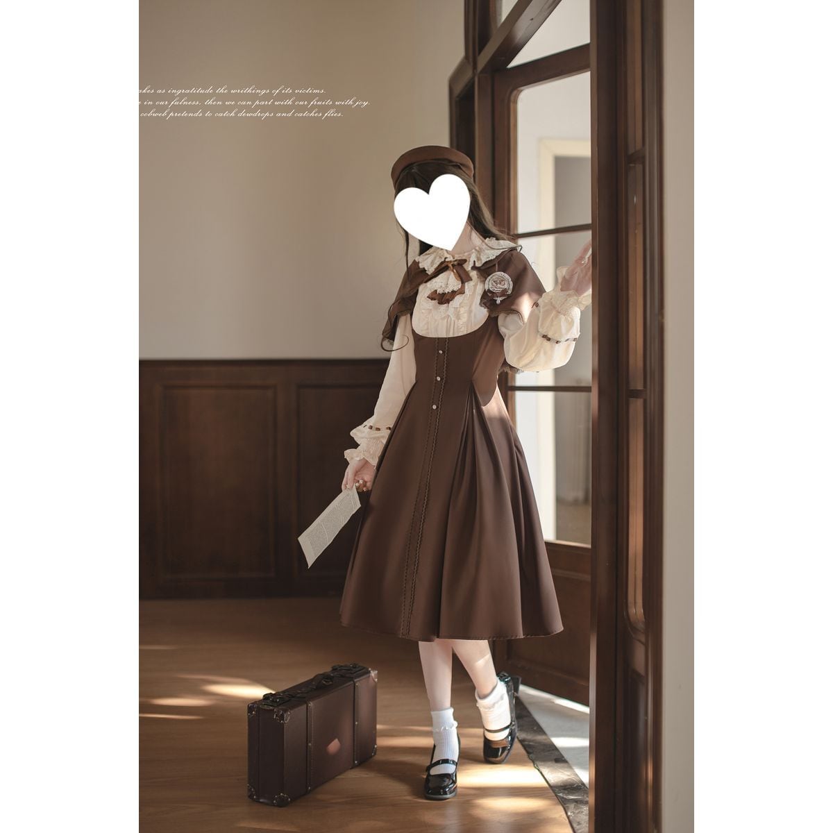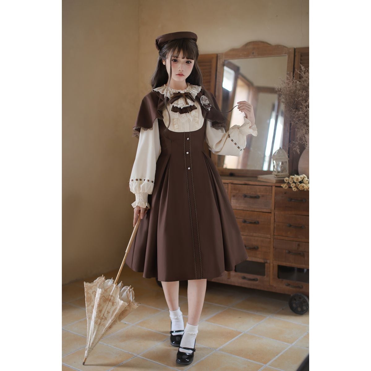 エレガントアカデミックケープワンピースセットアップ:ブラウンver.