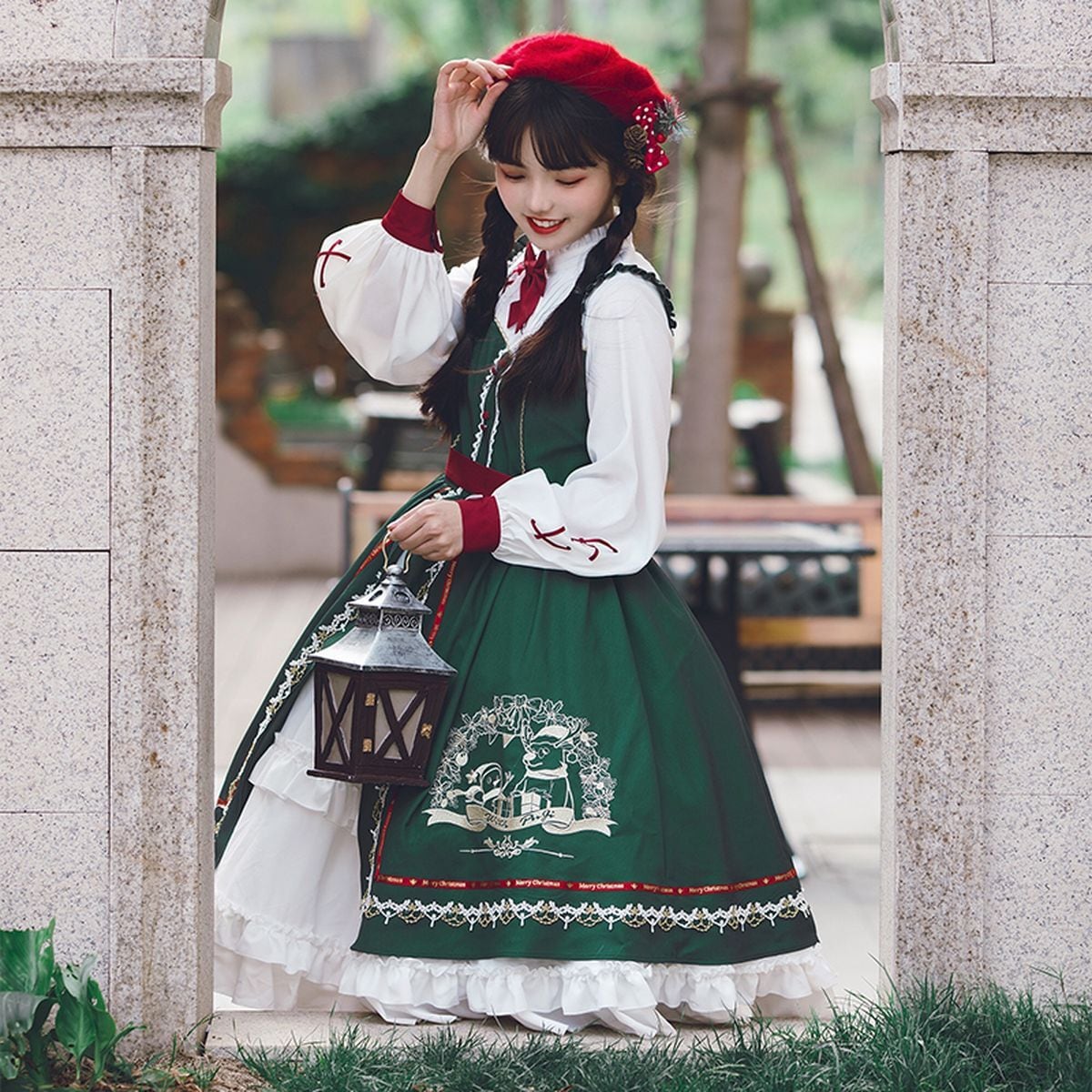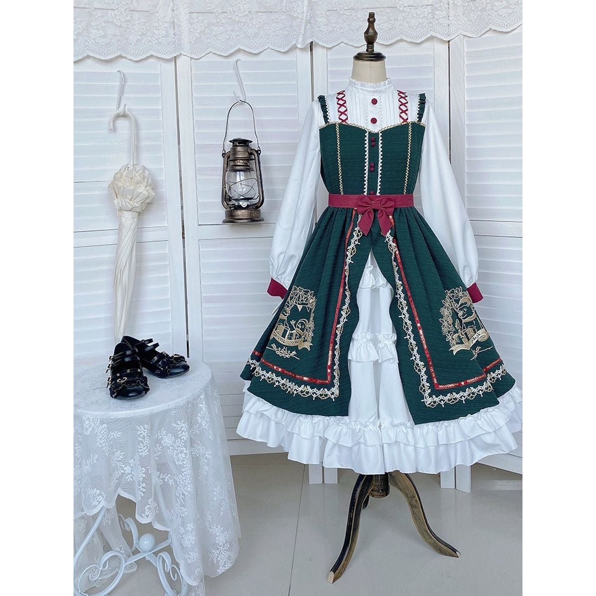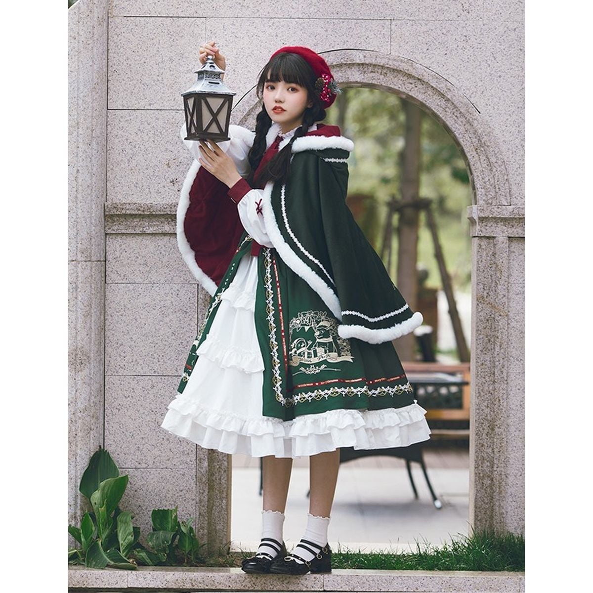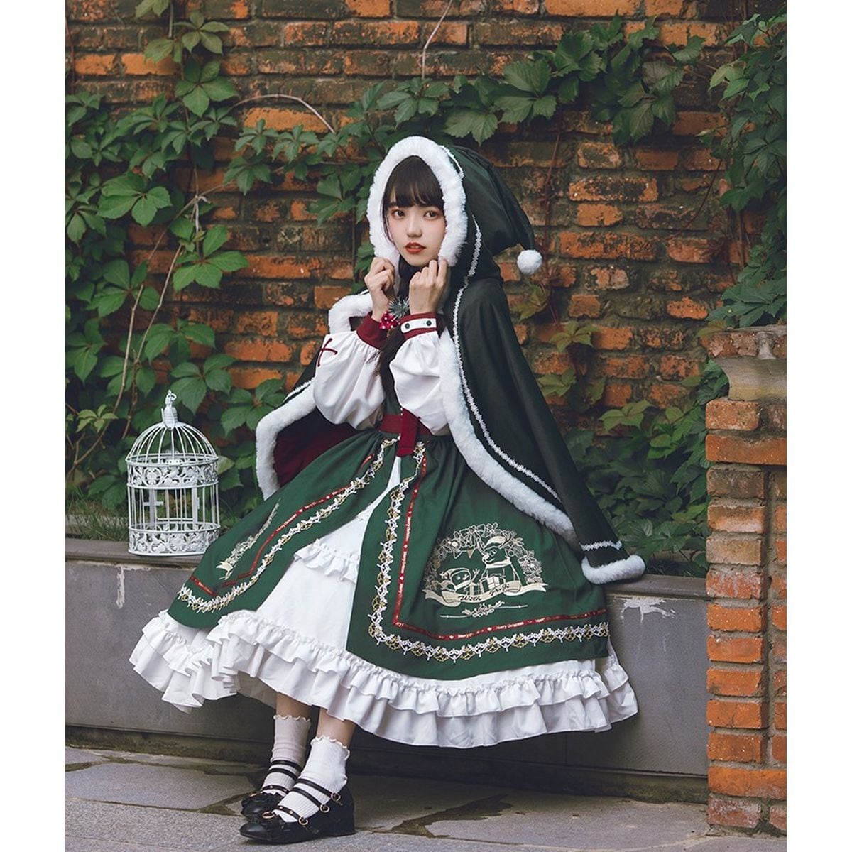グリーンファートリムケープ付きクリスマスセットアップ