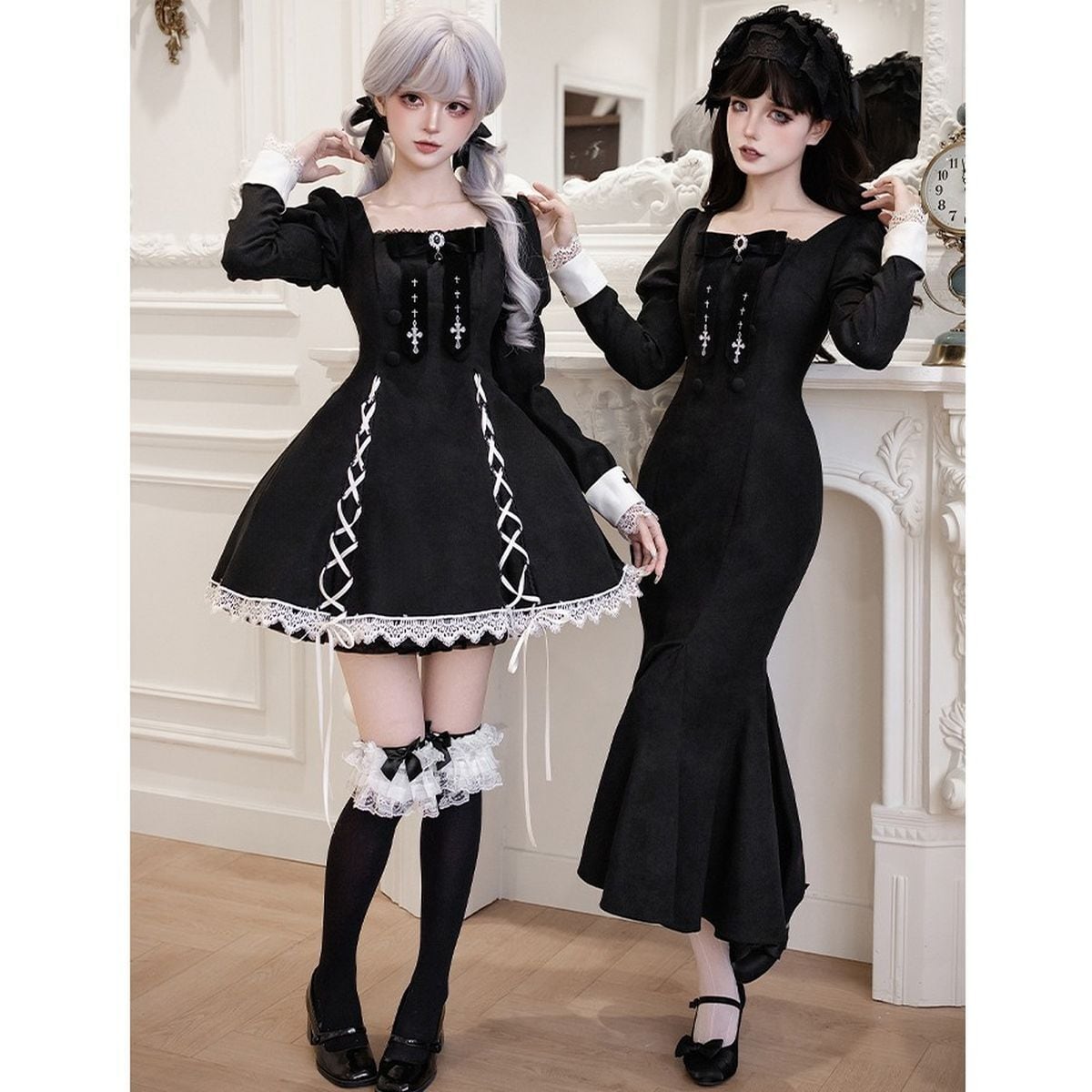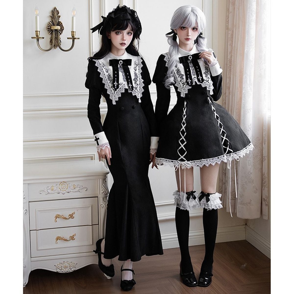 ゴシックレースアップツインズセットアップ:ショートワンピース