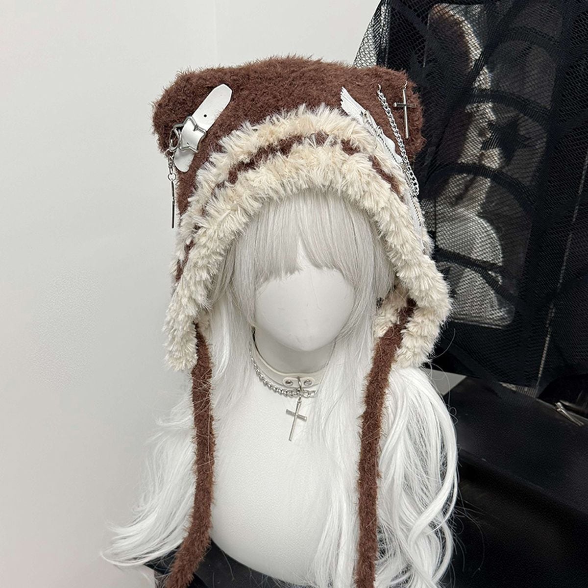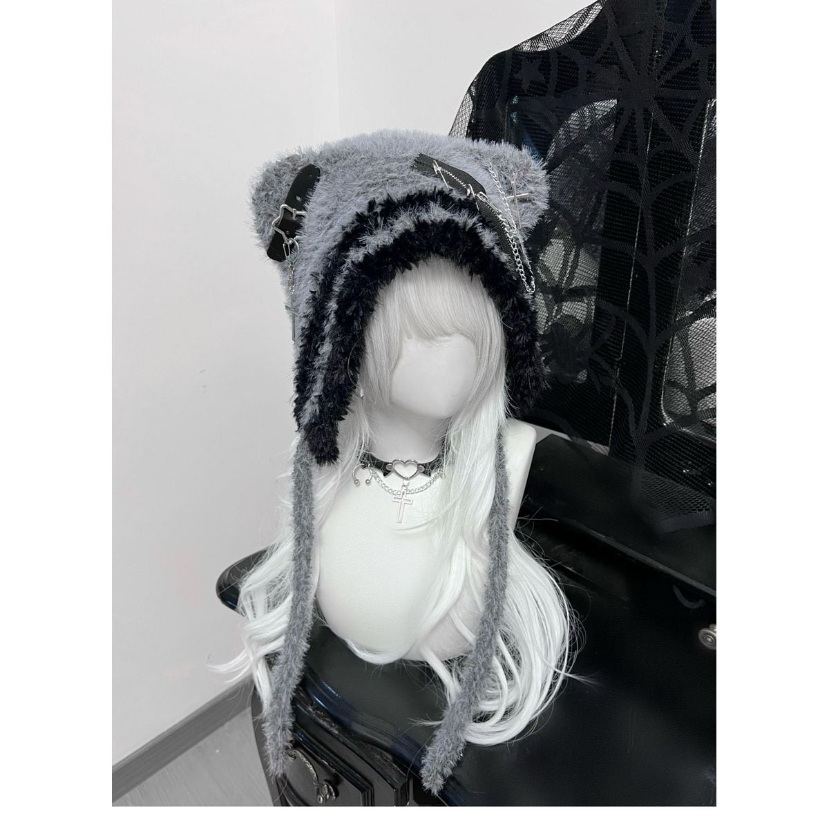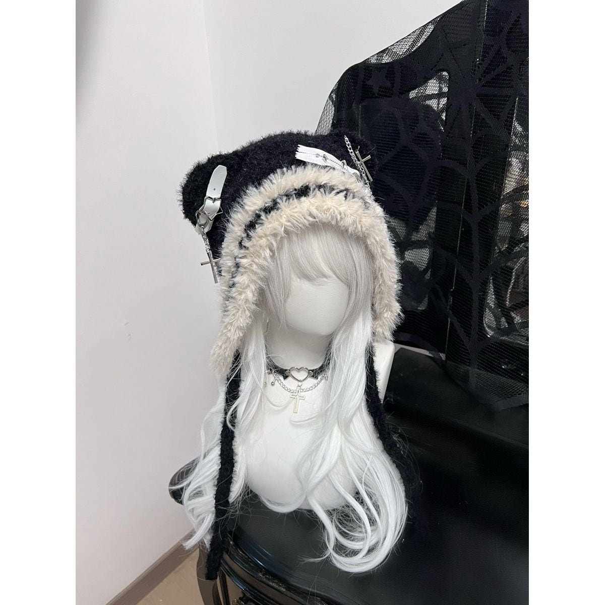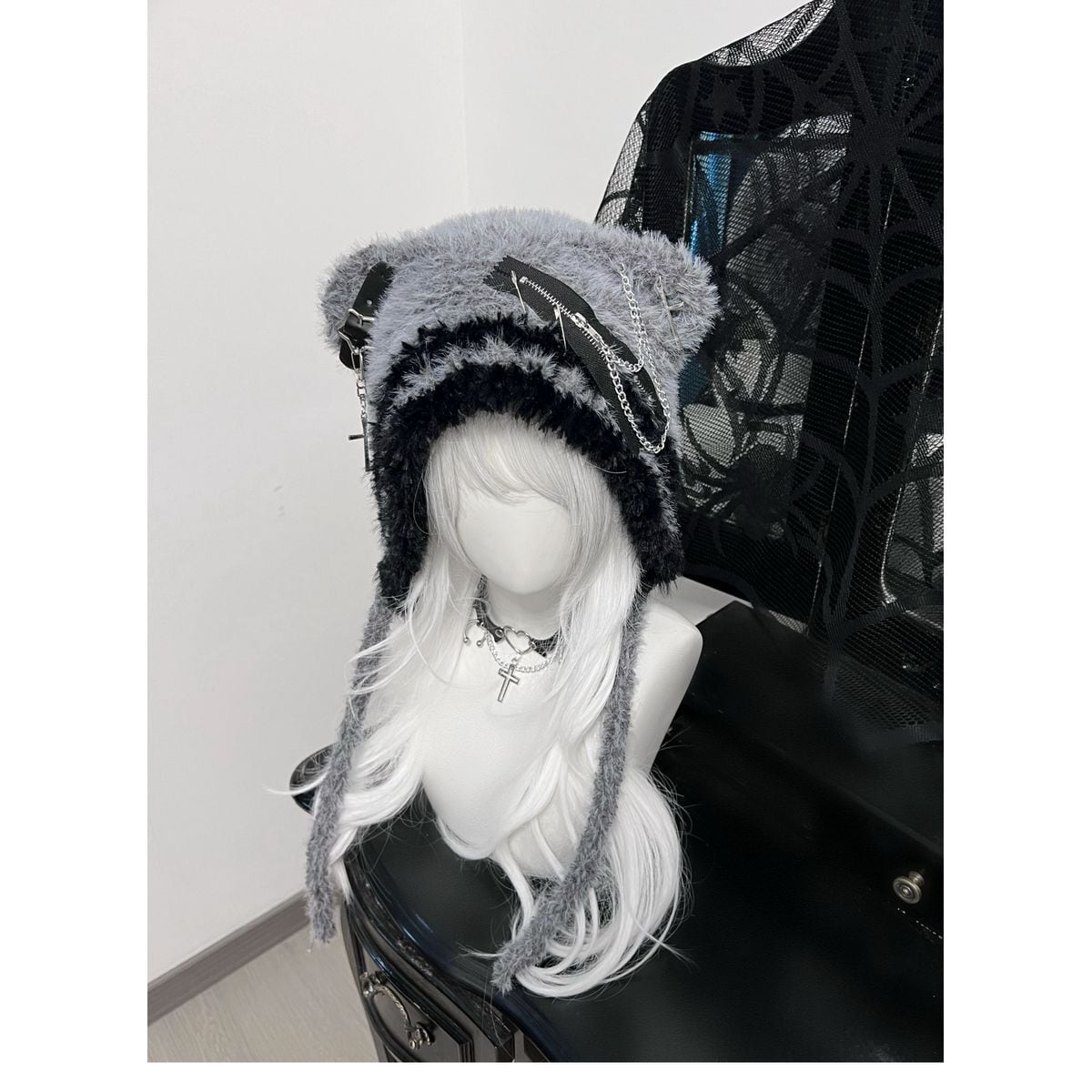 サブカル系クマ耳星ストライプニット帽