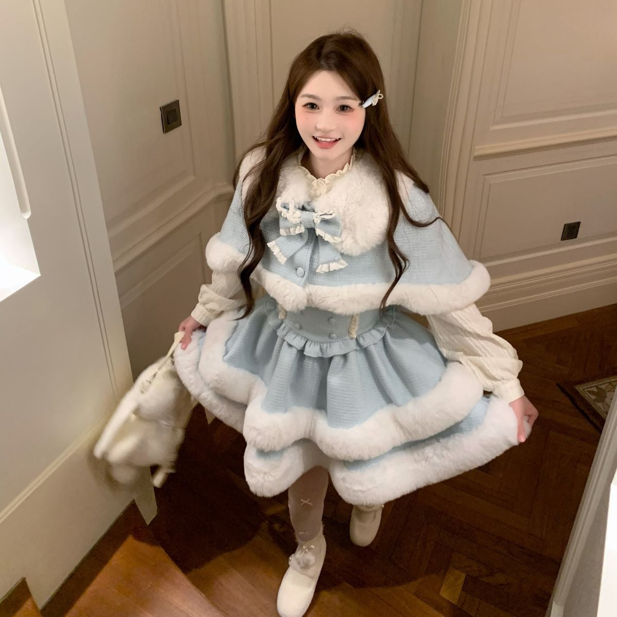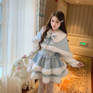 ファートリムケープ付きガーリージャンパースカートセットアップ:JSK+ケープ