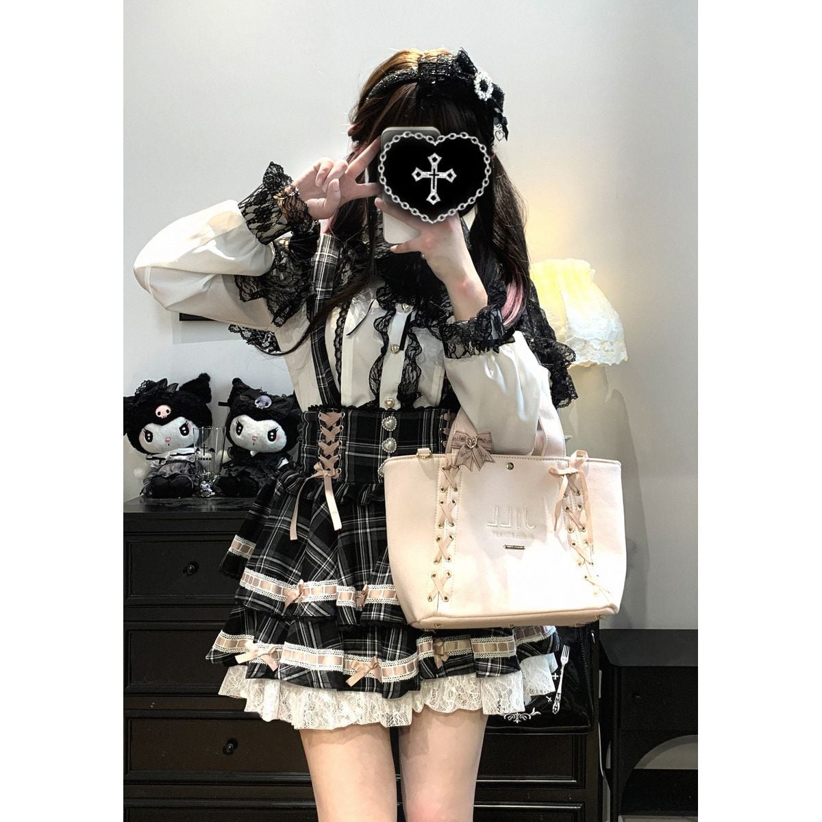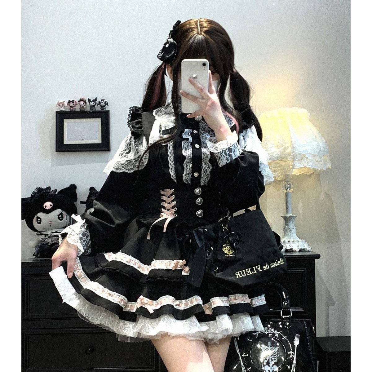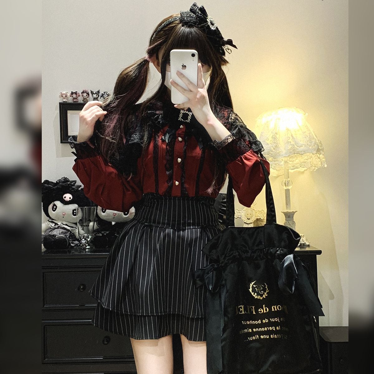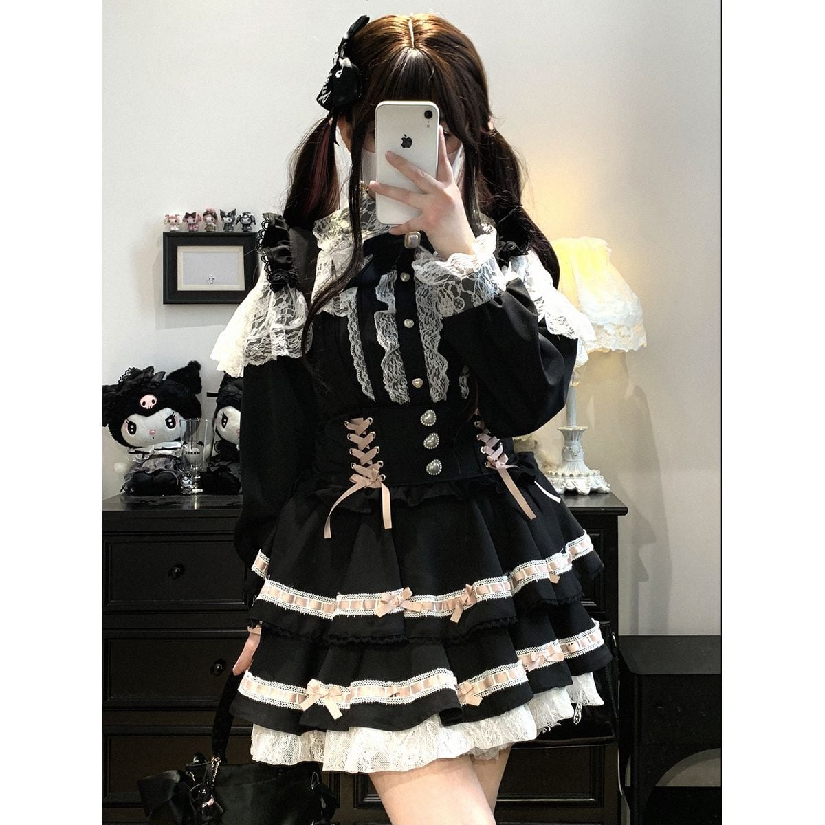 地雷系リボンレースブラウス