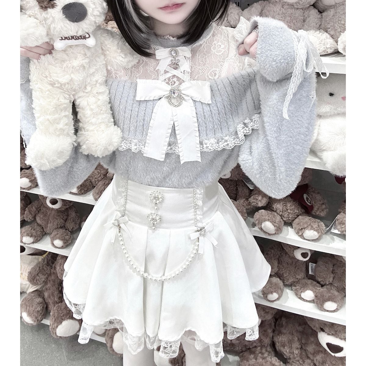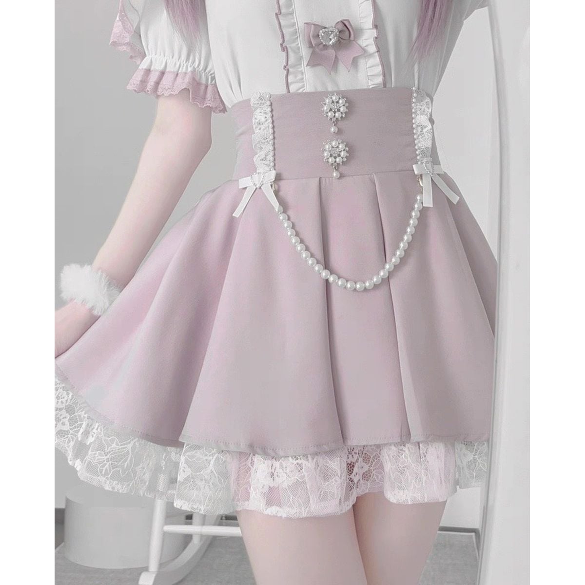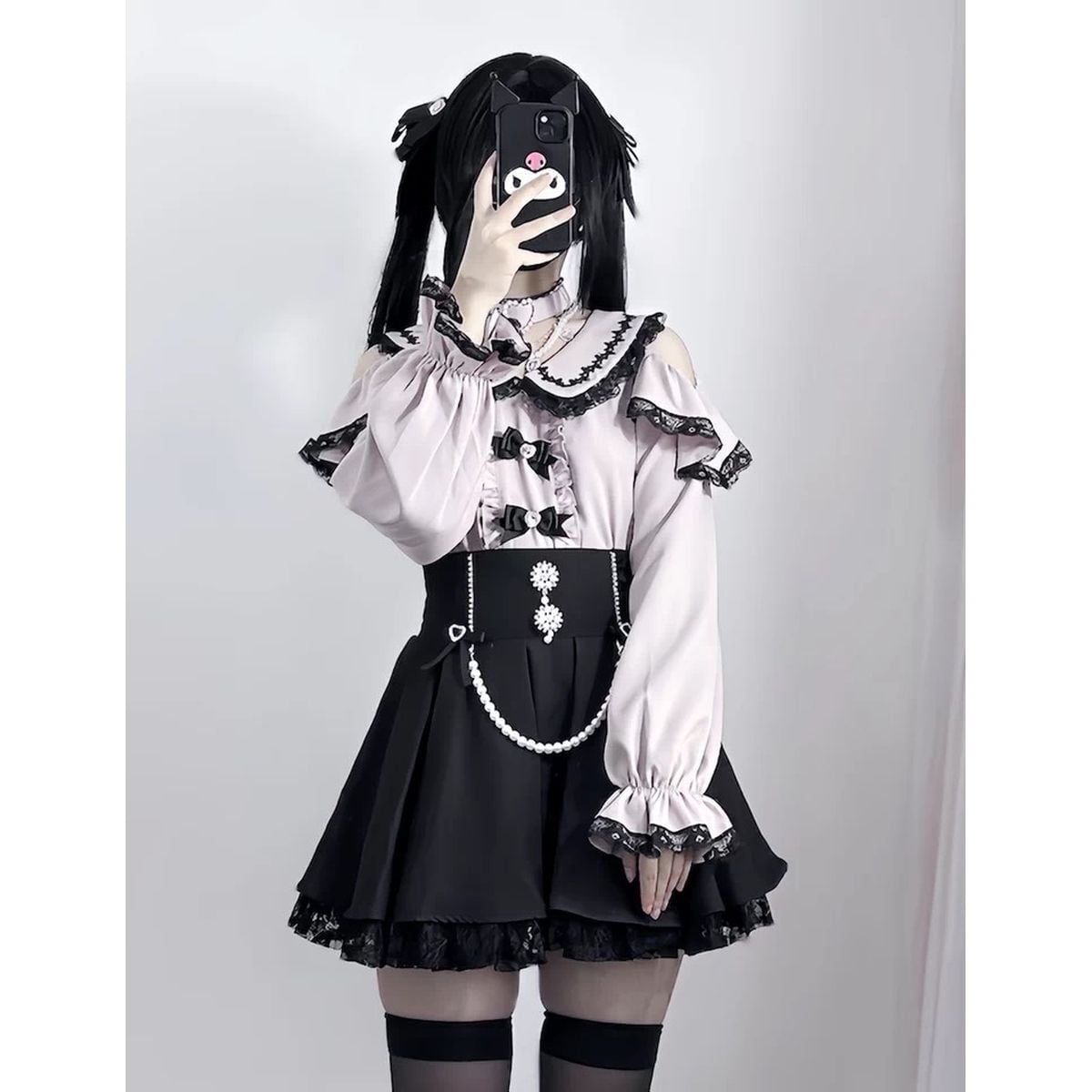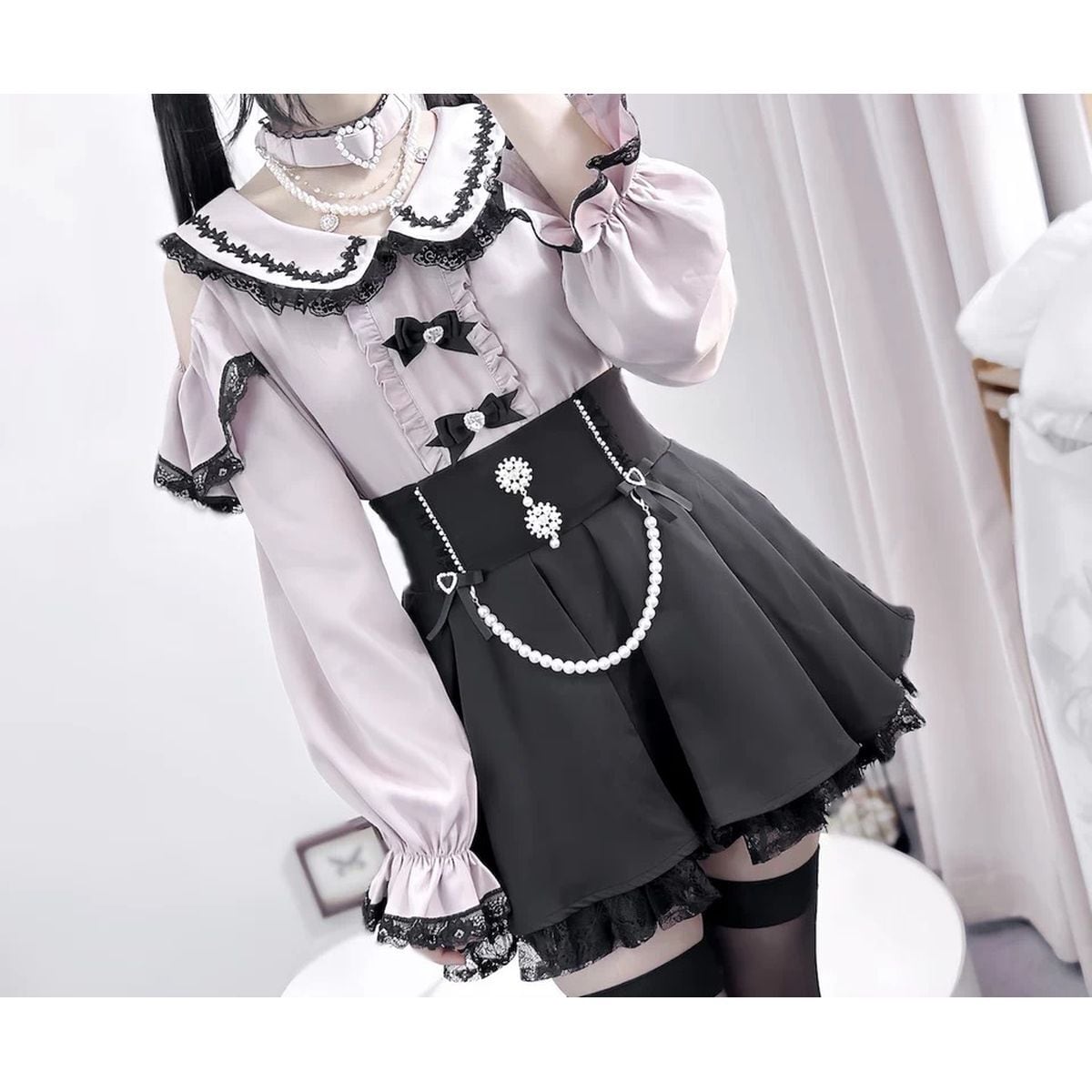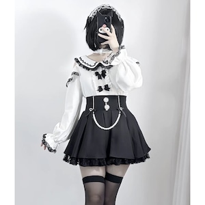 地雷系オープンショルダーパールチェーンスカートセットアップ:スカート