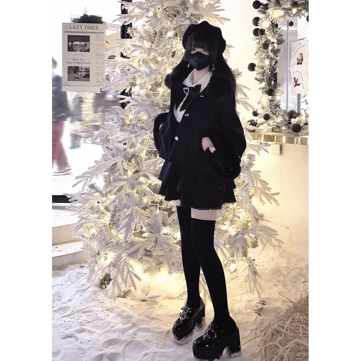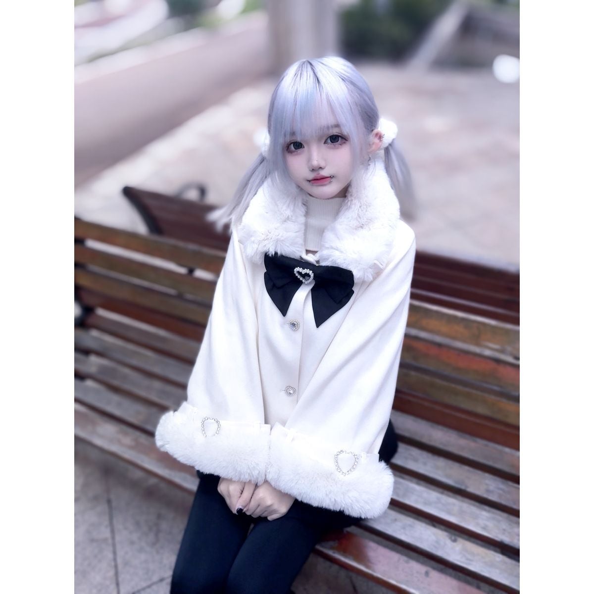 ふわもこレースの量産型リボンショートコート