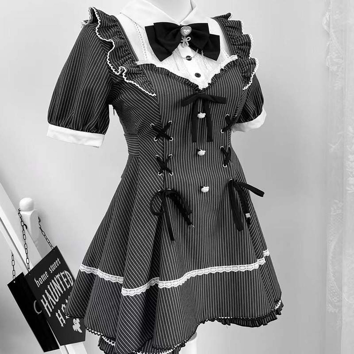 地雷系ブラックストライプショートパンツセットアップ