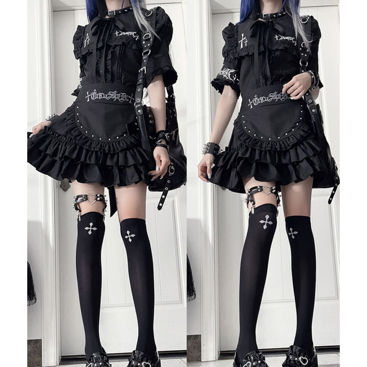 サブカル系フリルエプロン付きメイド服セット:トップス