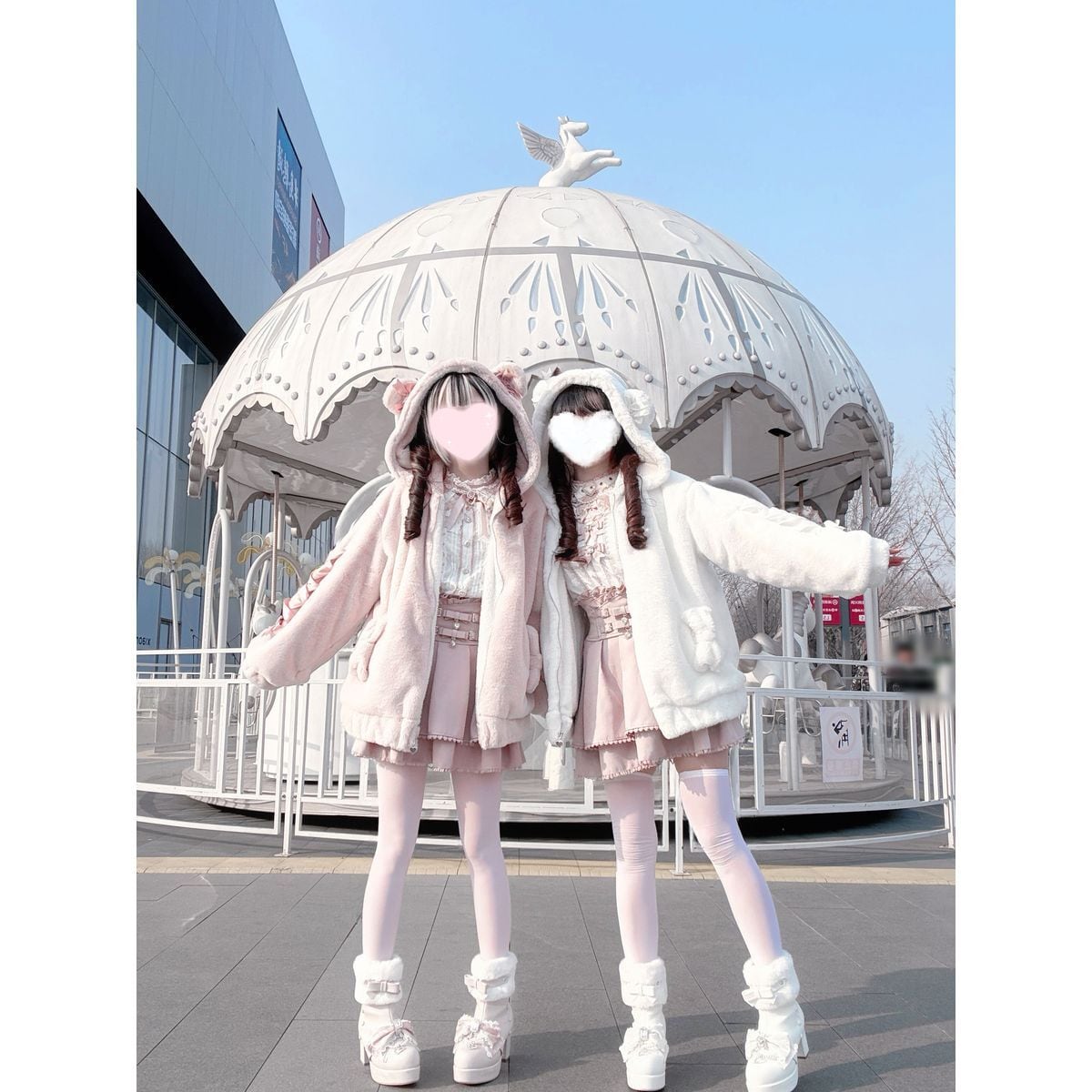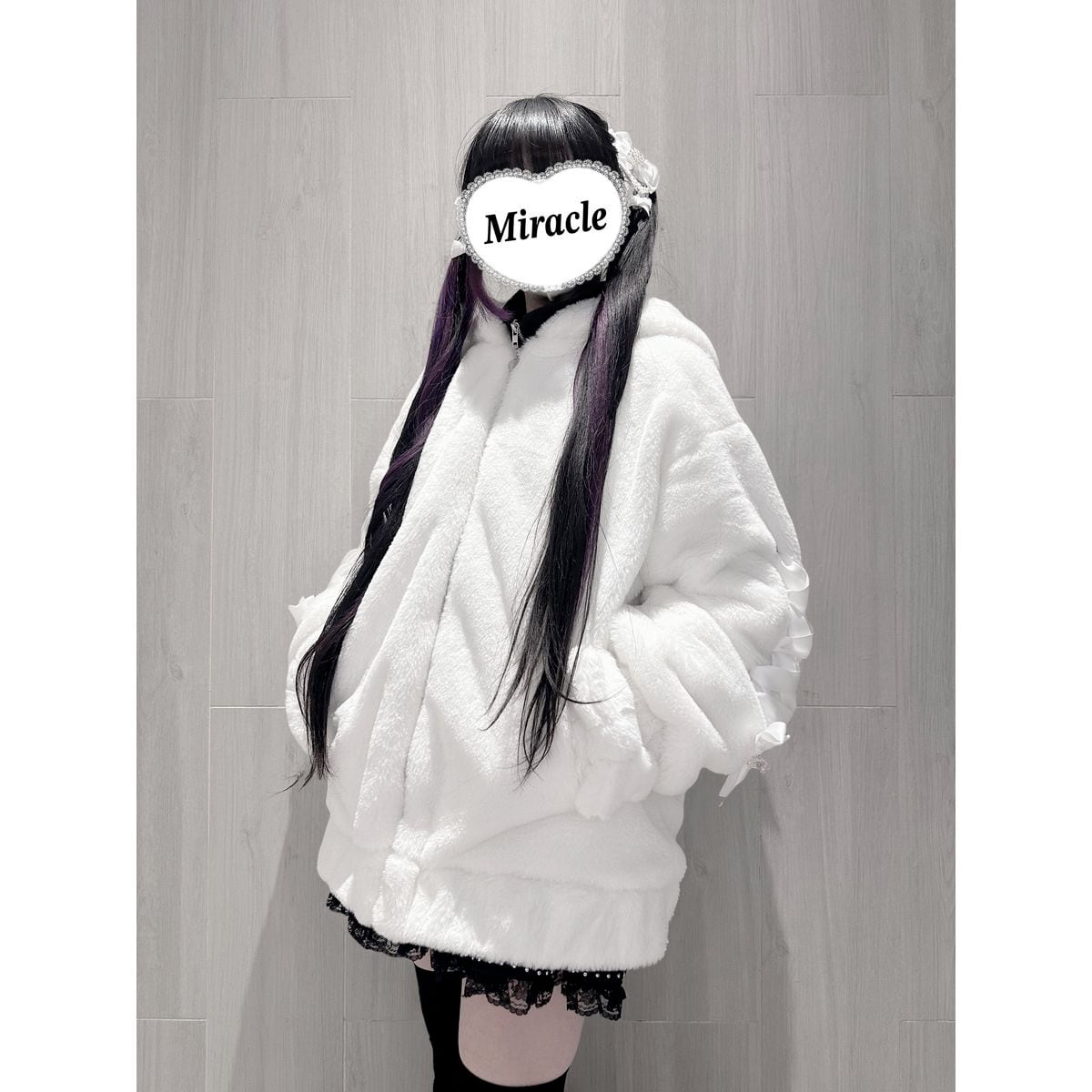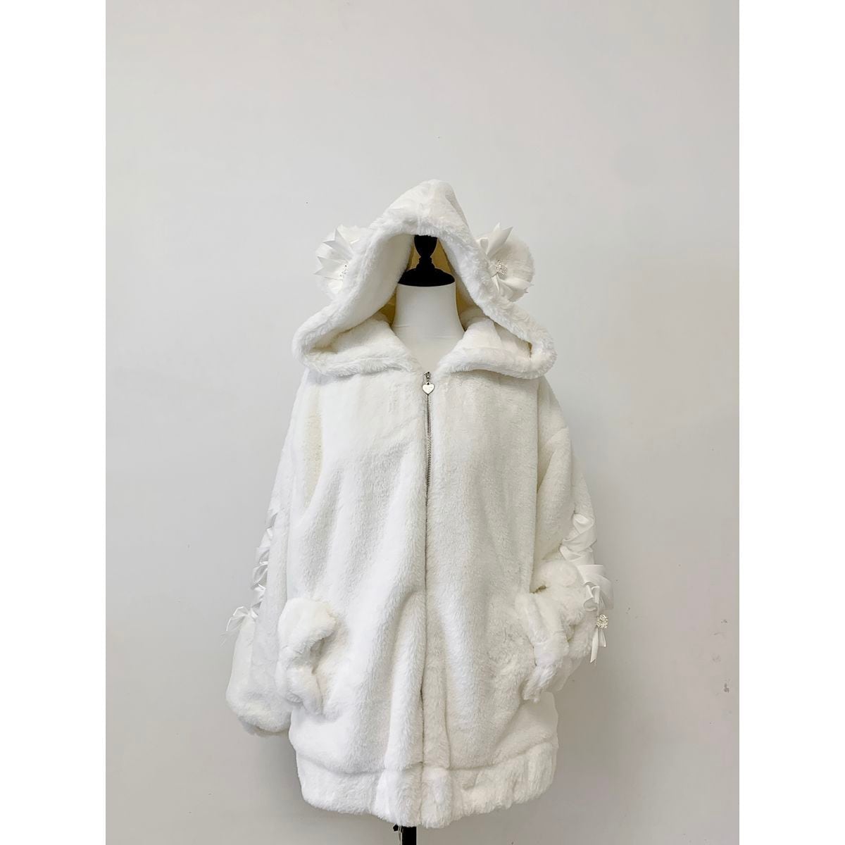 くま耳もこもこレースアップリボンコート