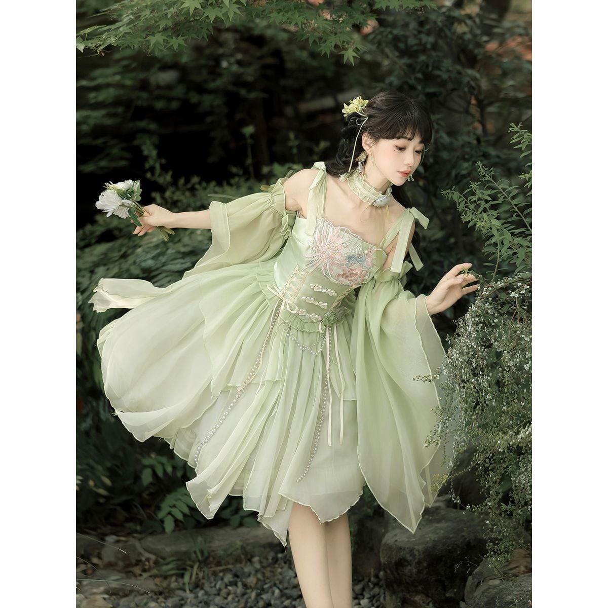 チャイナ風フリル姫袖ドレスセット