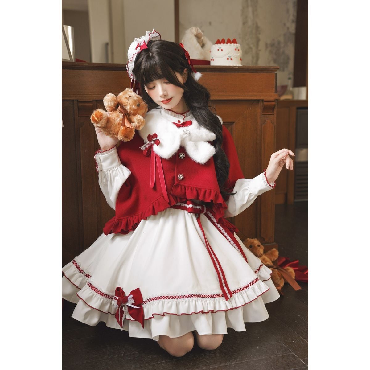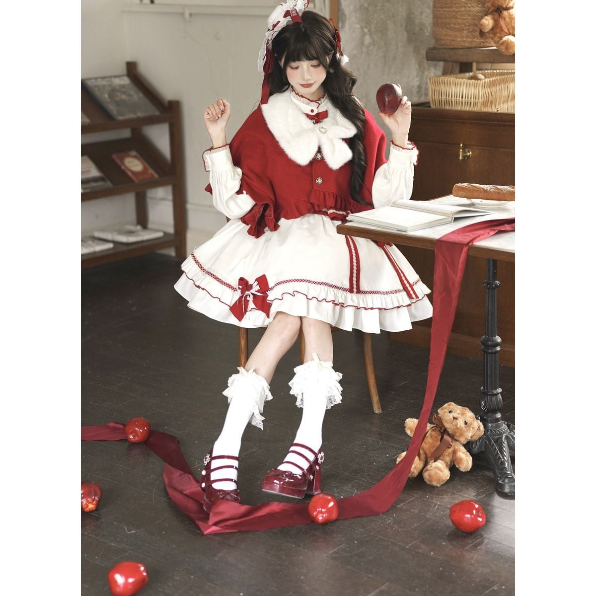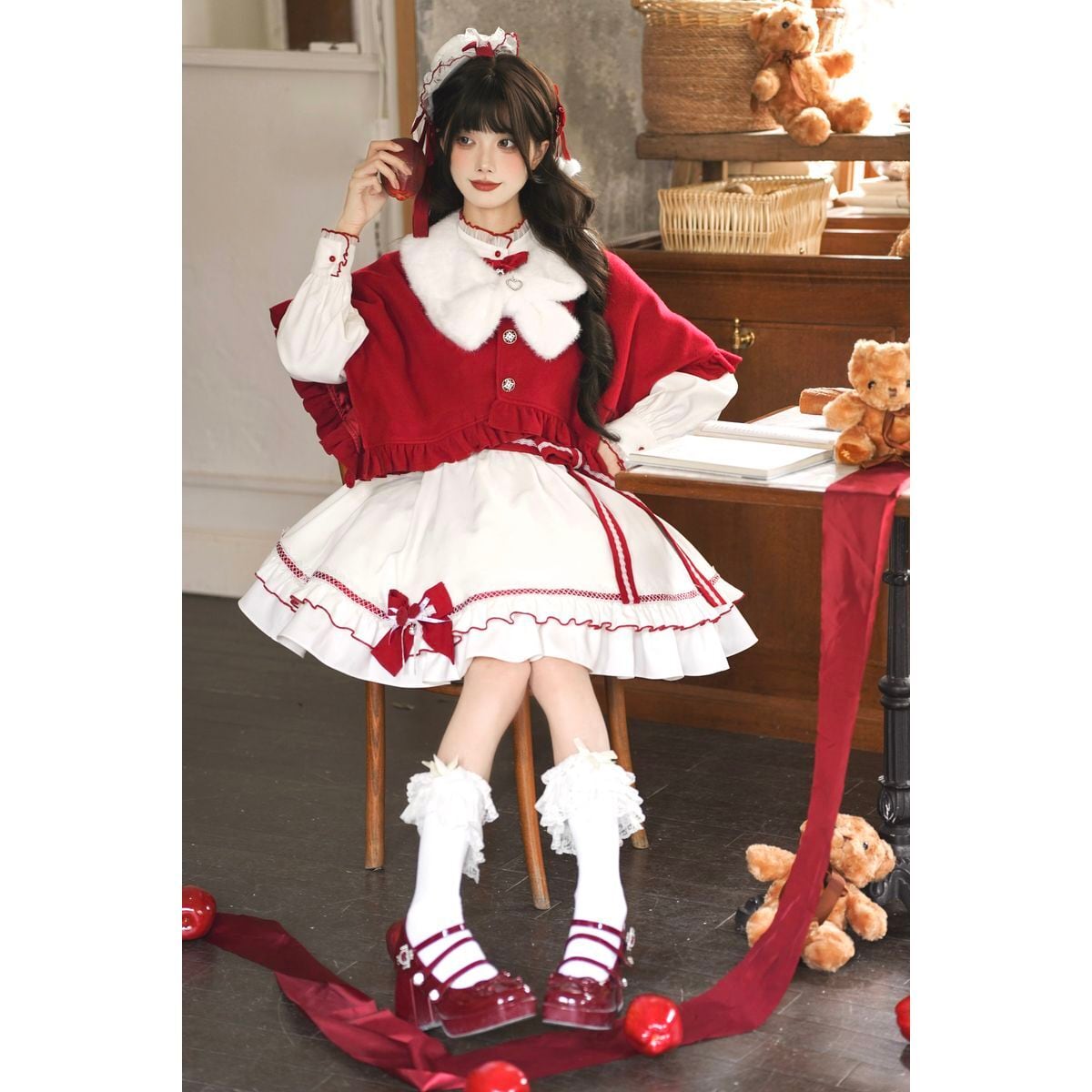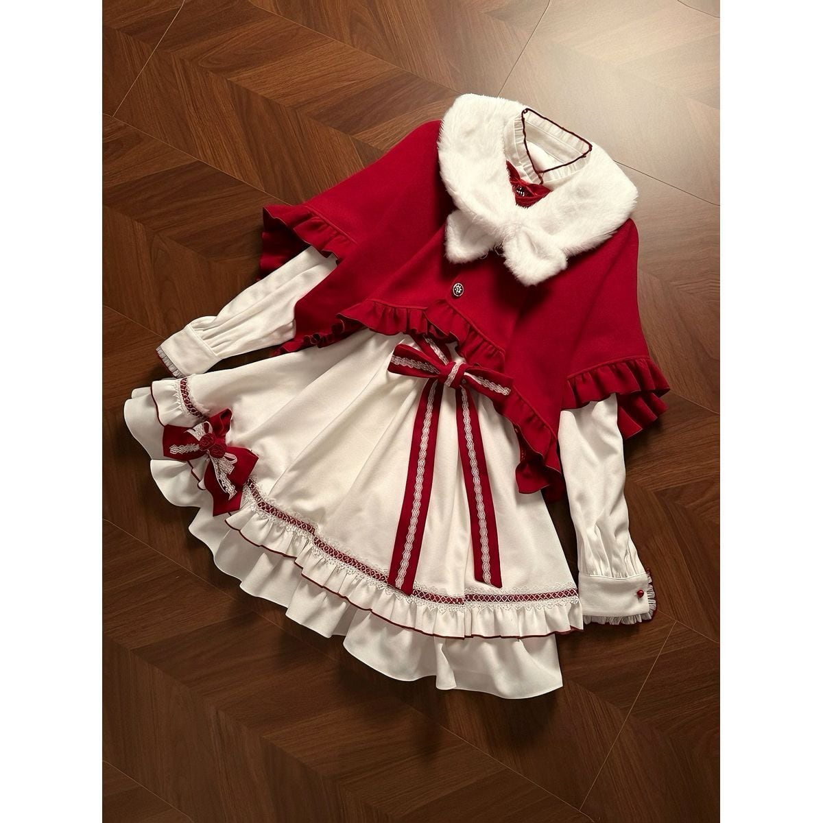ガーリーケープレッドバイカラーワンピース:ワンピース