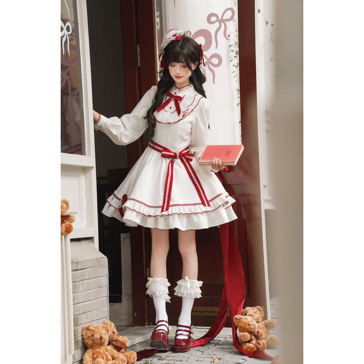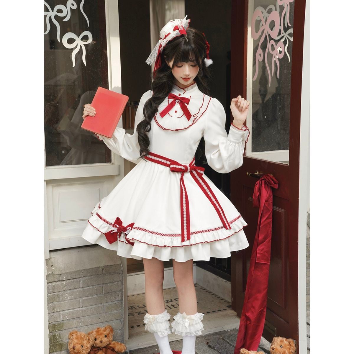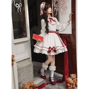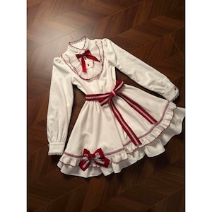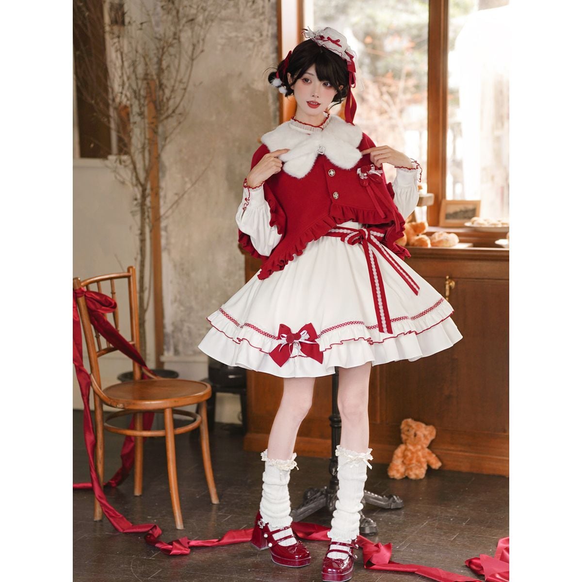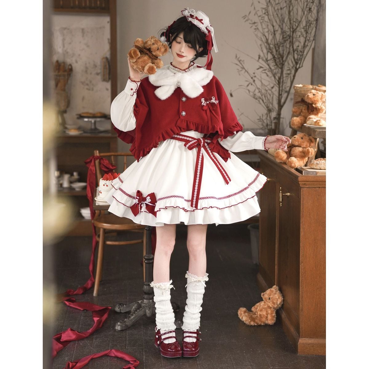 ガーリーケープレッドバイカラーワンピース:ワンピース