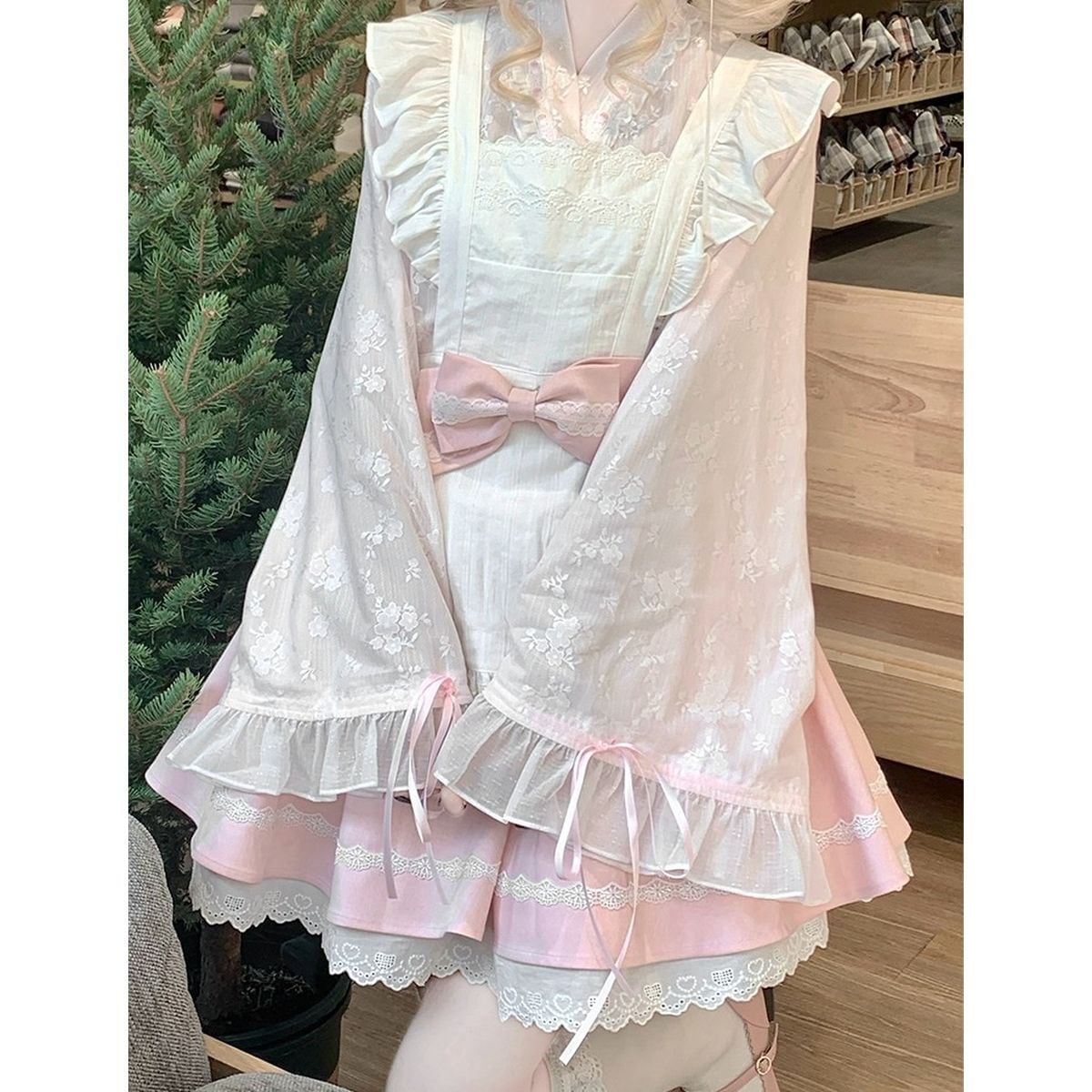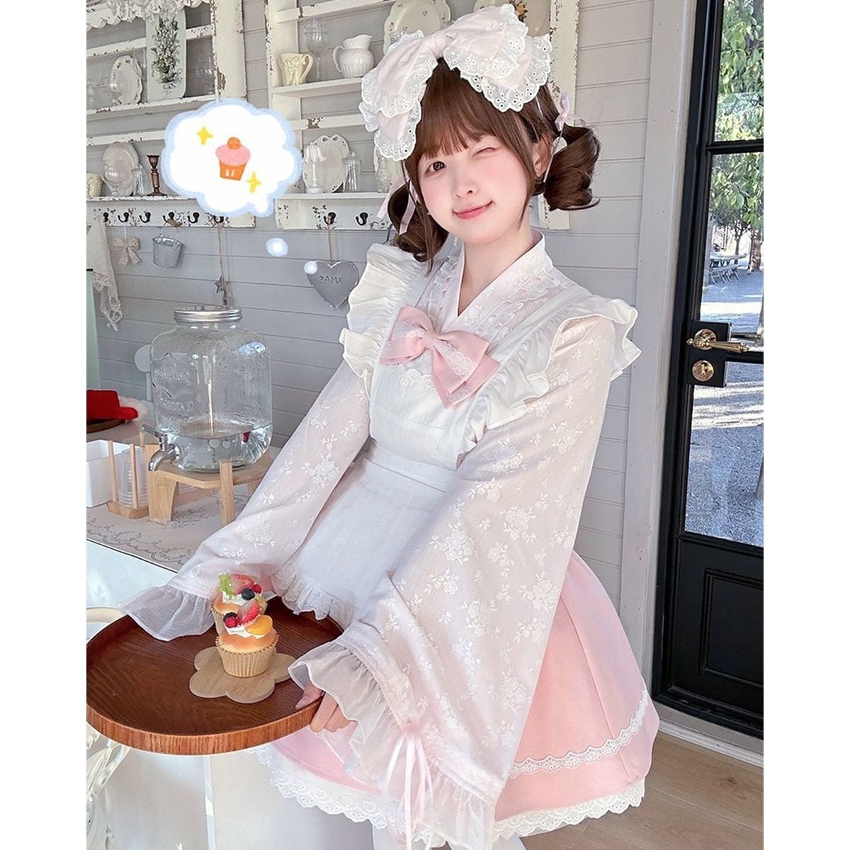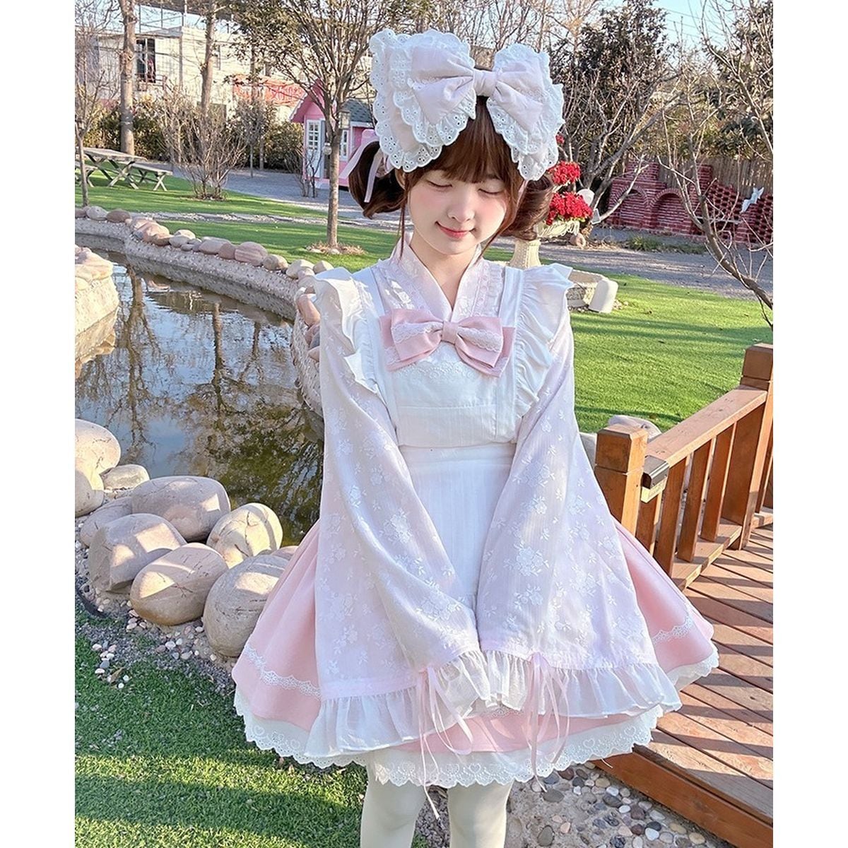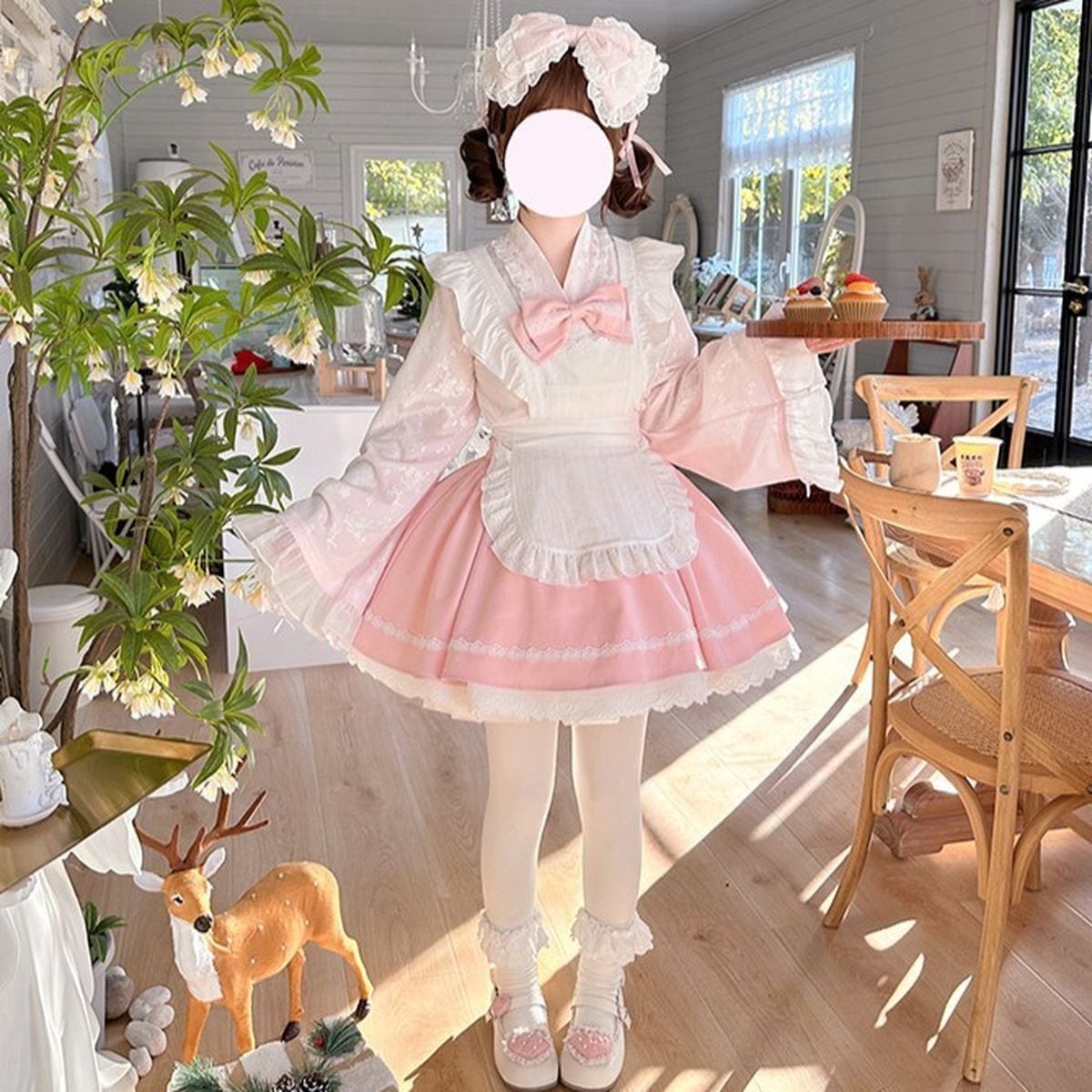 和風ピンクフリルメイド服セット