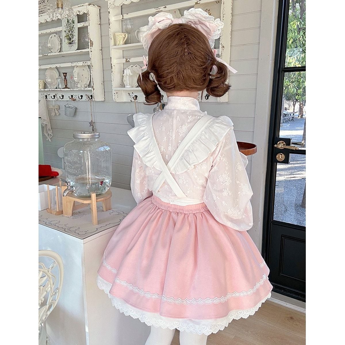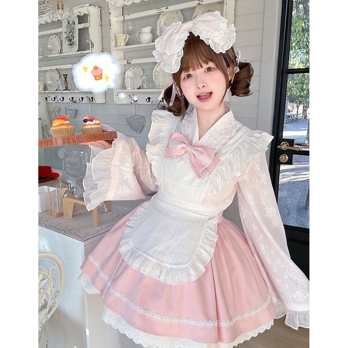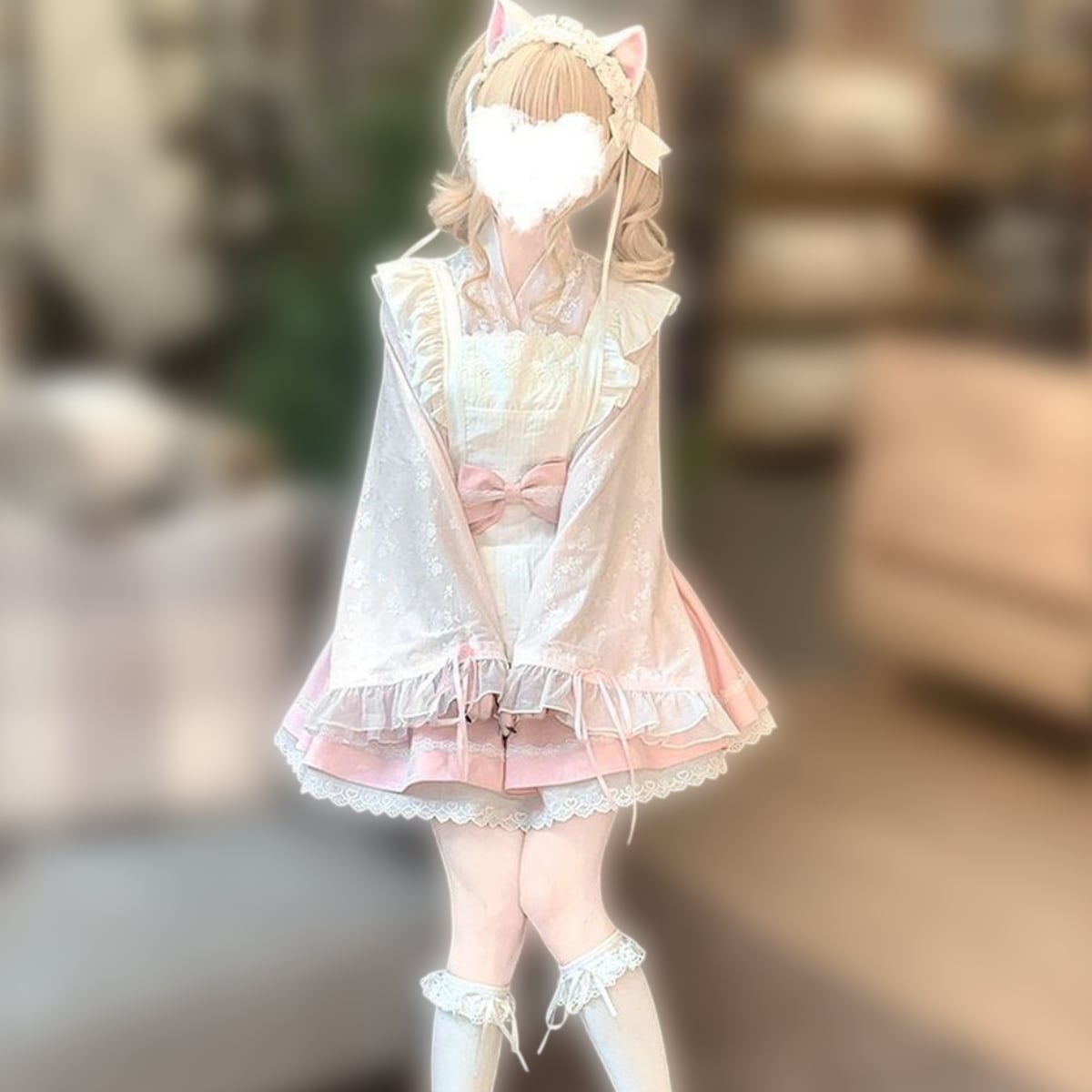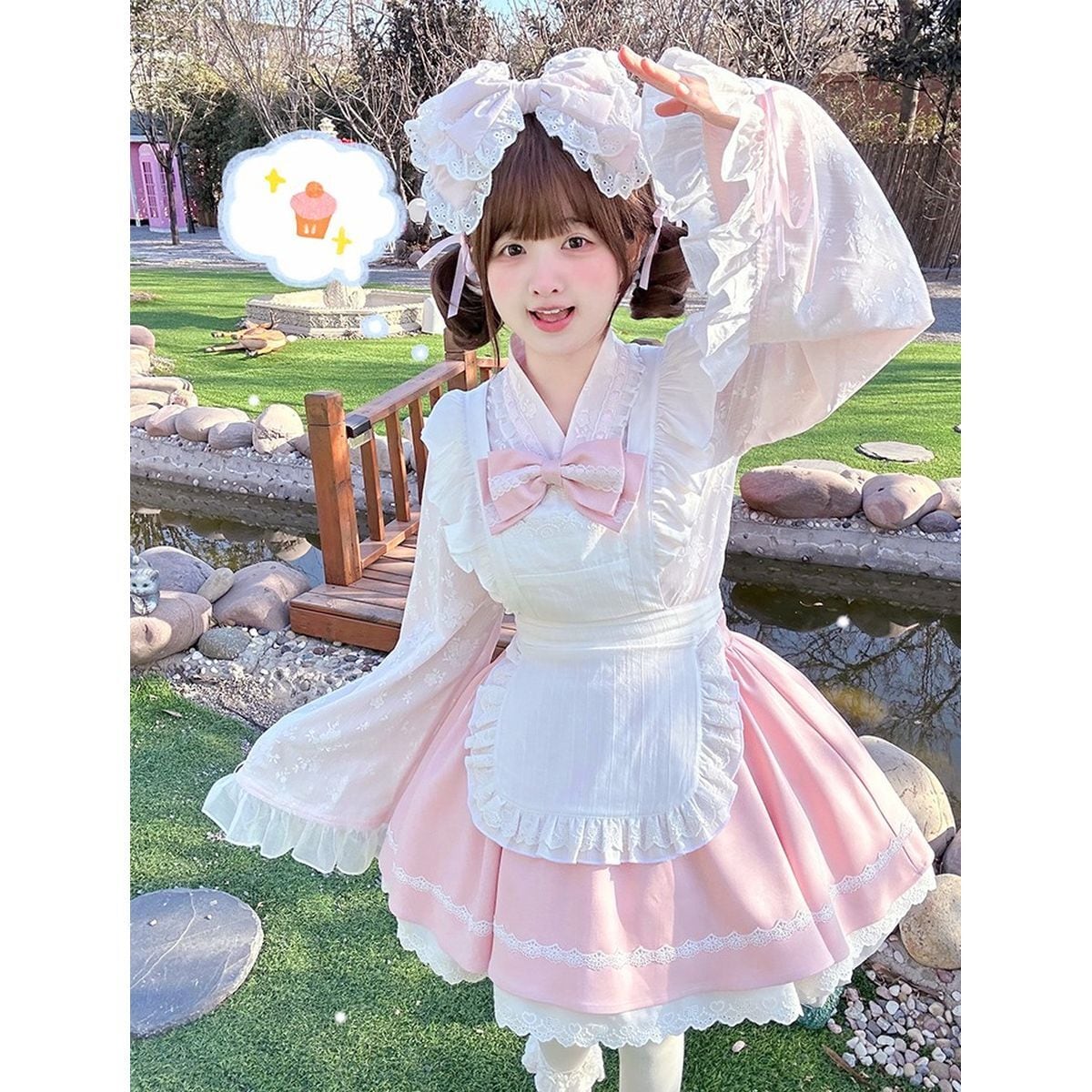 和風ピンクフリルメイド服セット