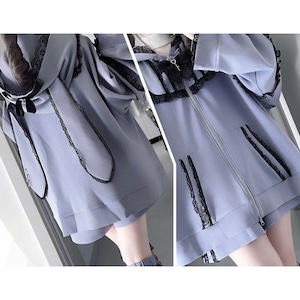 サブカル系うさ耳オーバーサイズパーカー:ジャケット