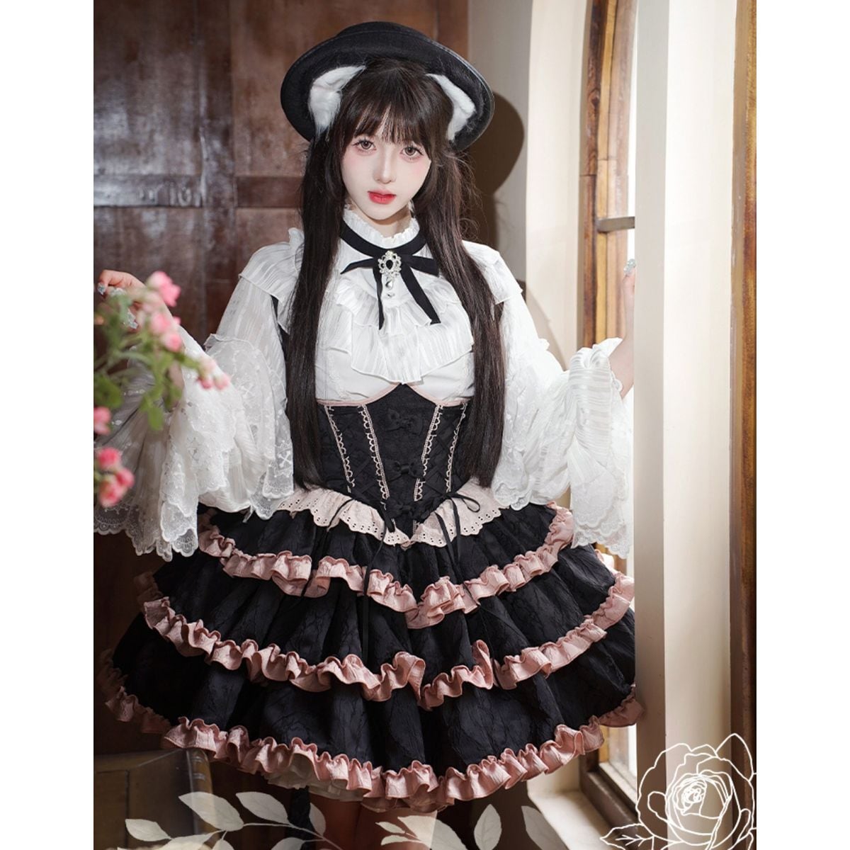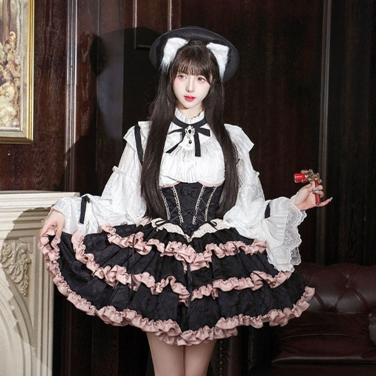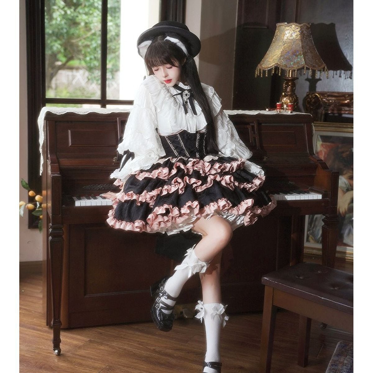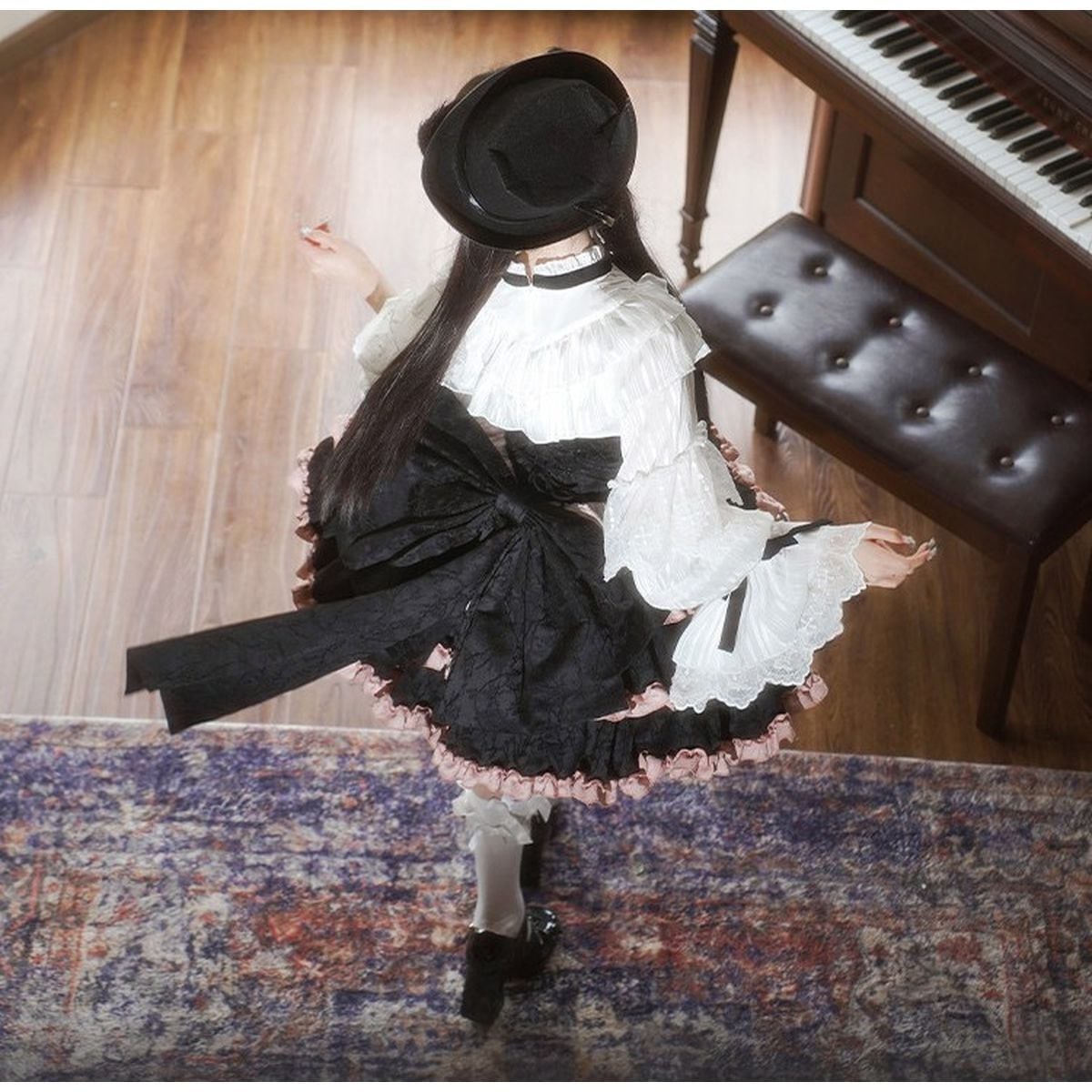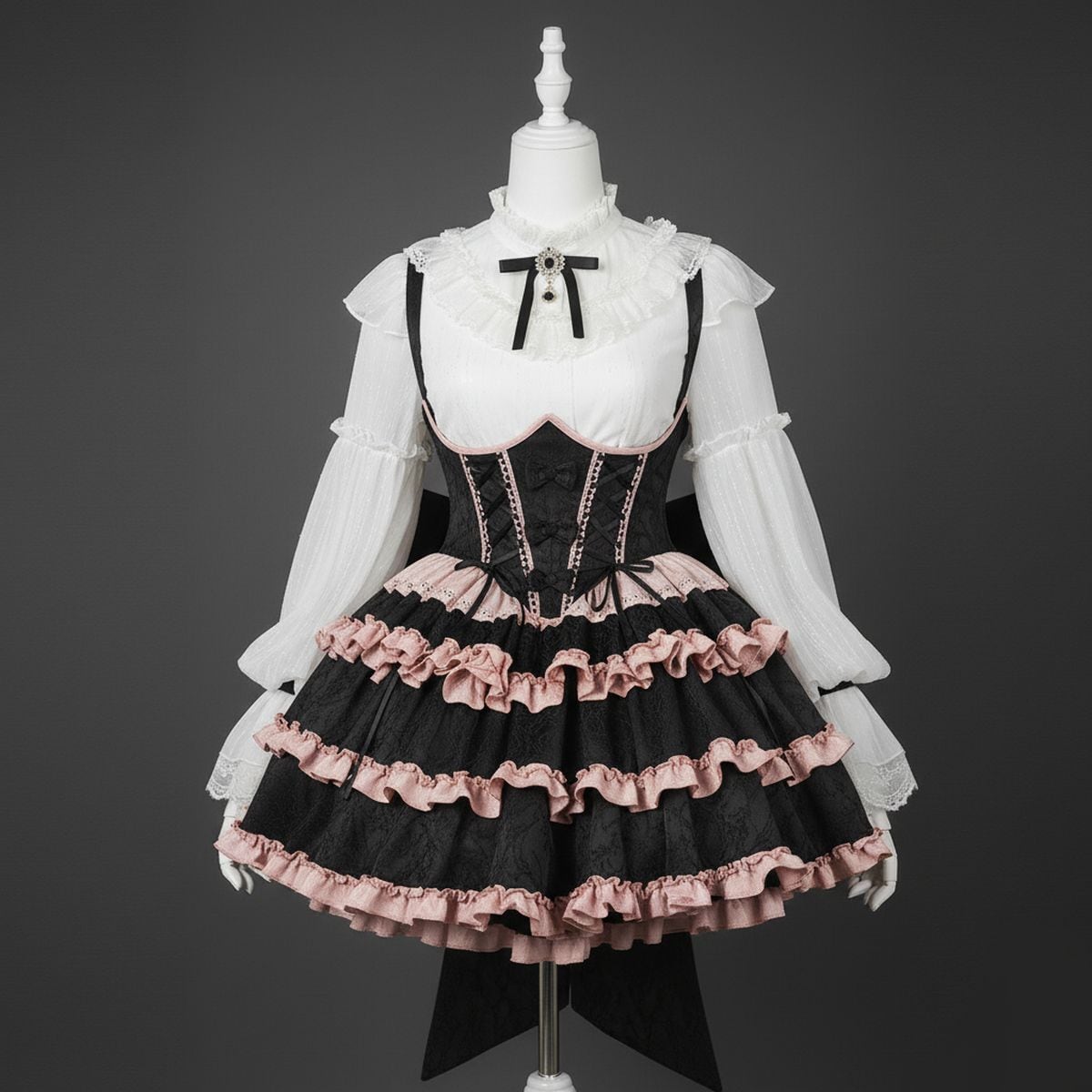 バックリボンフリルロリィタティアードジャンパースカート