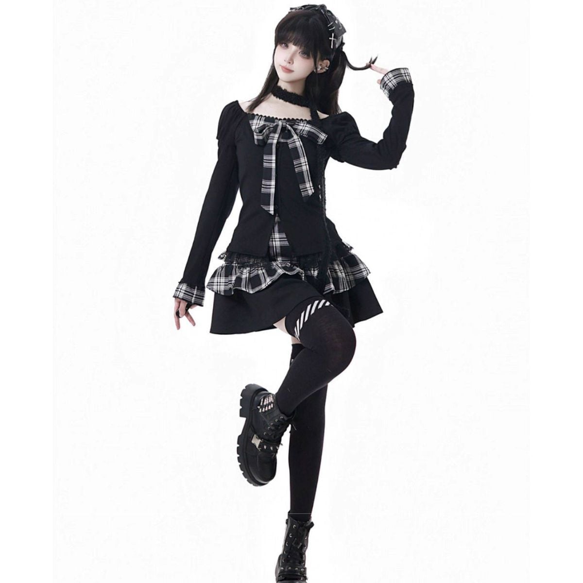チェックモノトーンセットアップ:トップス
