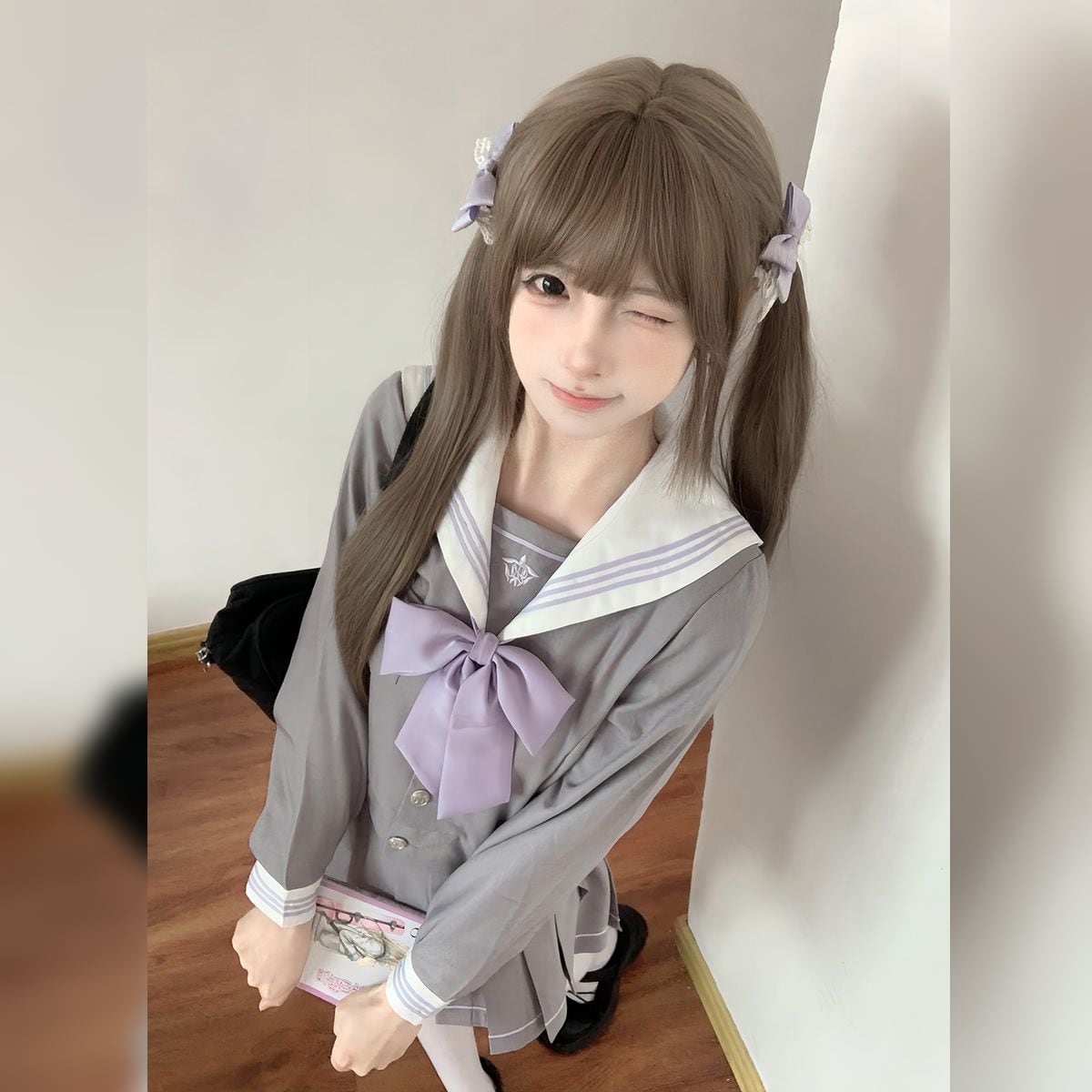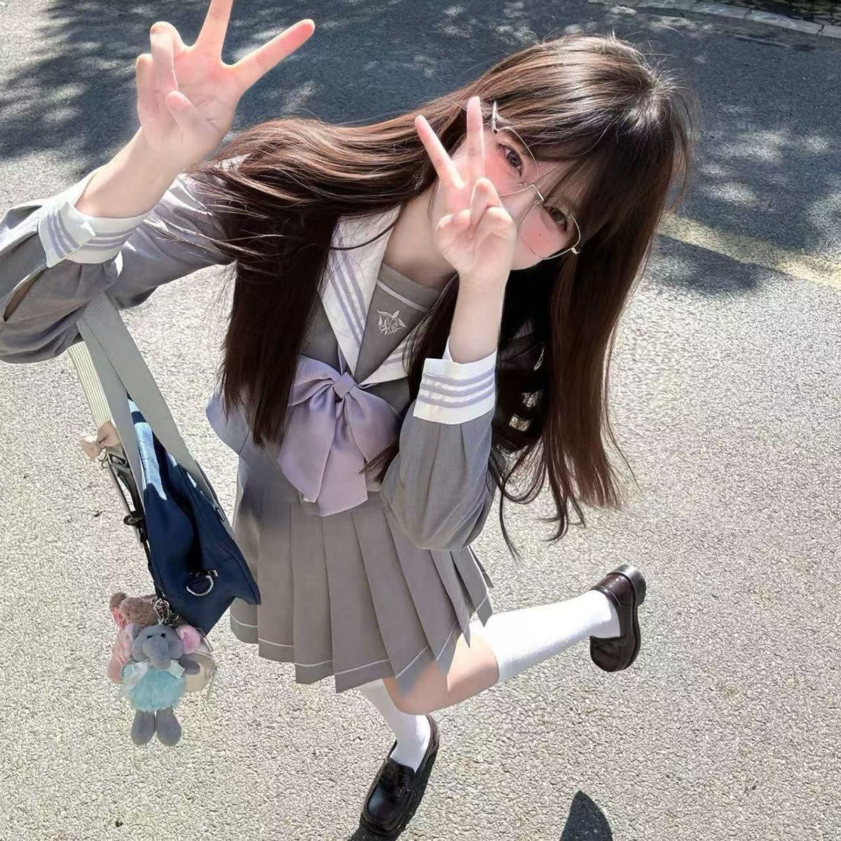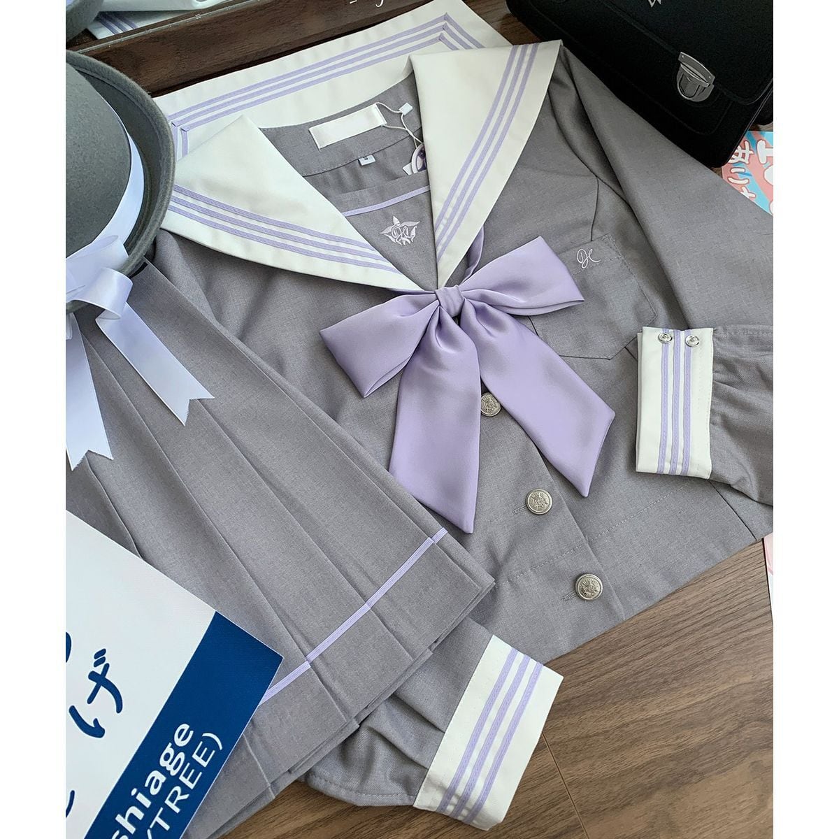 パープル×グレーセーラー服セットアップ