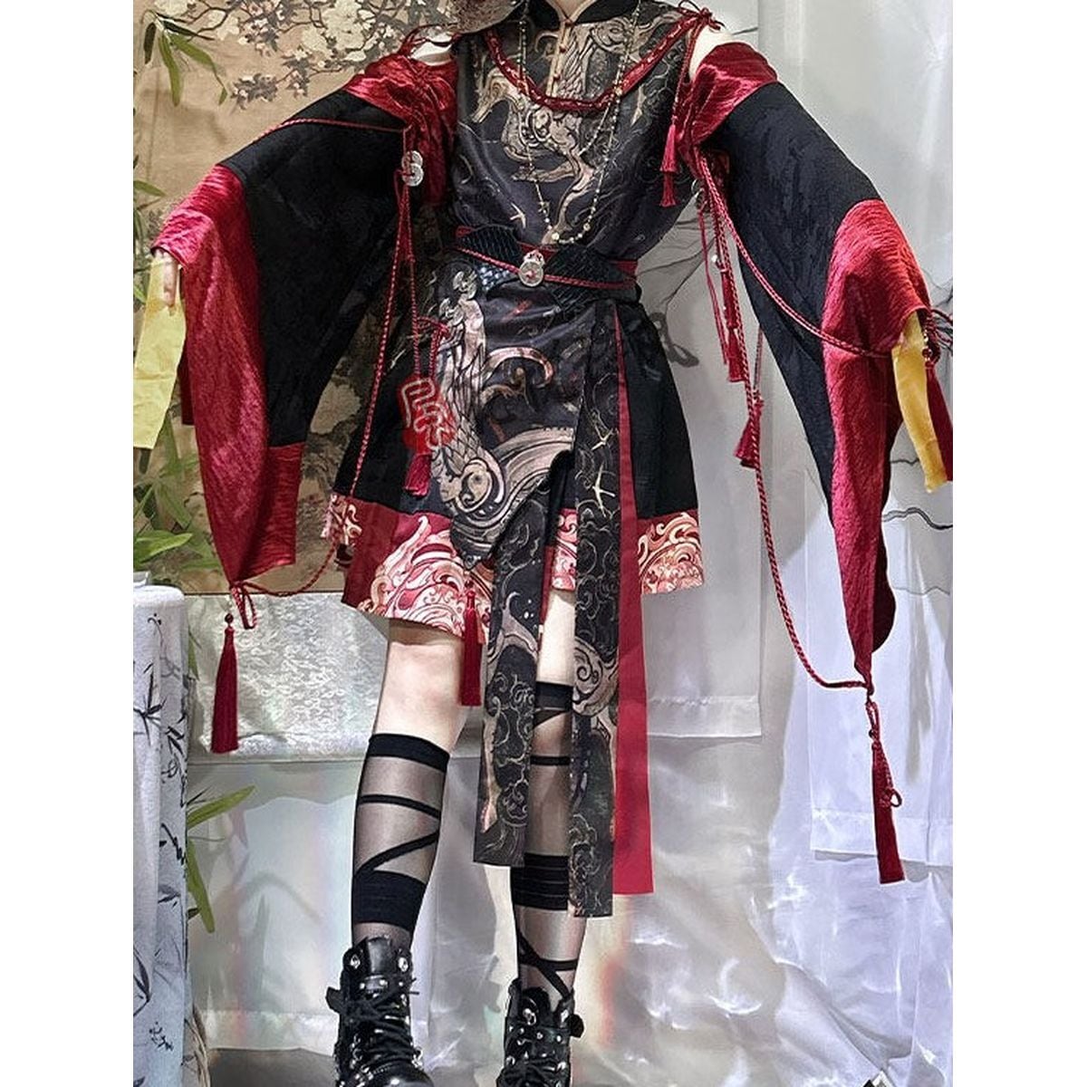 チャイナ風ファンタジー紅竜の姫袖セットアップ
