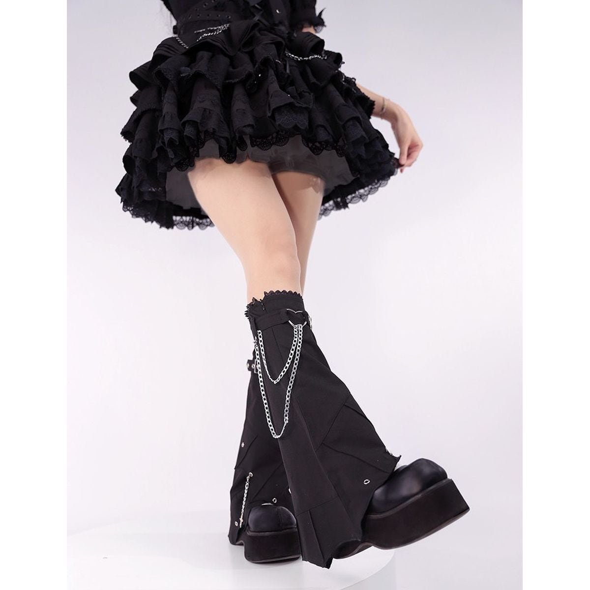 地雷系ハートチェーンフリルレースレッグウォーマー