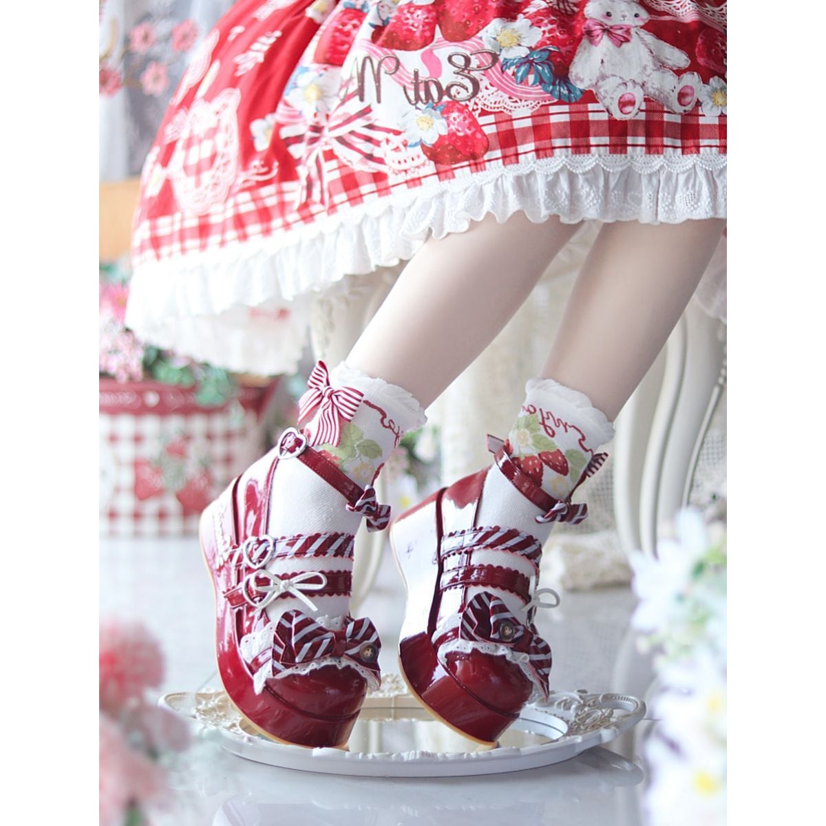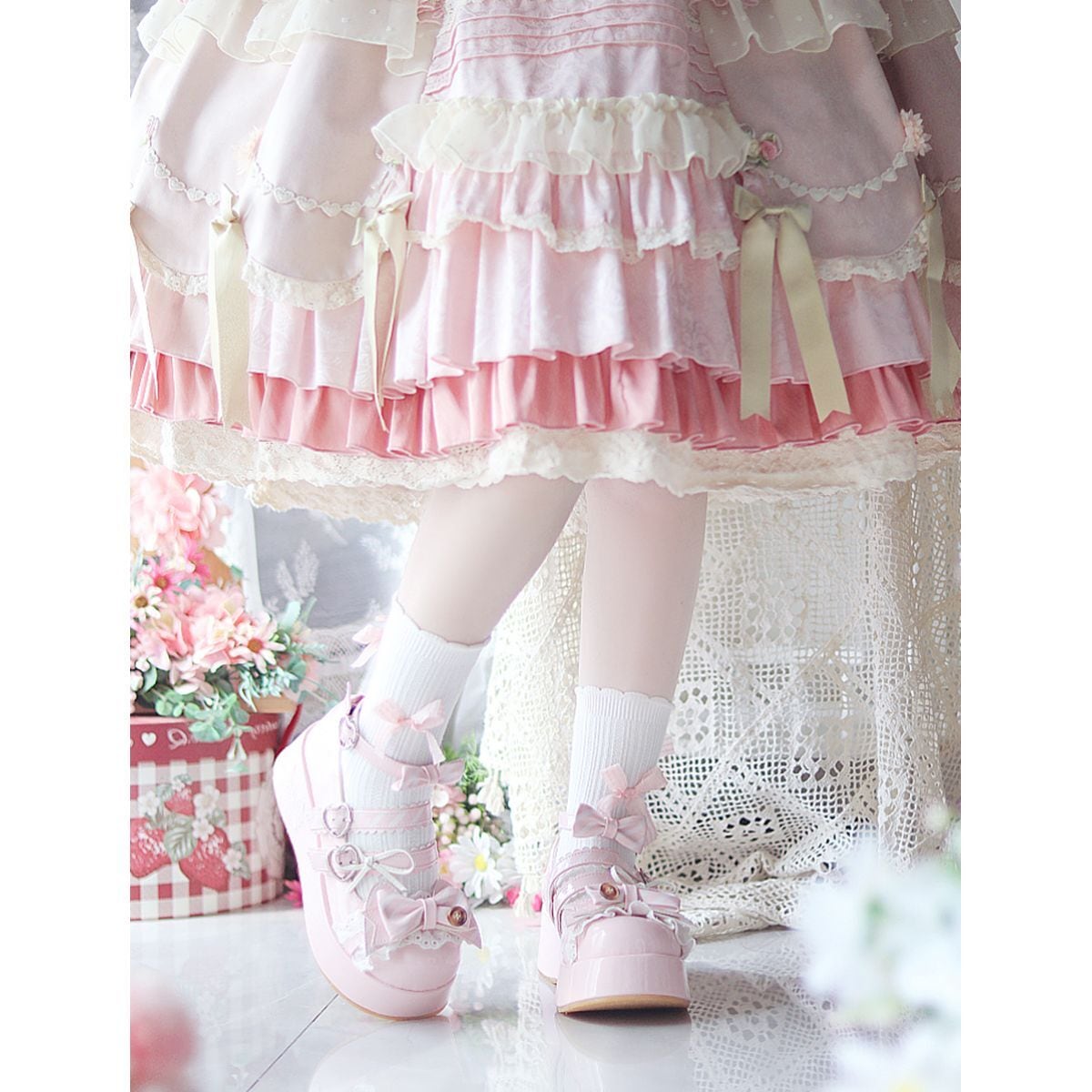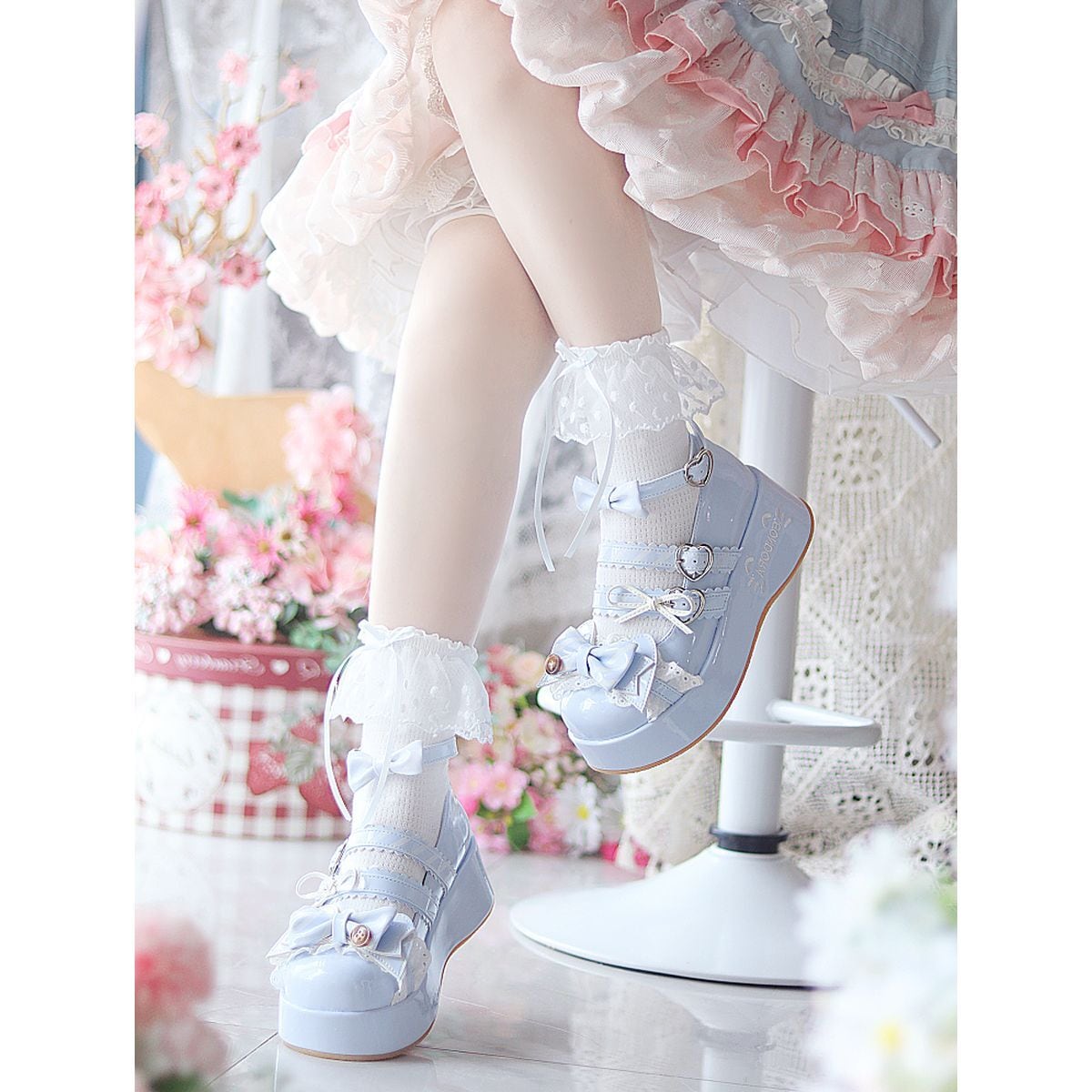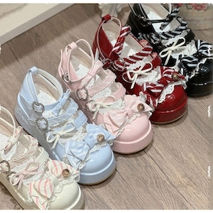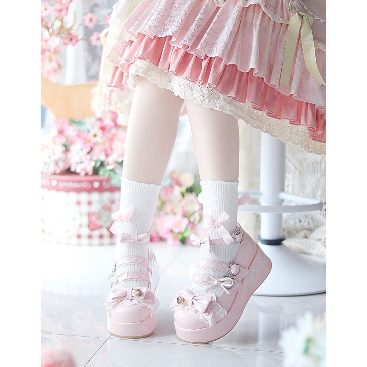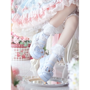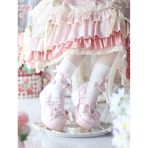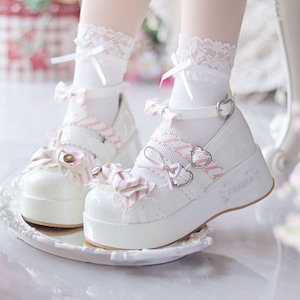 キャンディパレットリボンとハートバックル厚底シューズ