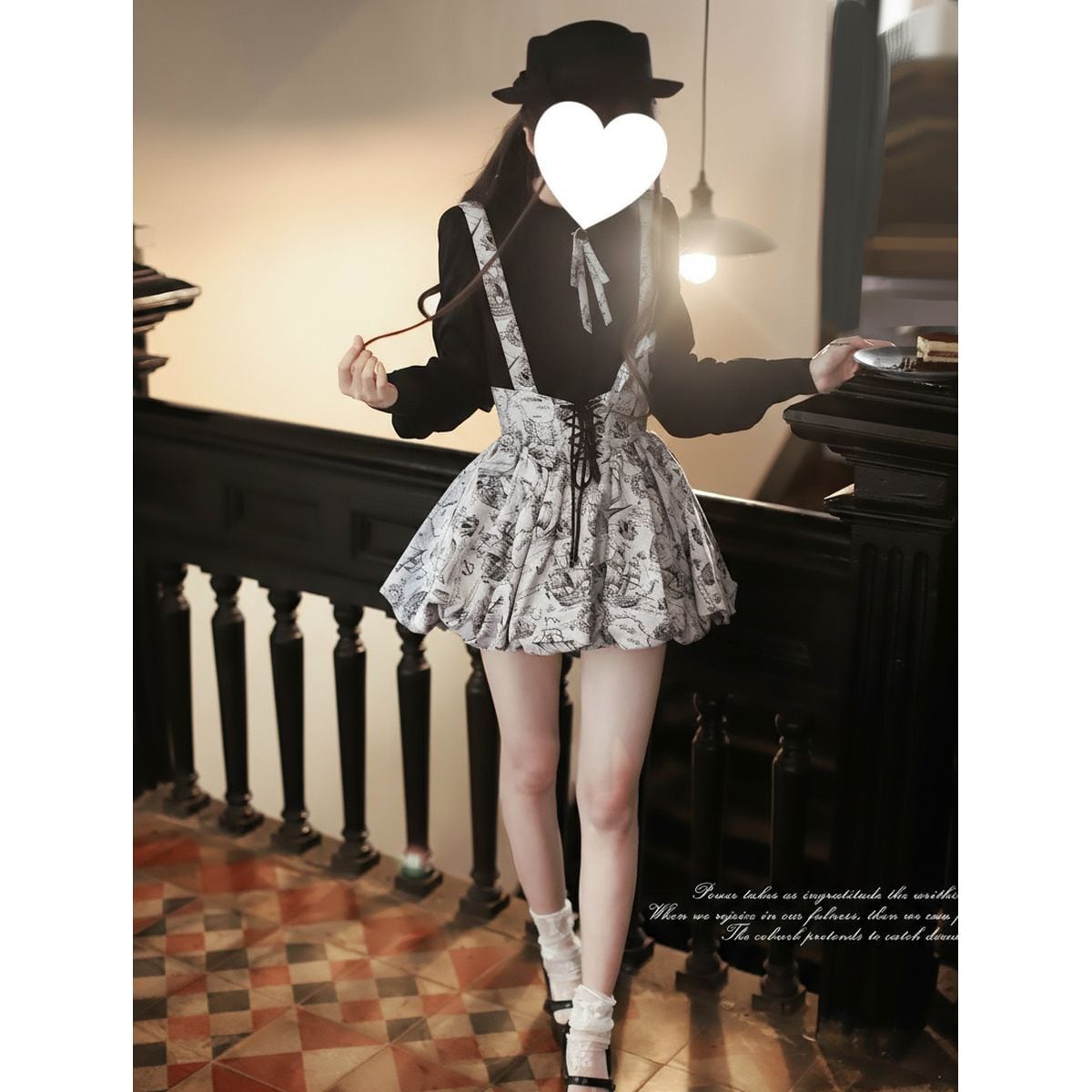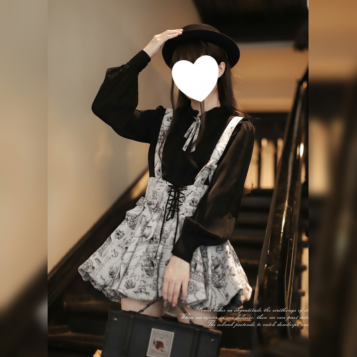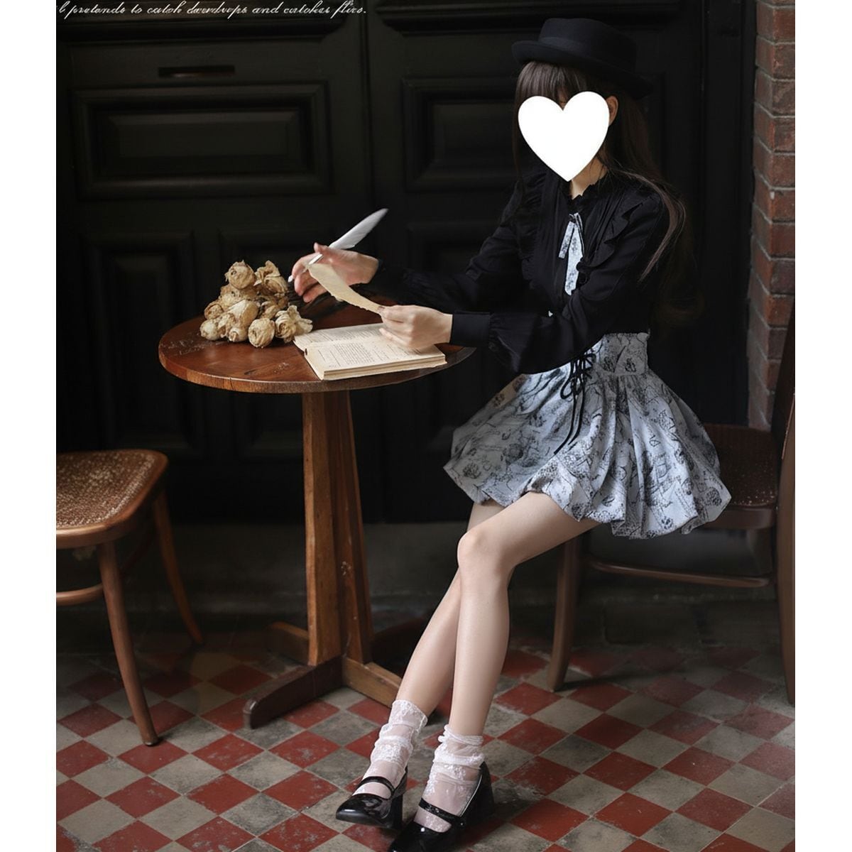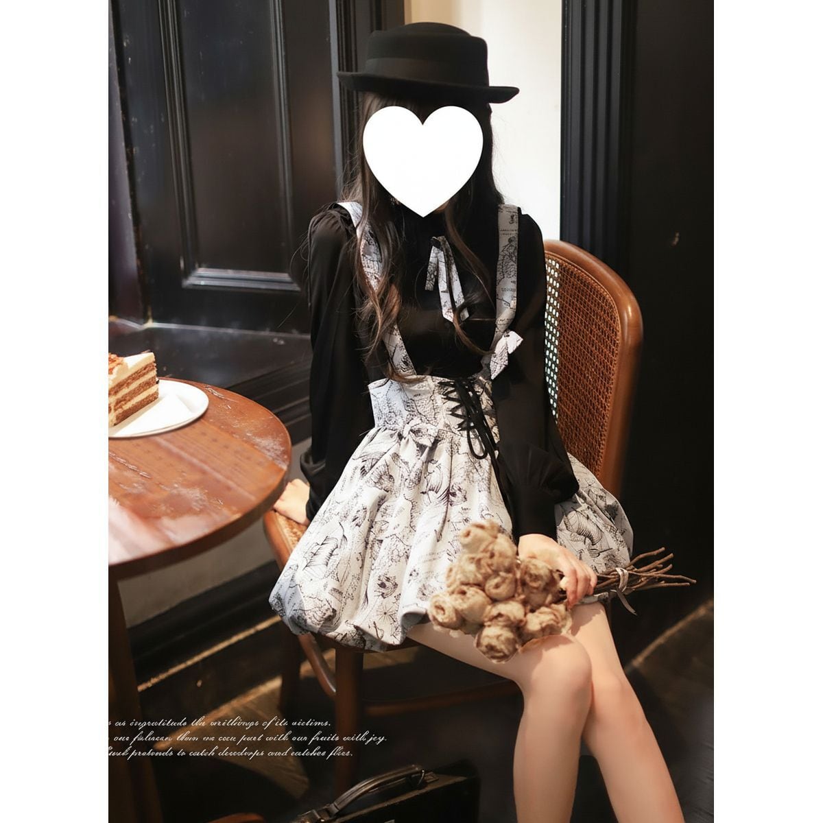 クラシカルリボンブラウス×アンティーク柄スカートセット:トップス
