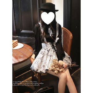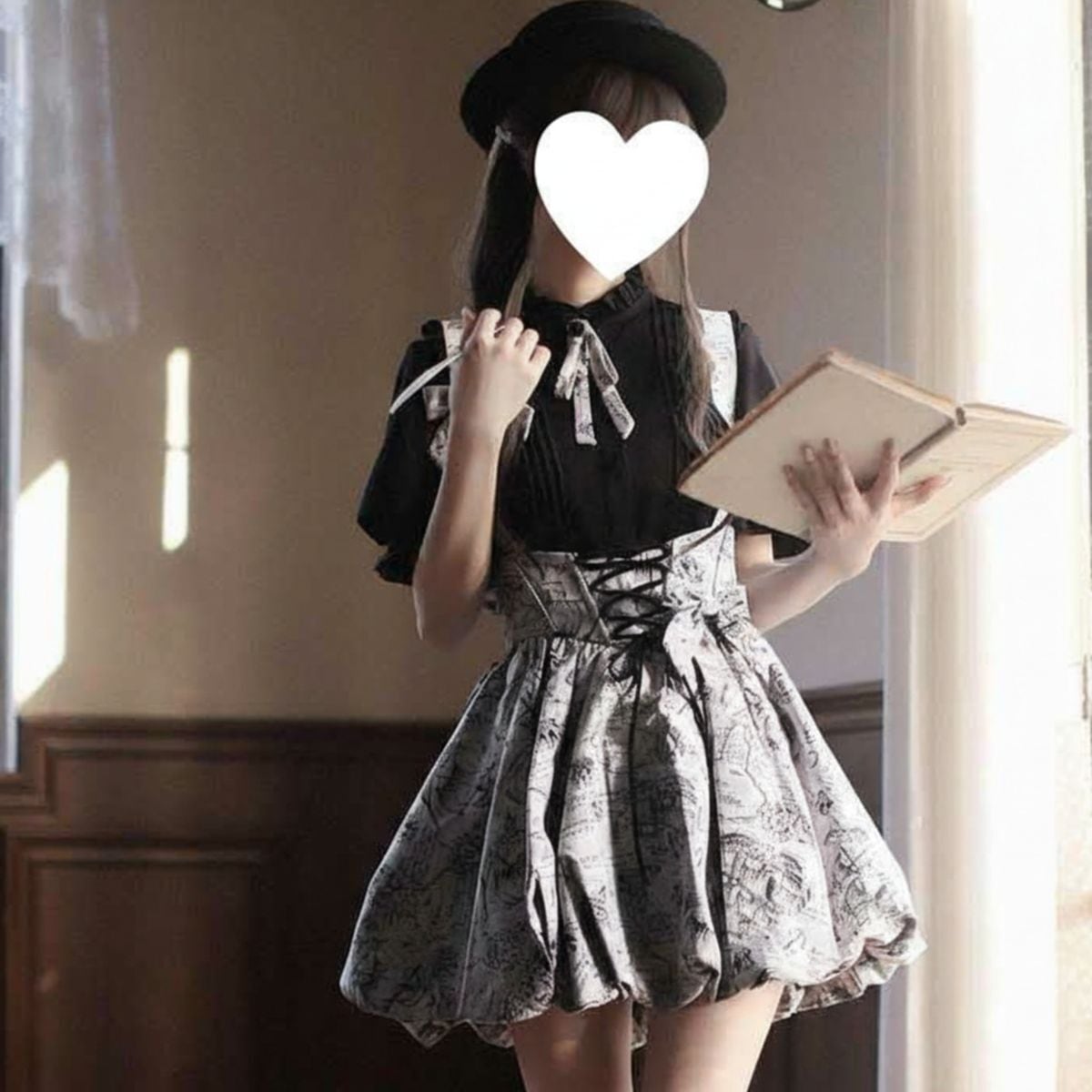 クラシカルリボンブラウス×アンティーク柄スカートセット:ショートパンツ