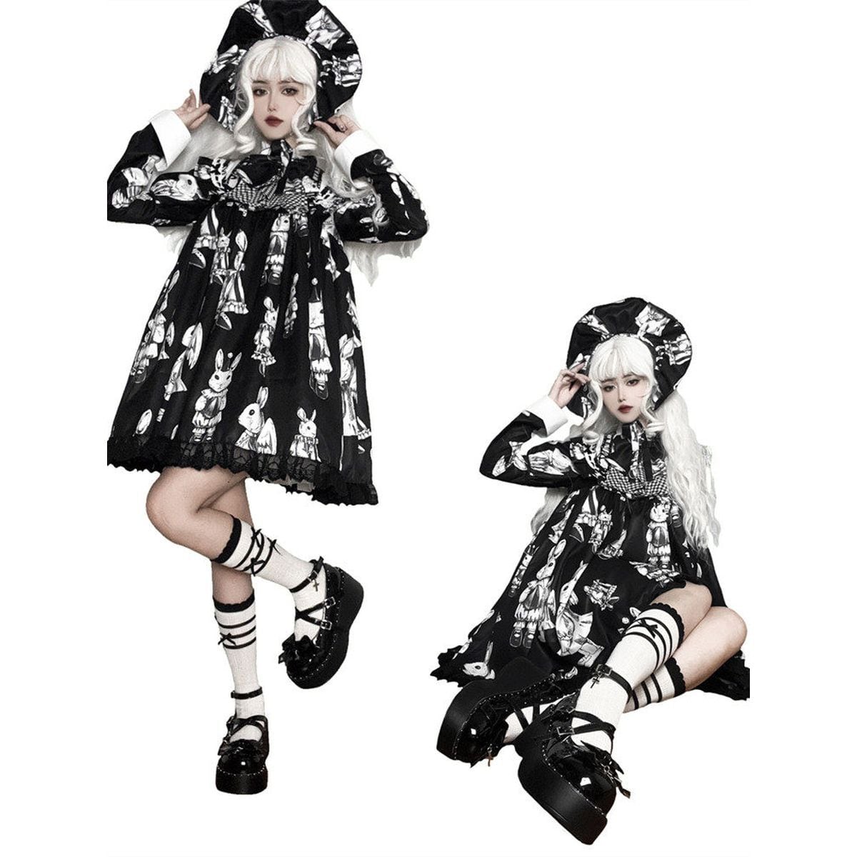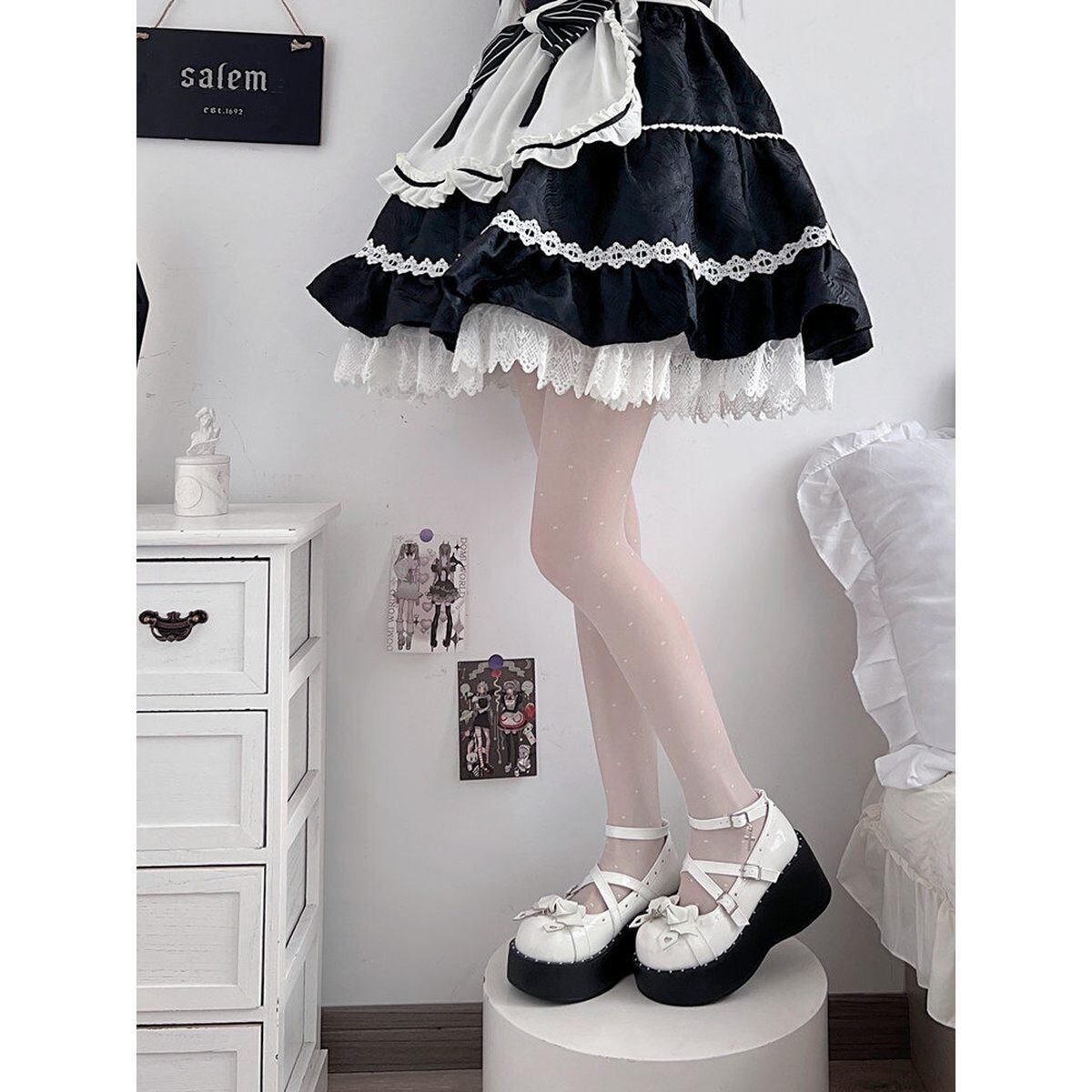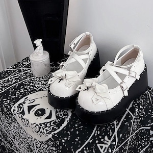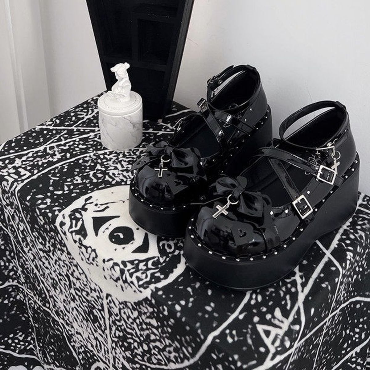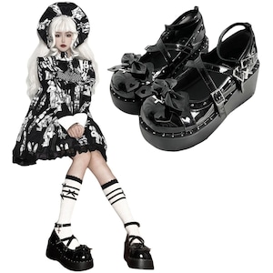 地雷系ゴシックエナメル厚底パンプス