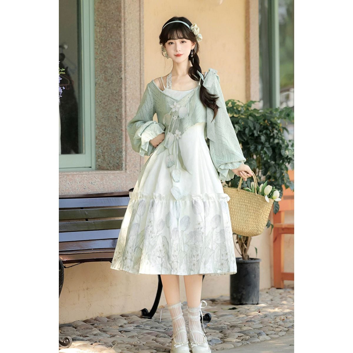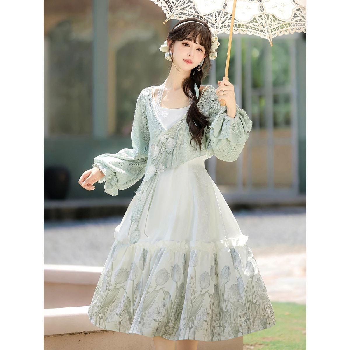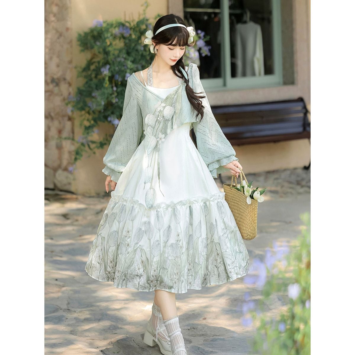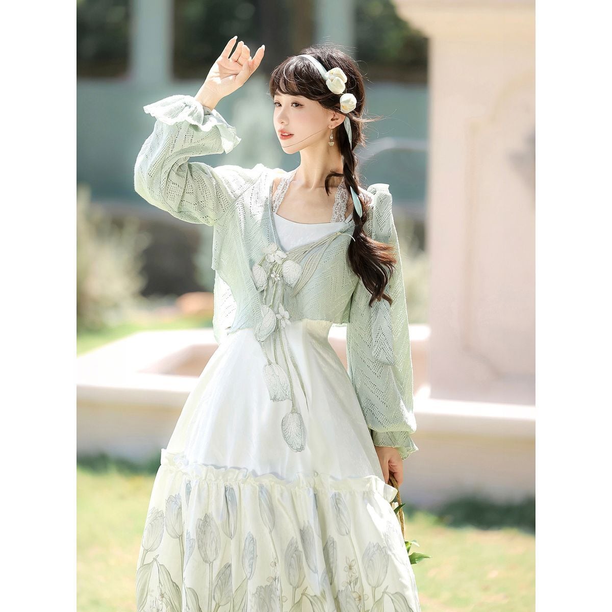 春霞チューリップ 〜チャイナ風レイヤードフラワーワンピース〜