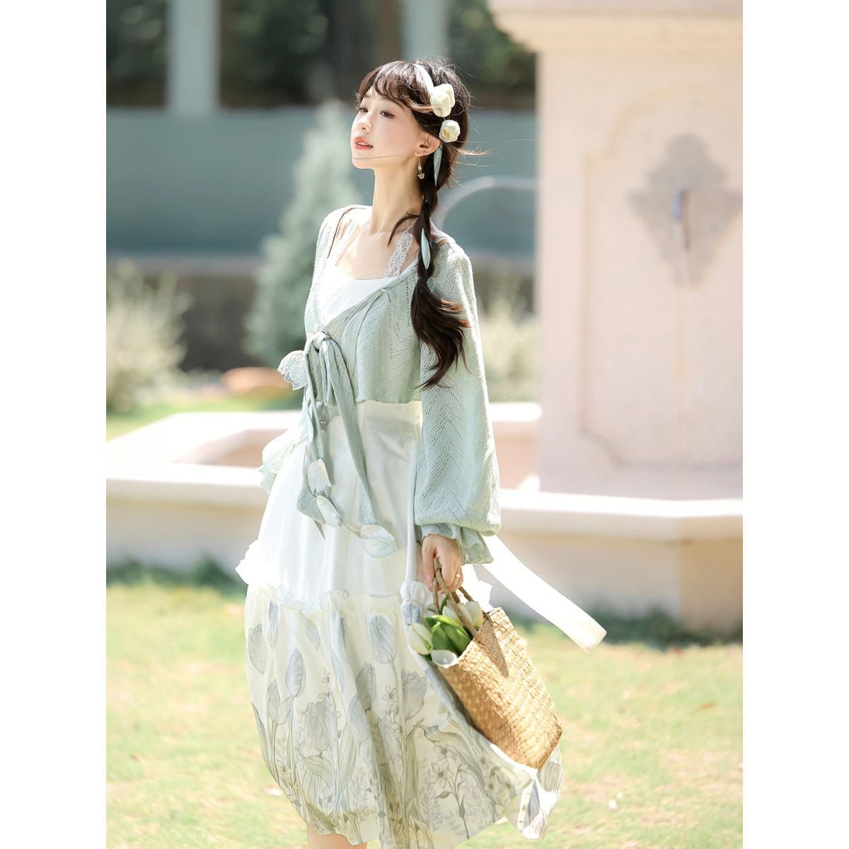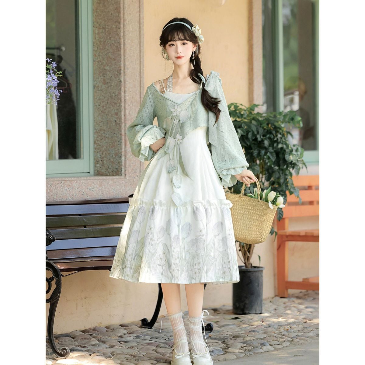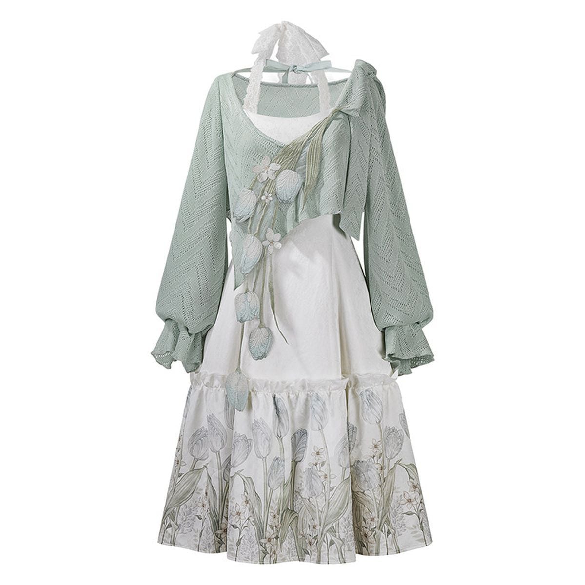 春霞チューリップ 〜チャイナ風レイヤードフラワーワンピース〜