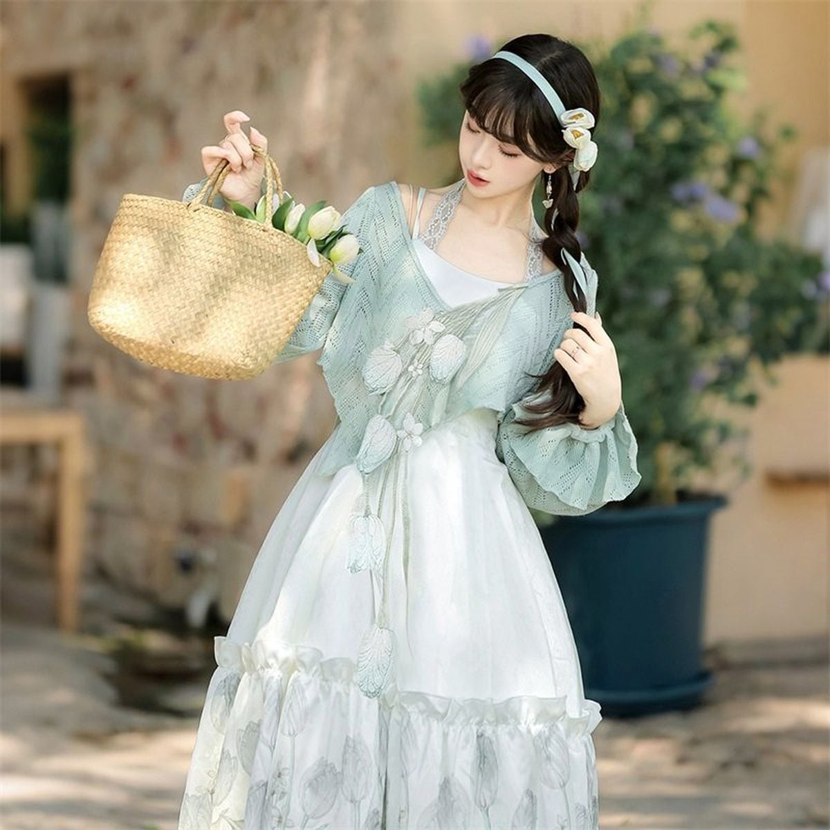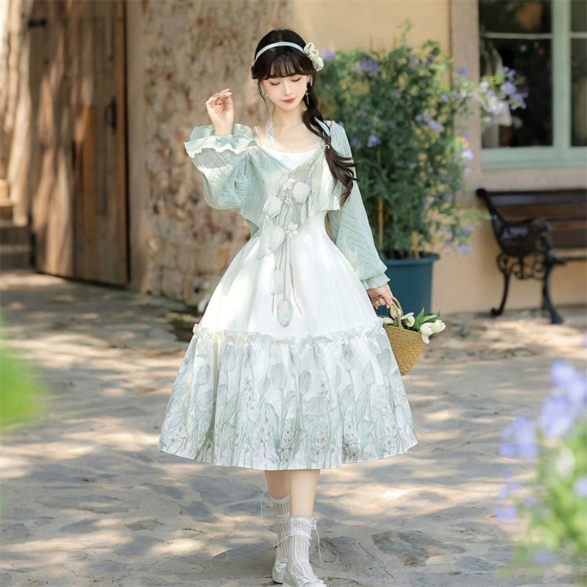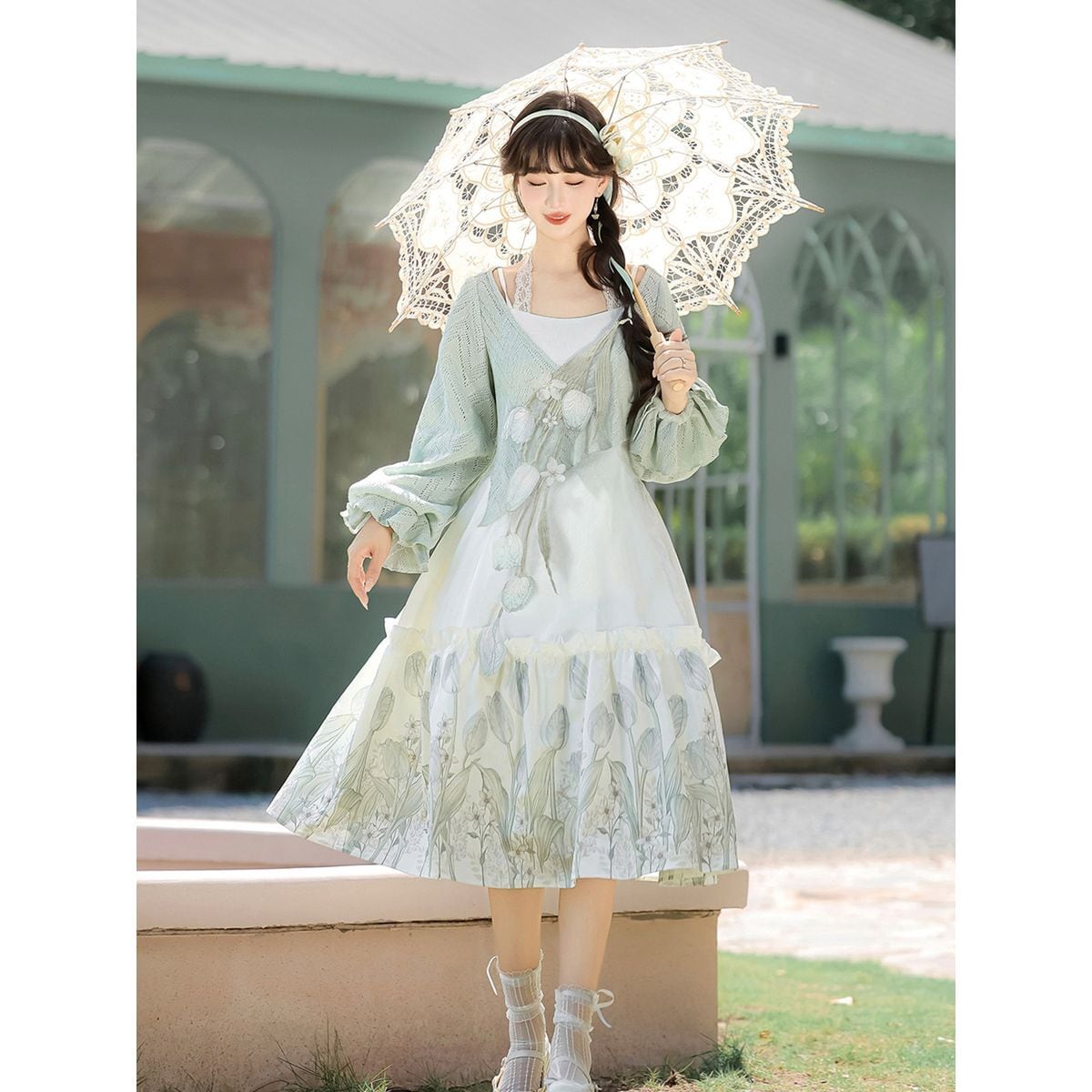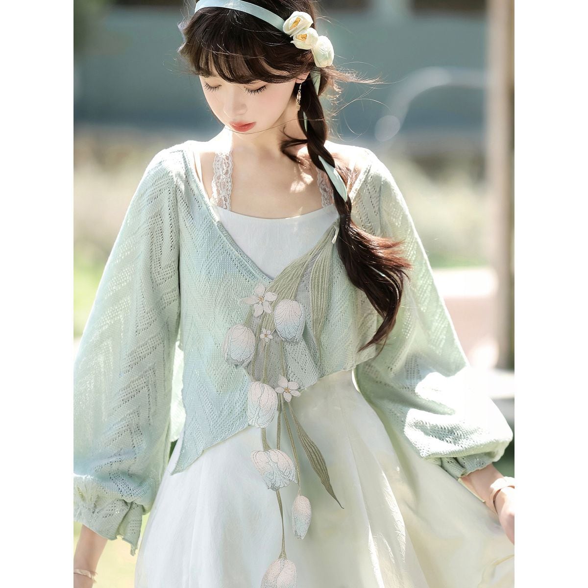 春霞チューリップ 〜チャイナ風レイヤードフラワーワンピース〜