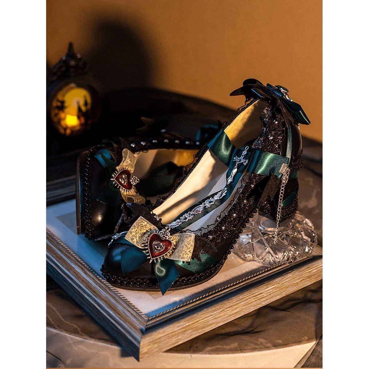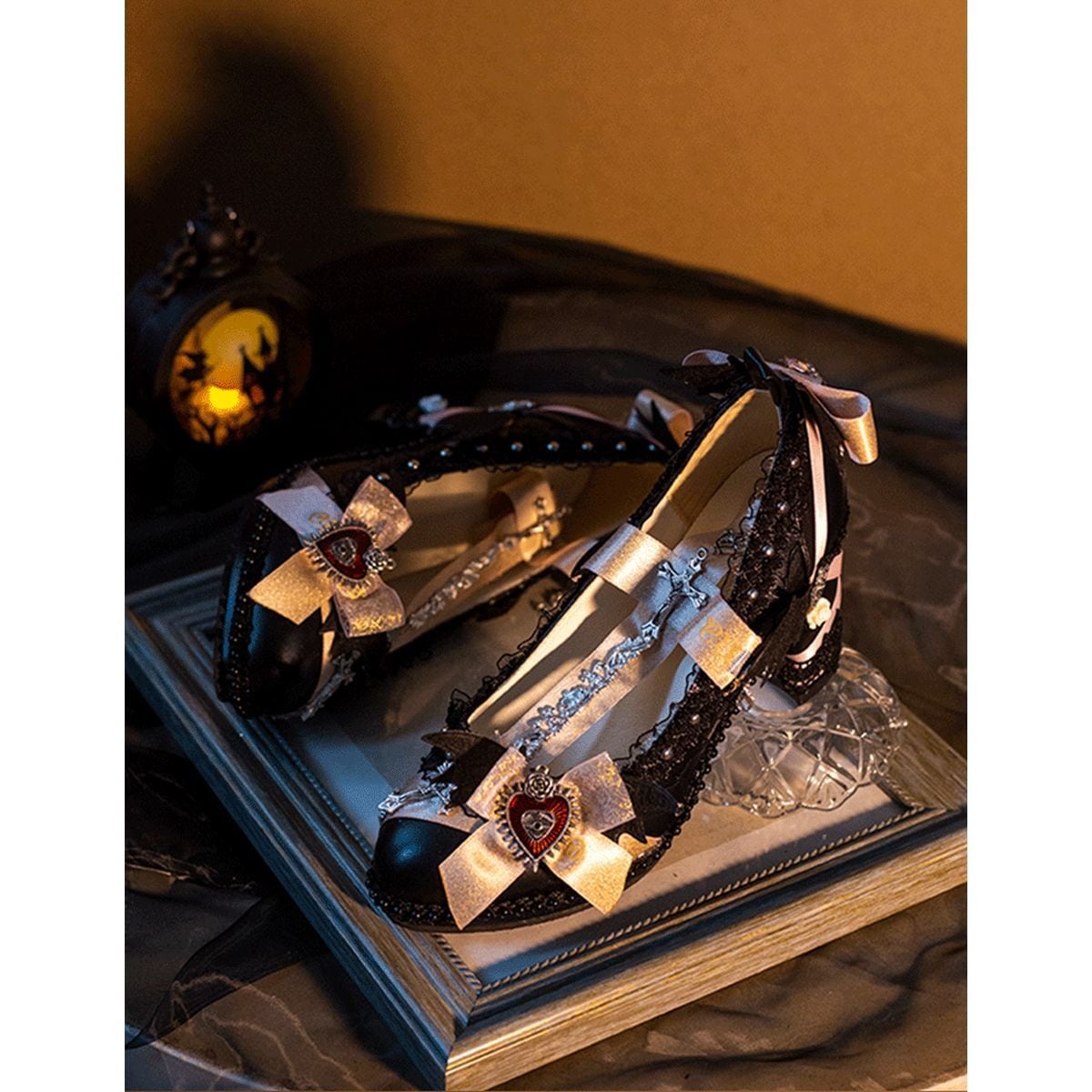断罪のデコラティブ・ヒール・十字架チェーン付きパンプス