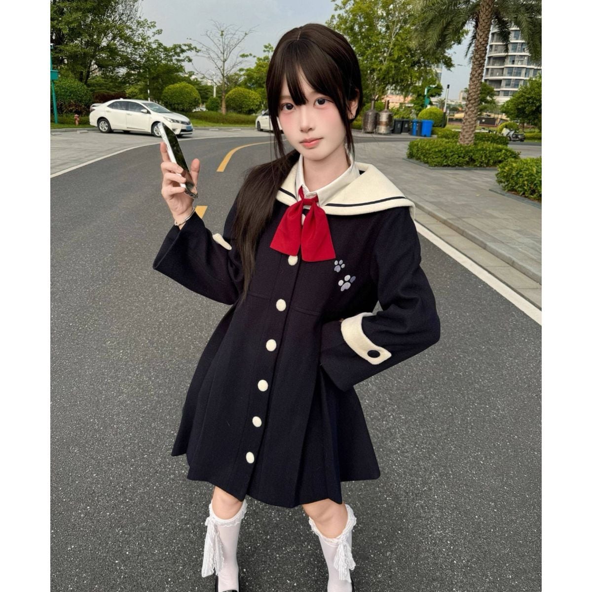 猫耳セーラー襟フレアコート