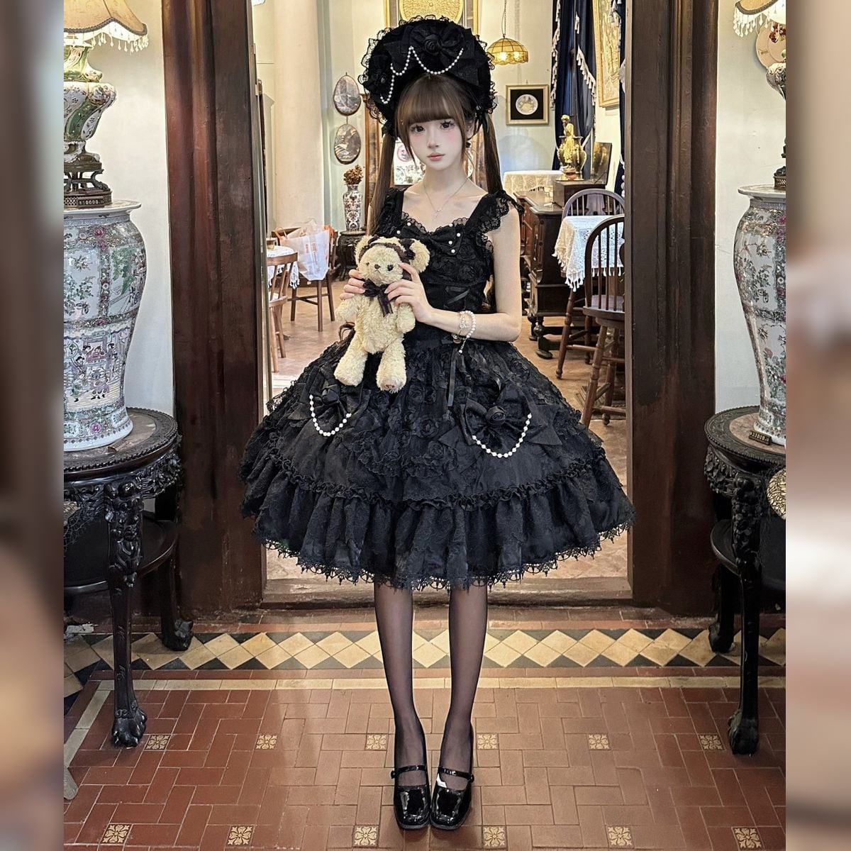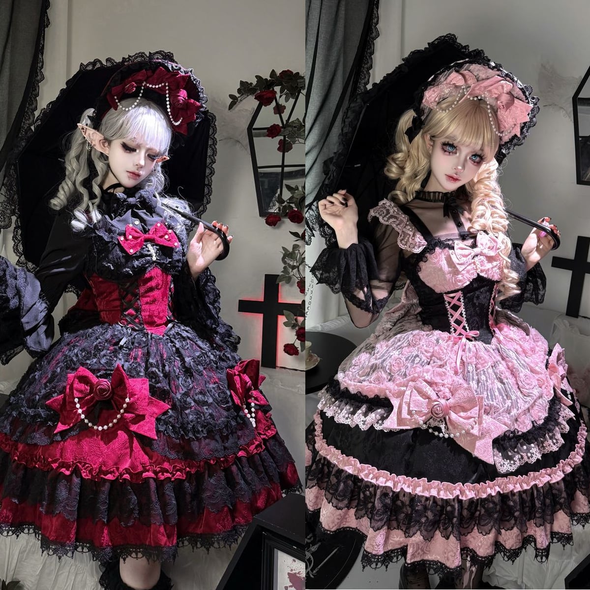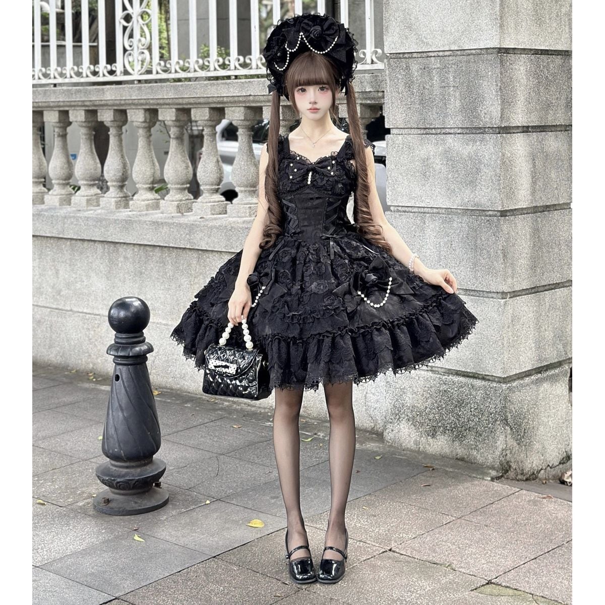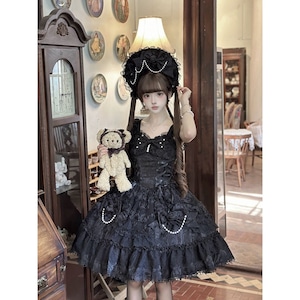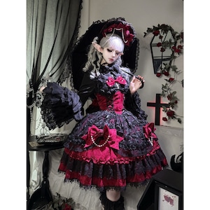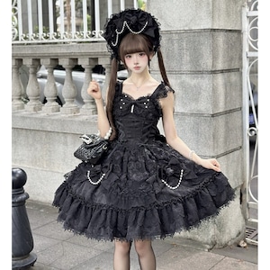 真夜中の戴冠式・薔薇リボンのゴシック&レースティアードドレス:ヘッドドレス