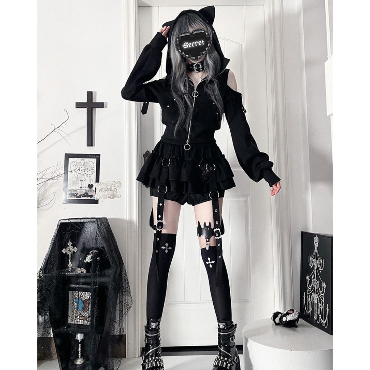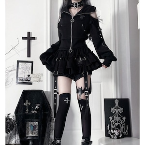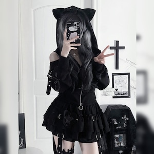 「堕天のストリート・アーカイブ」猫耳パンク・ジップパーカー:オープンショルダージャケット